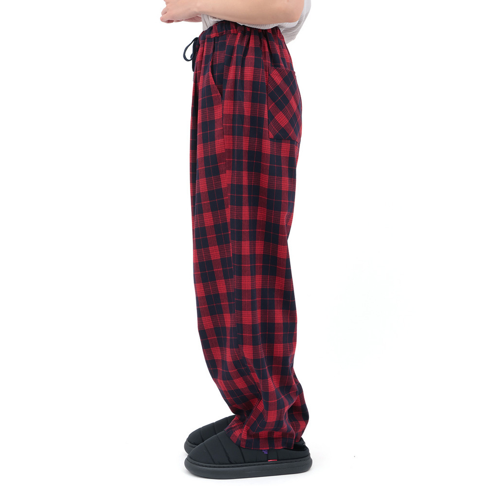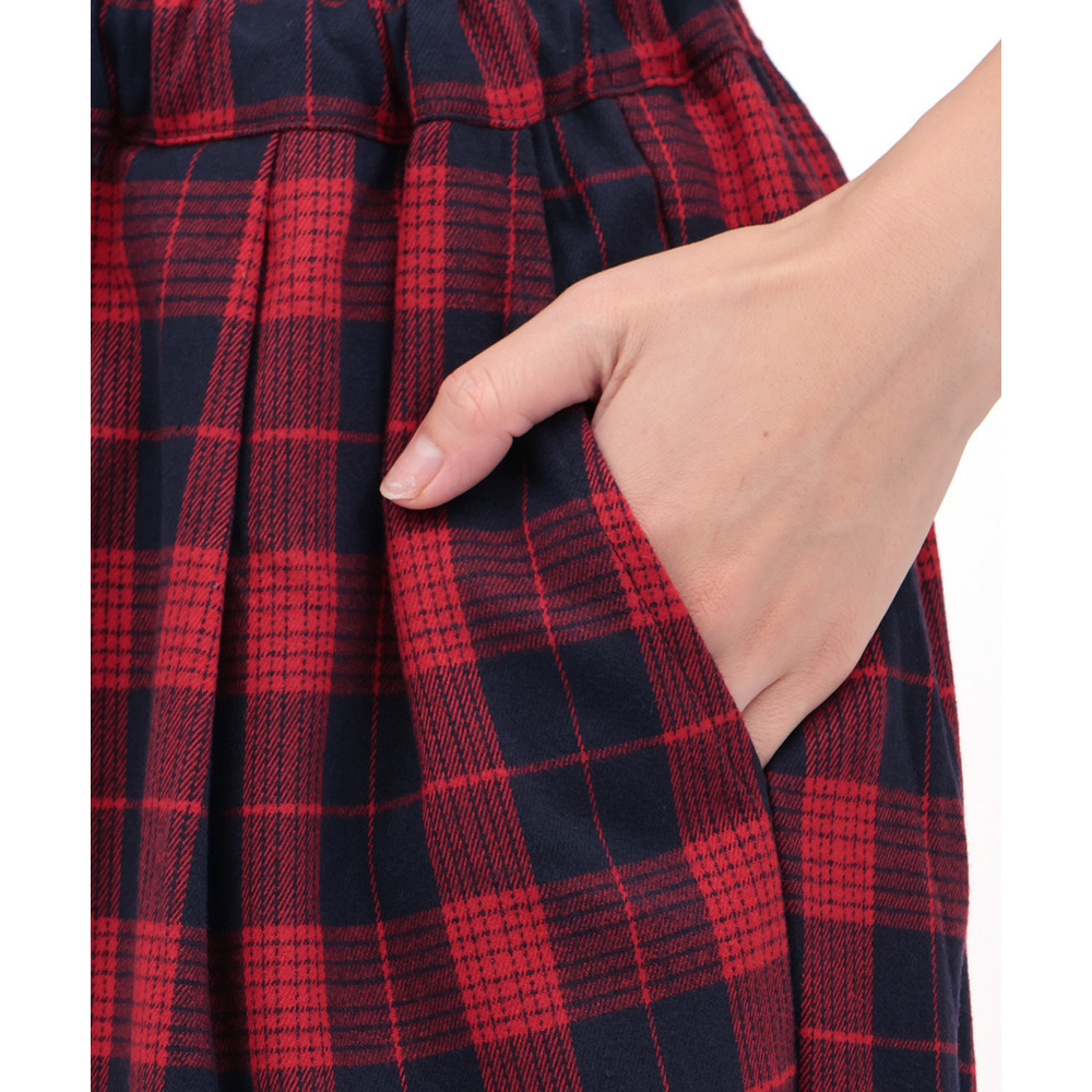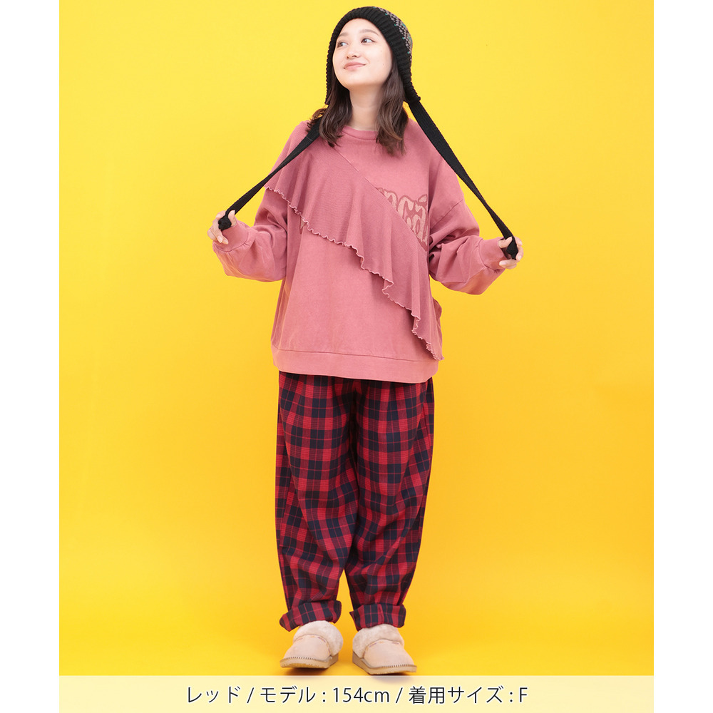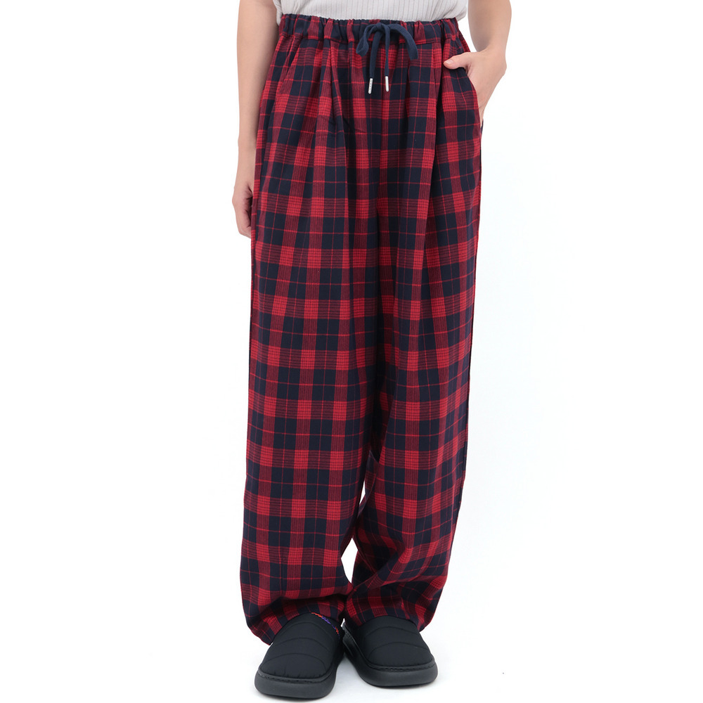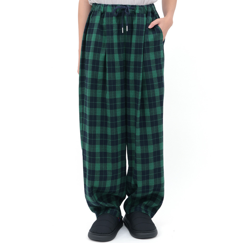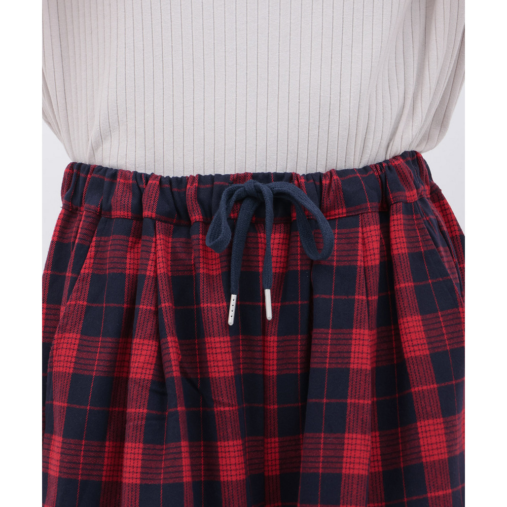 カラフルなチェック柄が目を惹く、ゆったりとしたコクーンシルエットのパンツ。