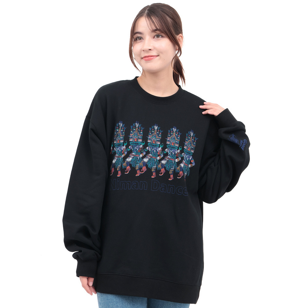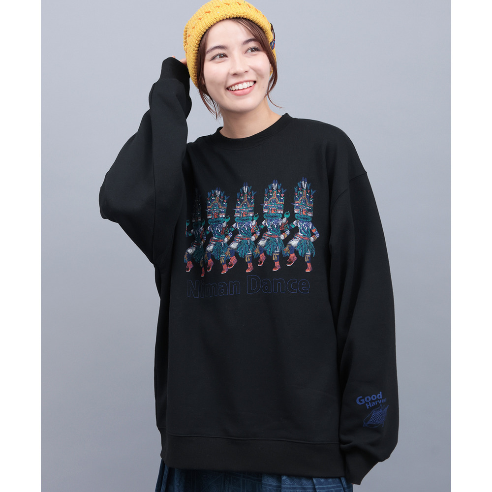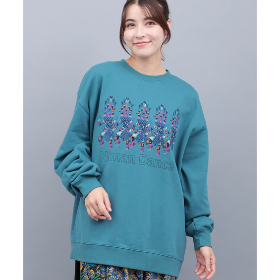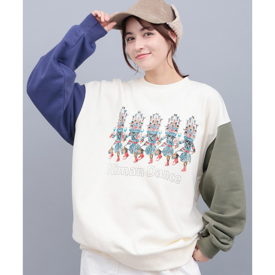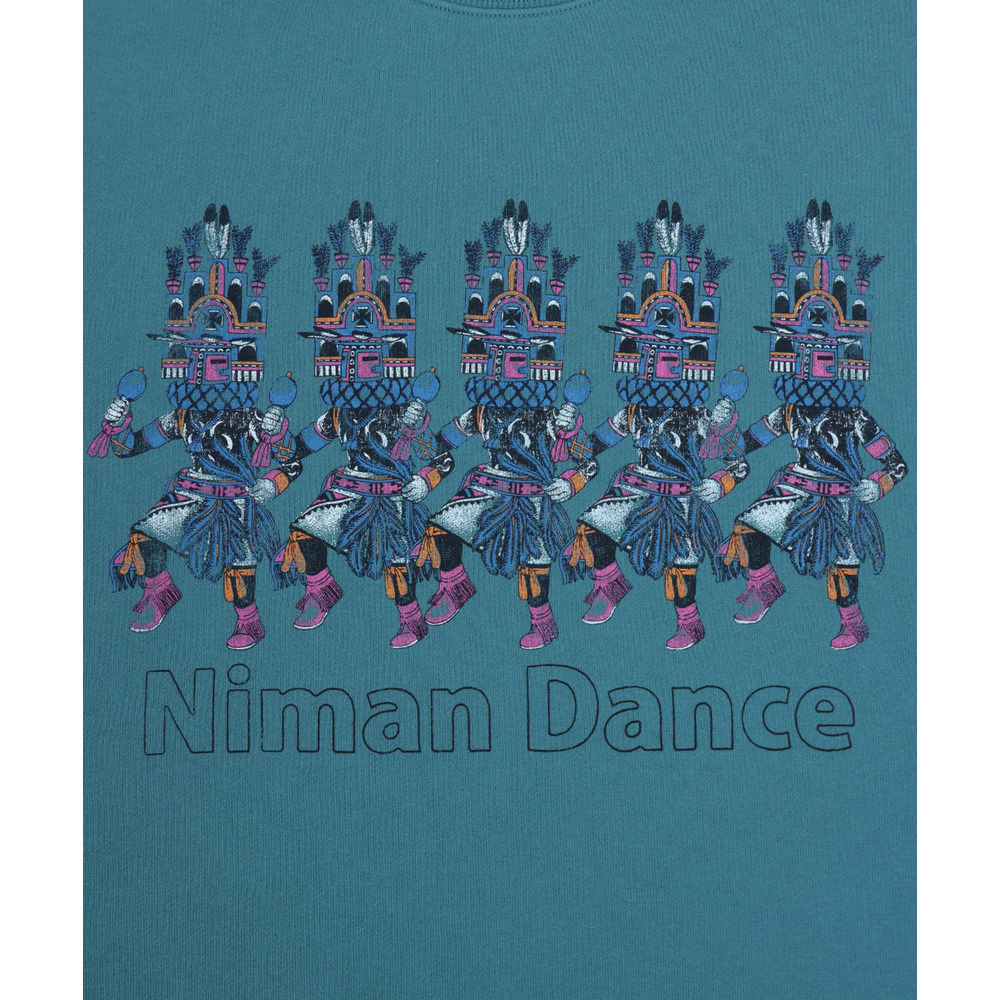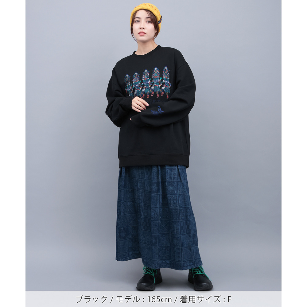 前身頃にはホピ族が信仰するトウモロコシの精霊“ヘミス”のニーマンダンスの儀式を大胆にプリント。