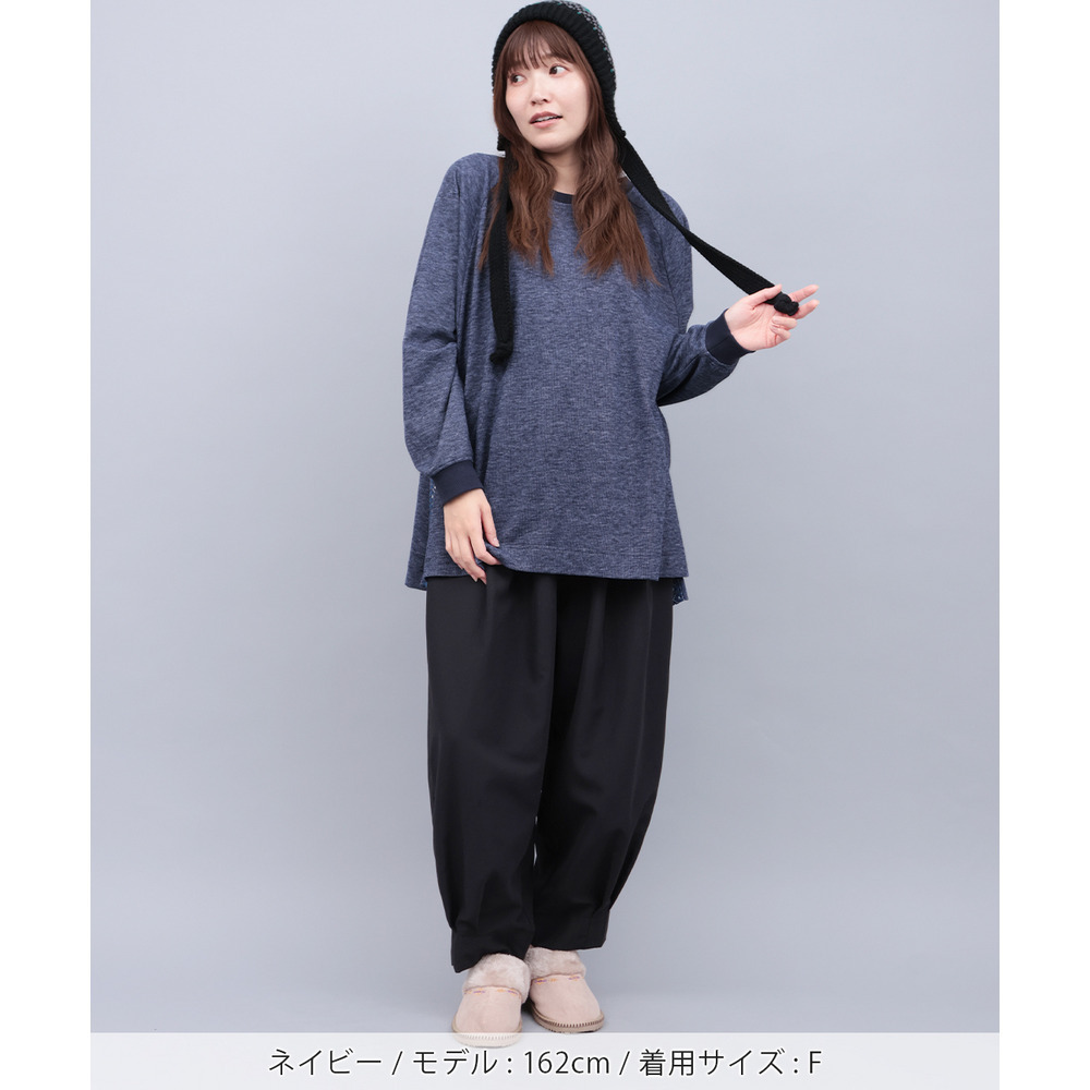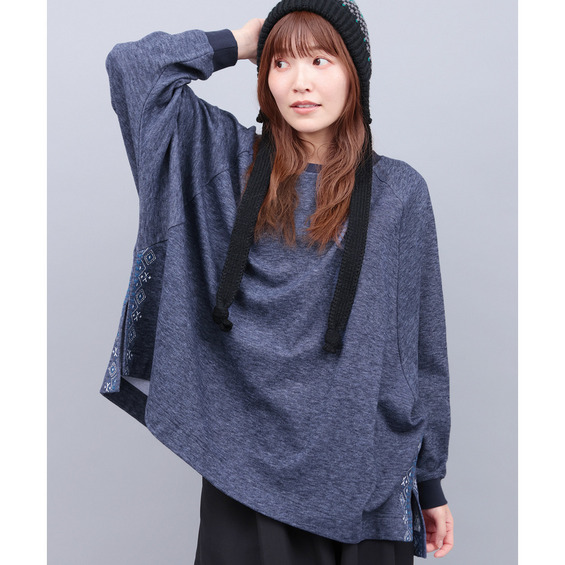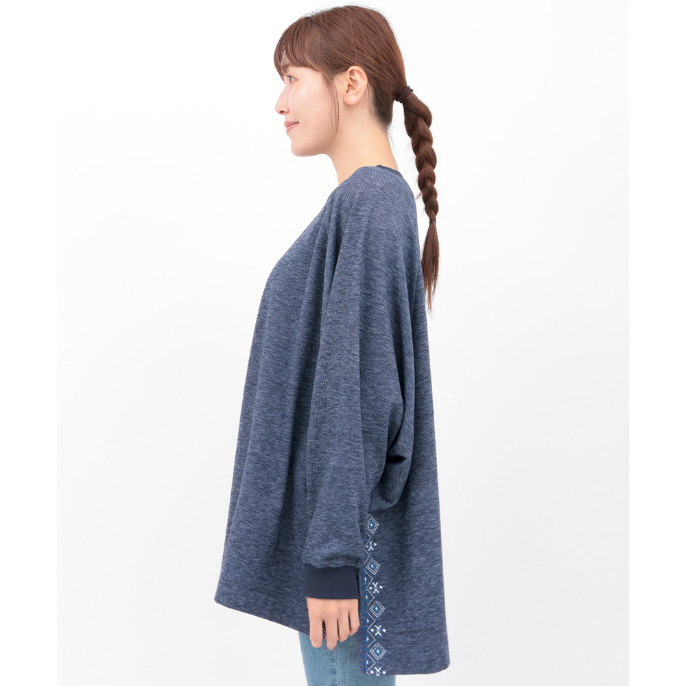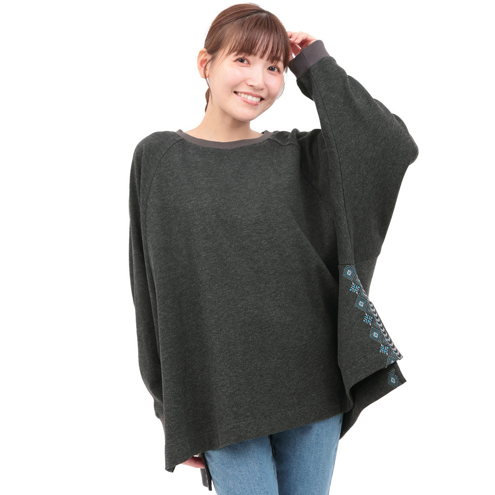 体のラインを拾わずリラックスして着られるドルマンスリーブがポイント。