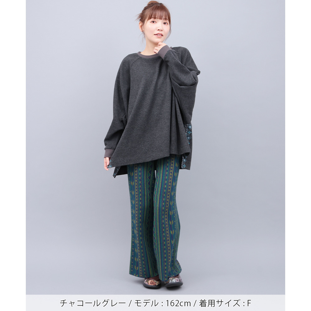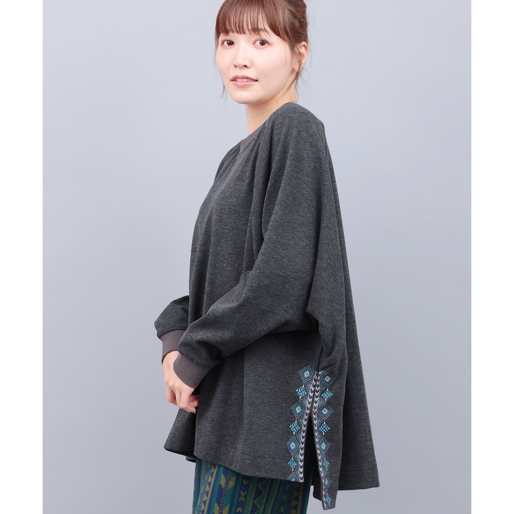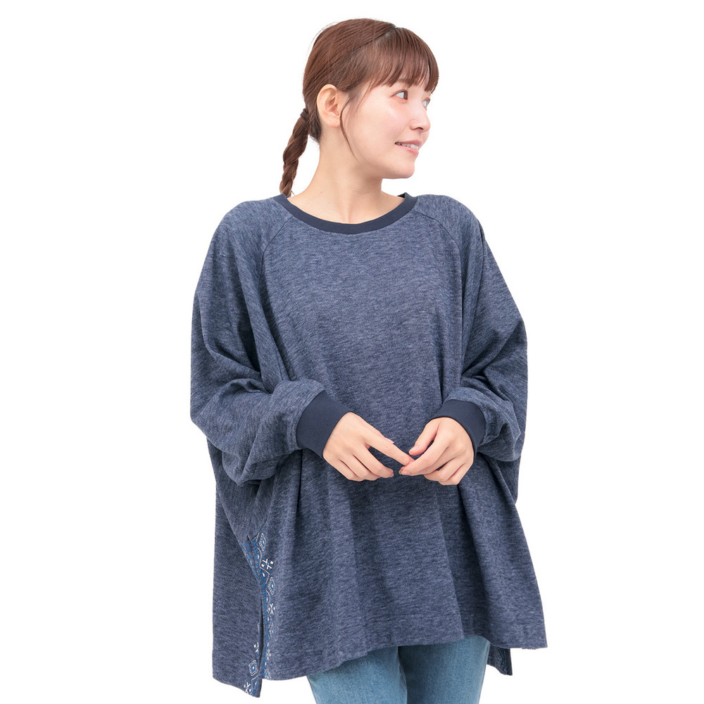 体のラインを拾わずリラックスして着られるドルマンスリーブがポイント。