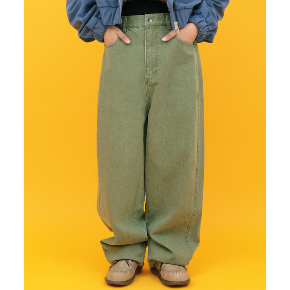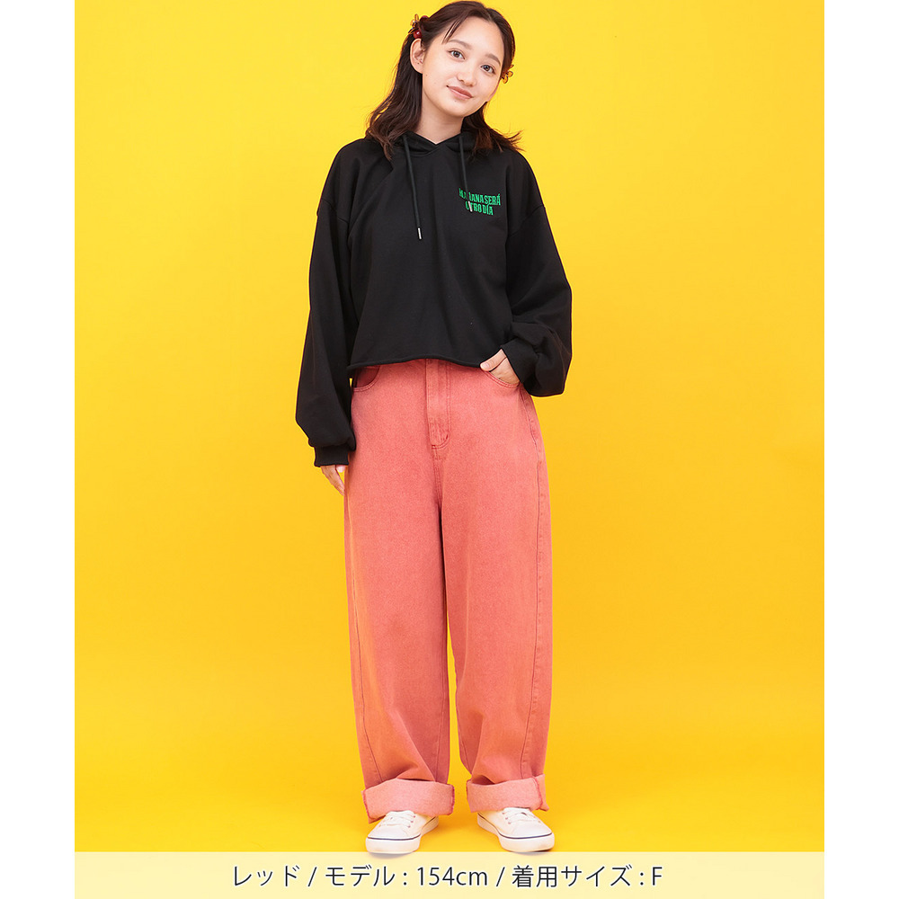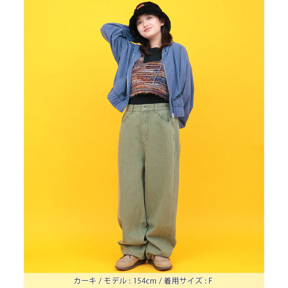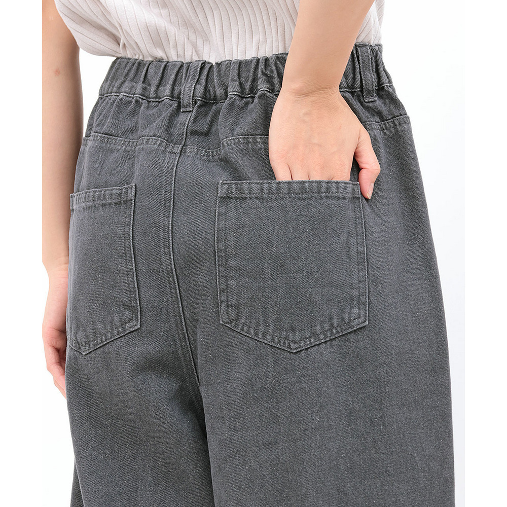 綿100%のデニム素材なので季節を問わず使いやすく、どんなトップスにもマッチ。