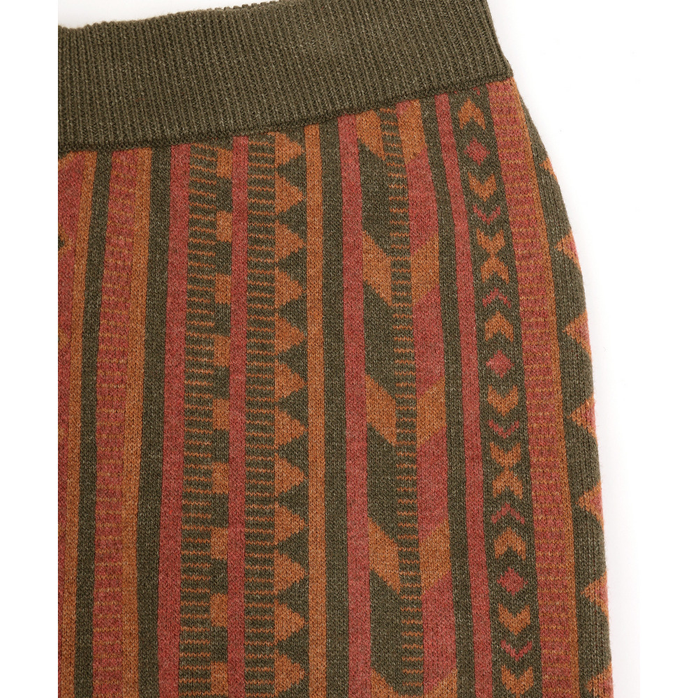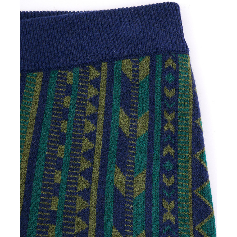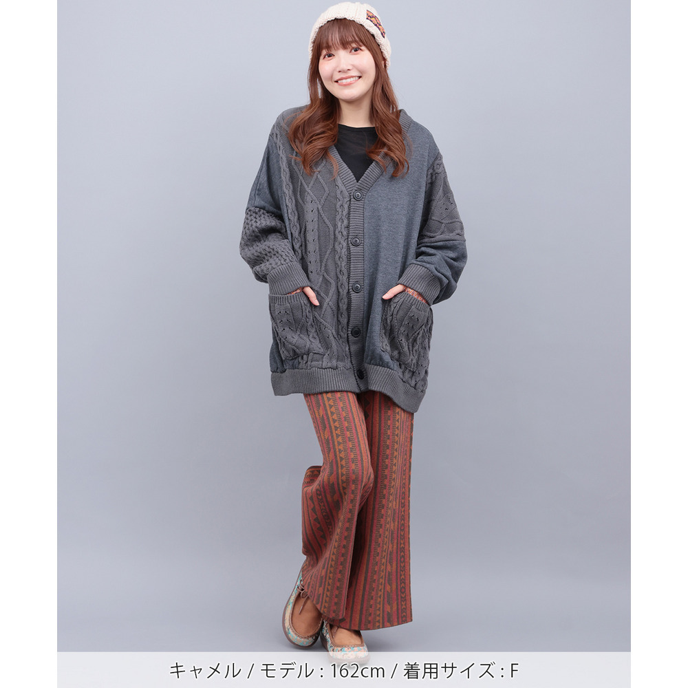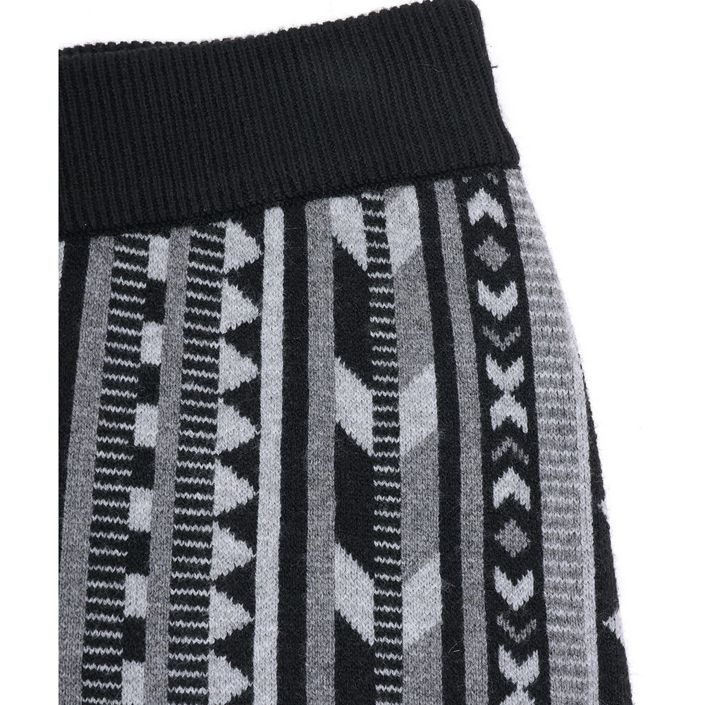 個性的な幾何学柄の総柄が目を惹くワイドパンツ。