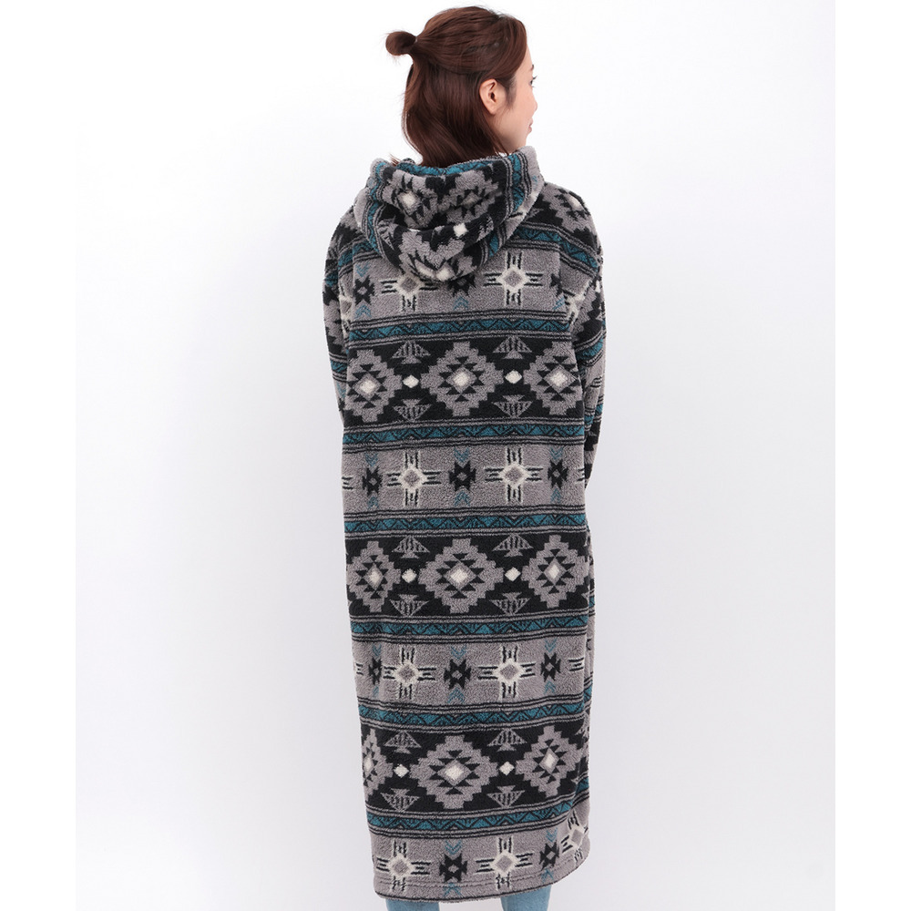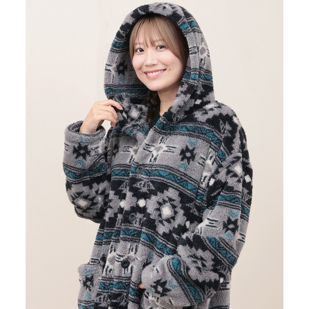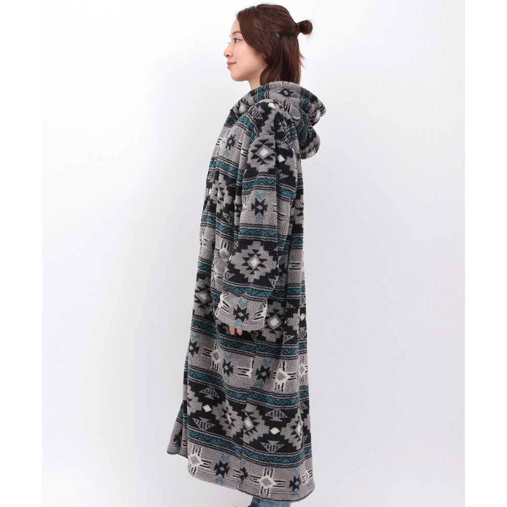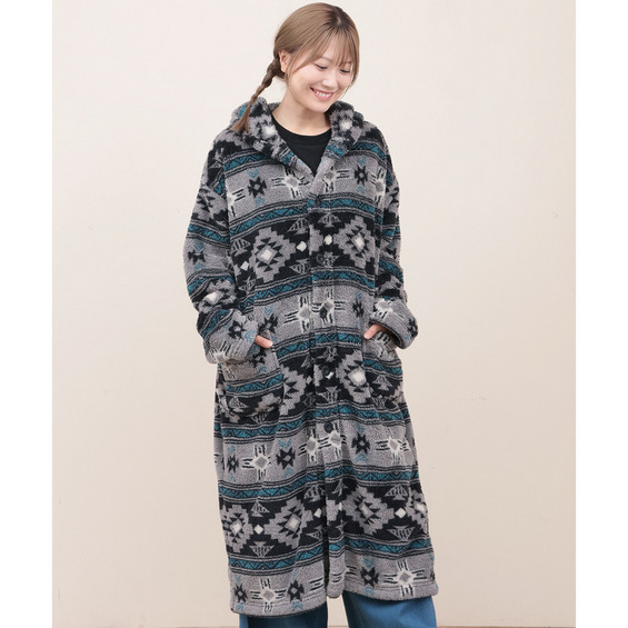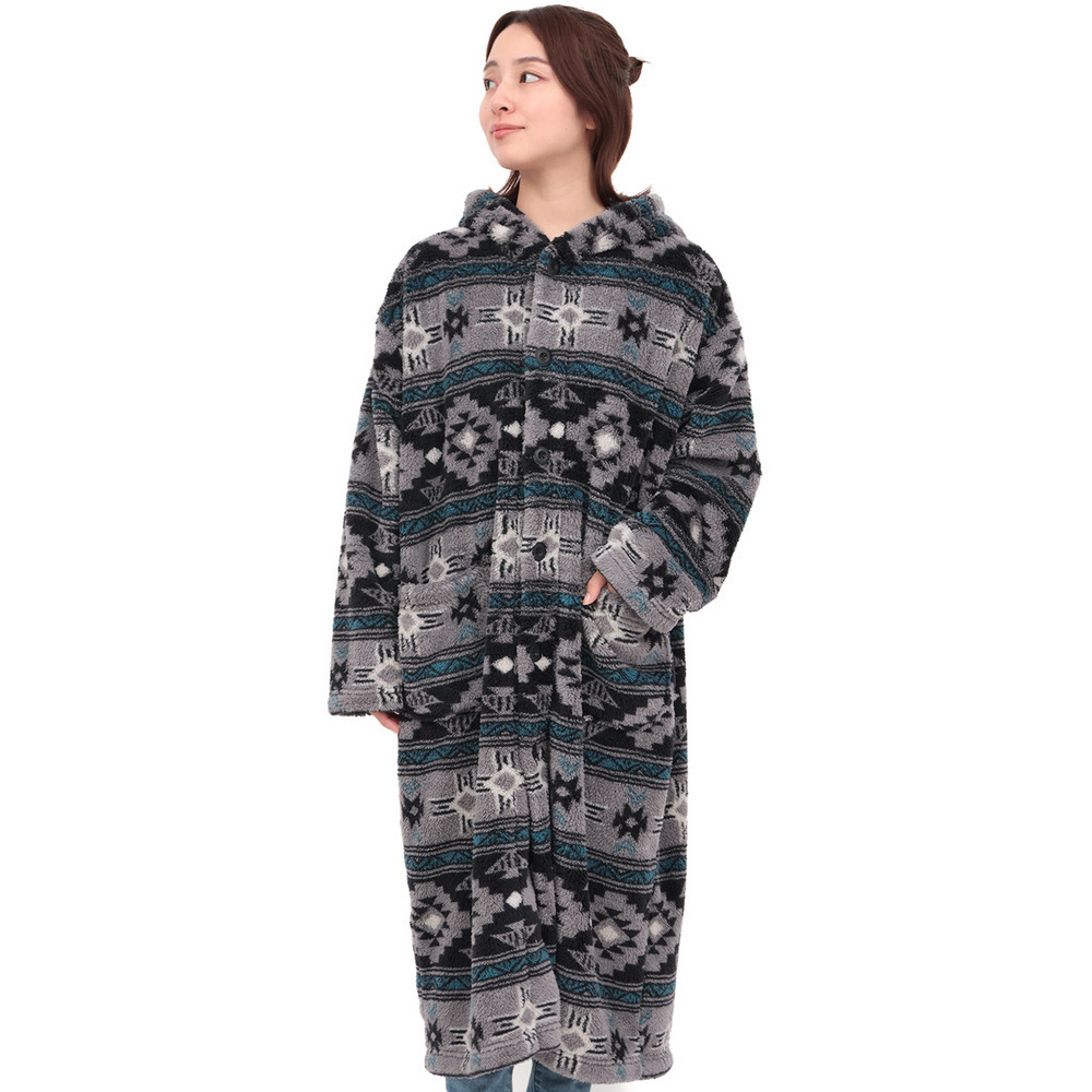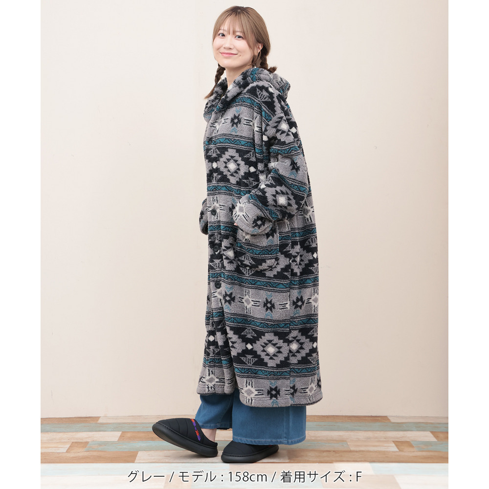 長めの丈で腰まわりまでしっかりあたたかく、フード付きだから首まわりもぬくぬく。