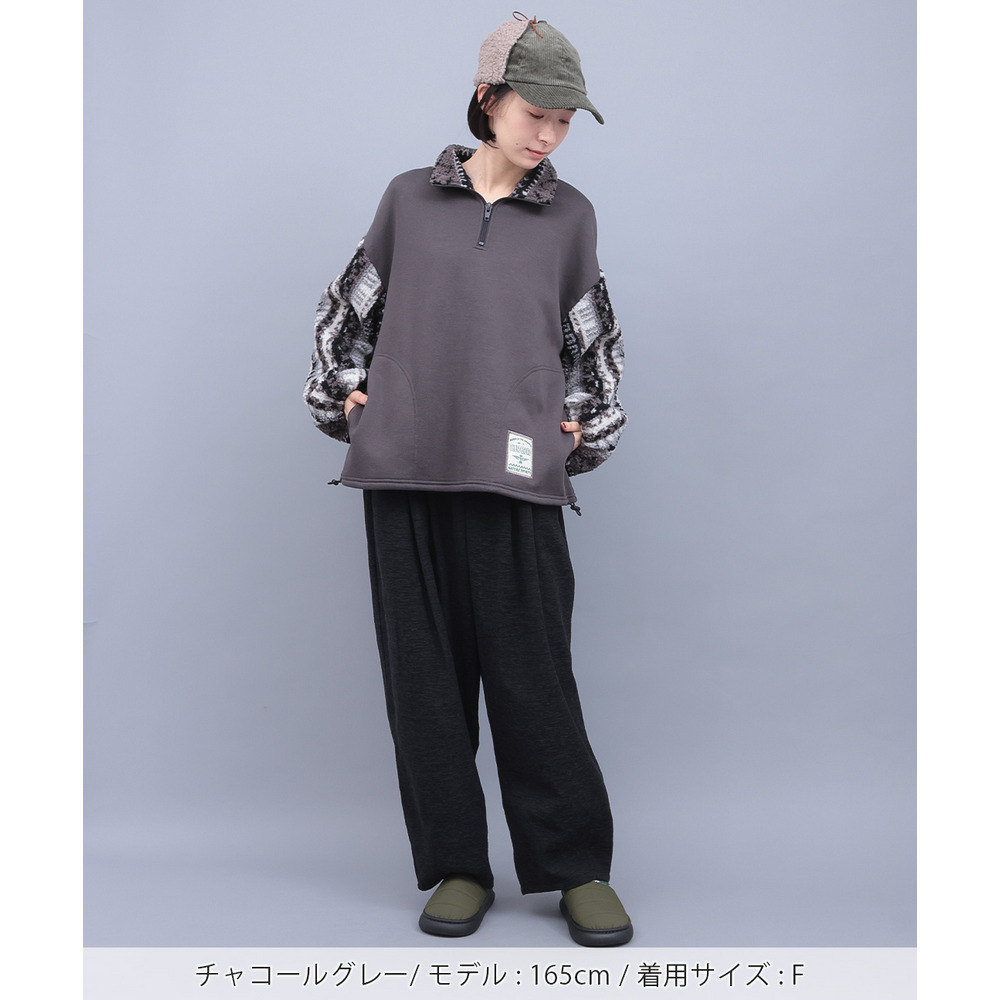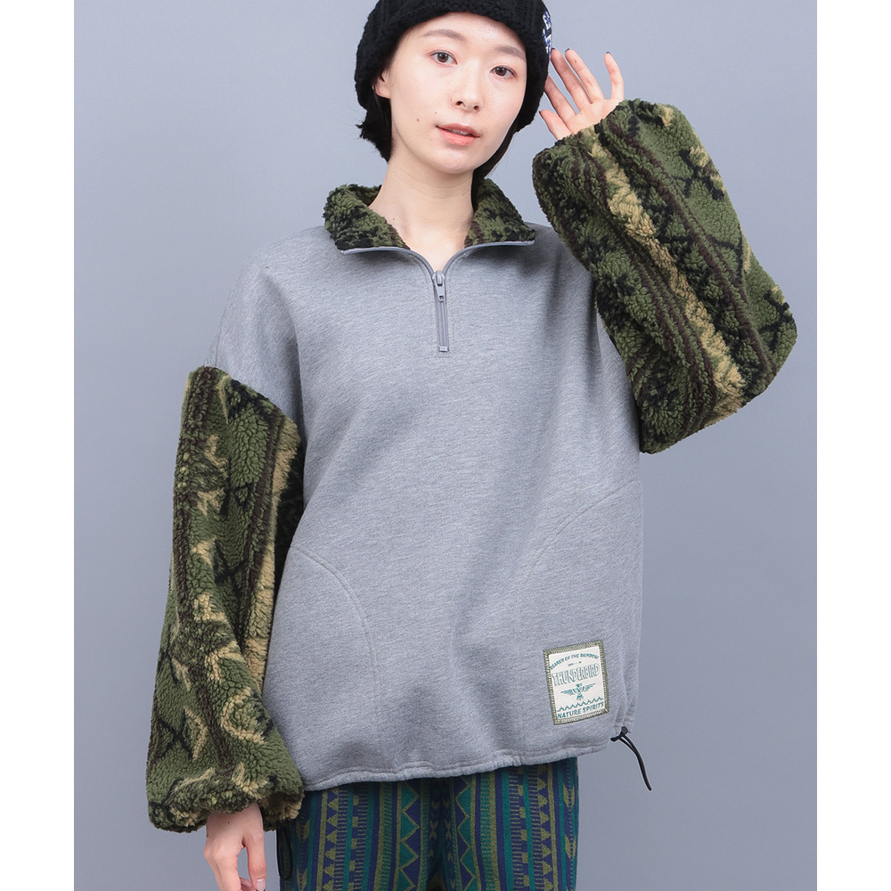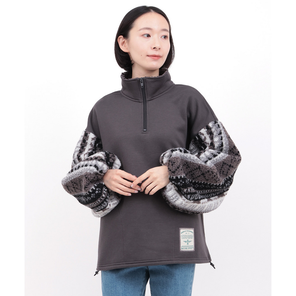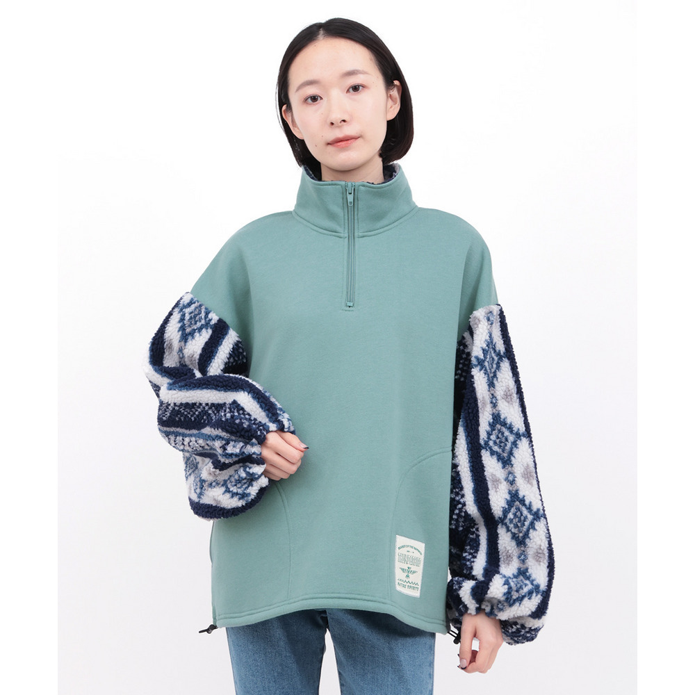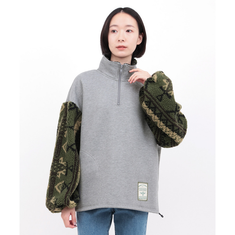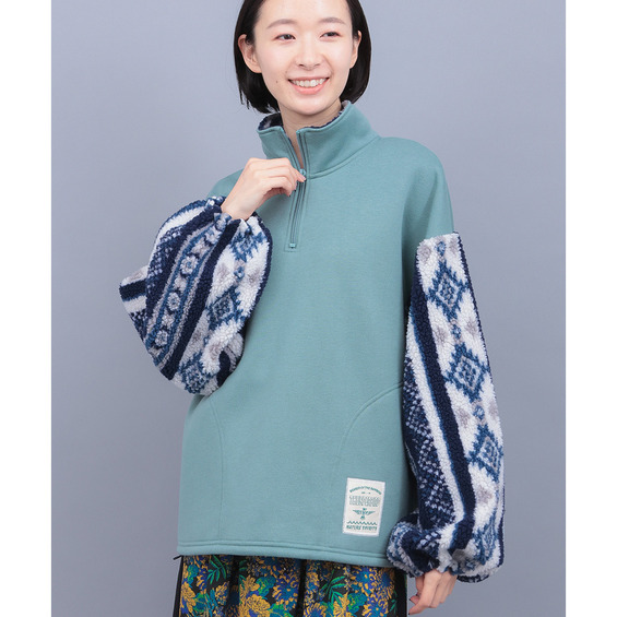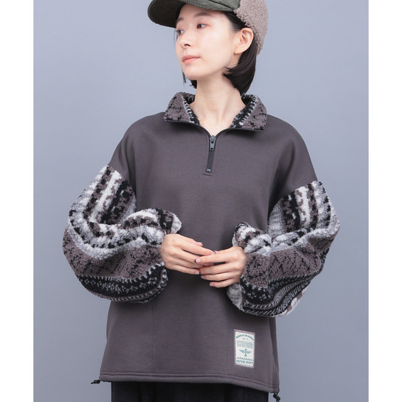 裏起毛×ボアスリーブハーフジッププルオーバー