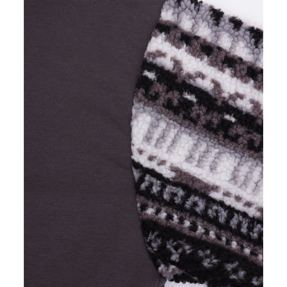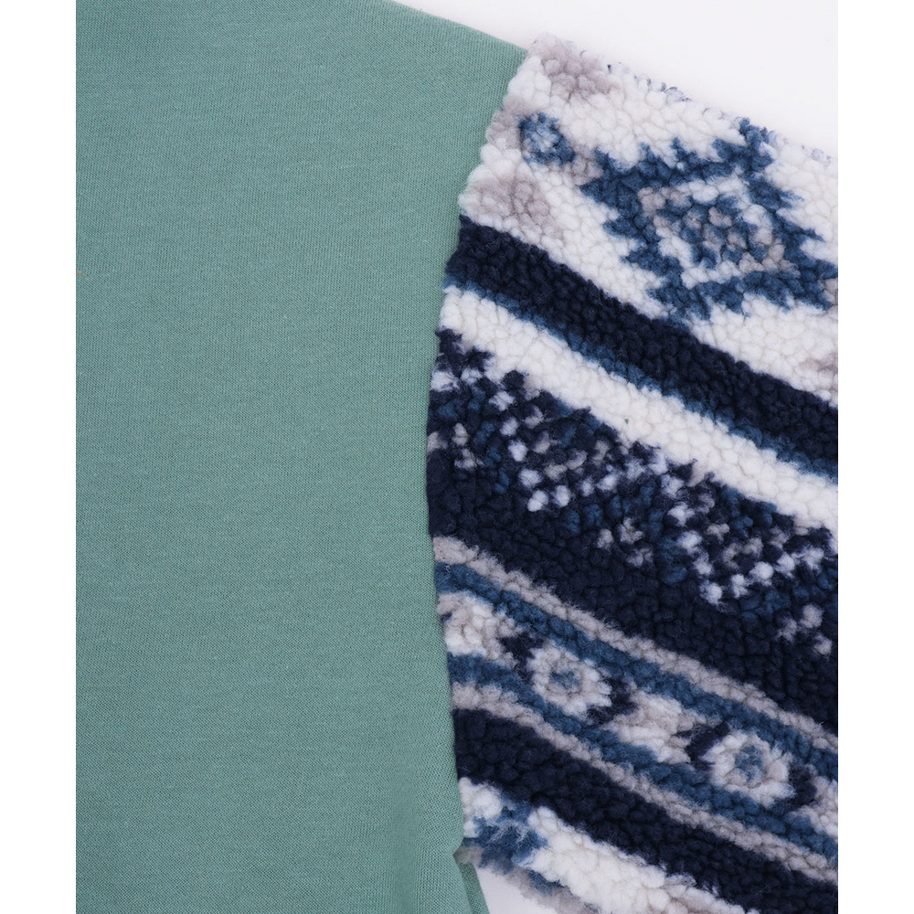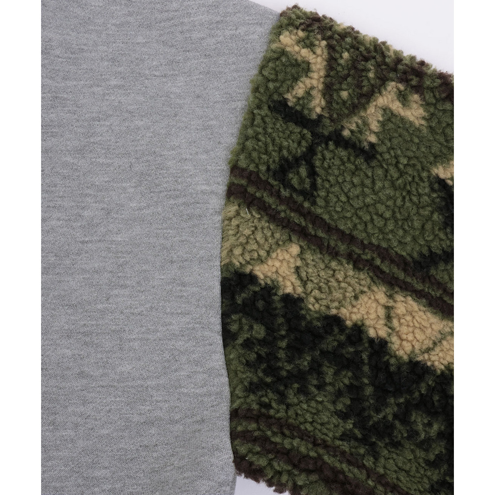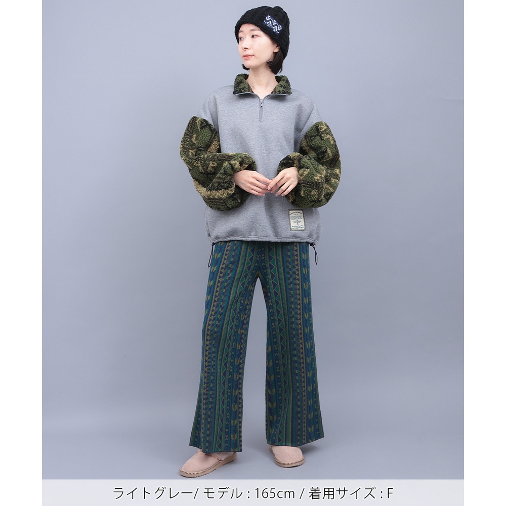 あたたかい裏起毛スウェットボディに、エスニック柄のボア袖をプラスしたシーズンムード満点の1枚。