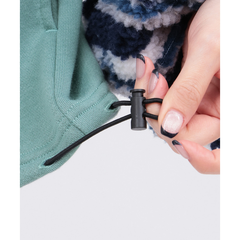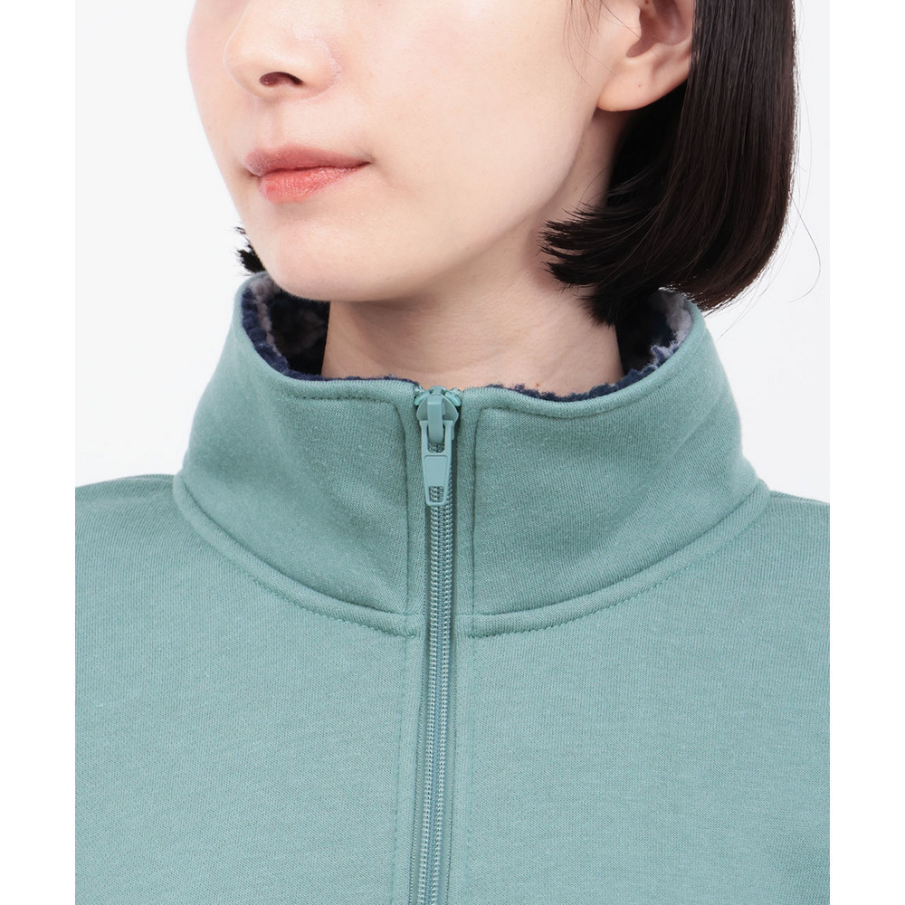 ハーフジップデザインで、ジップを下げると衿裏のボアが覗き印象が変化。