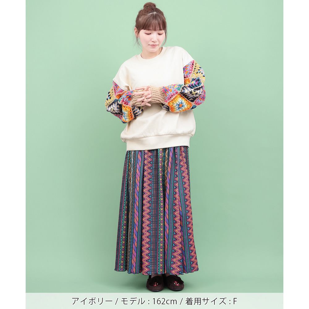 華やかな柄のスカートを合わせてエスニックスタイルを楽しんで◎