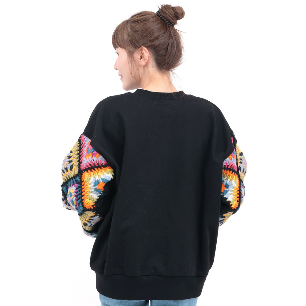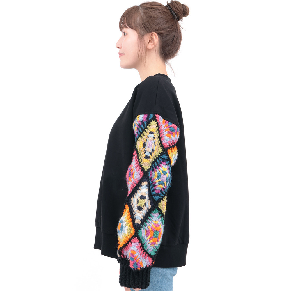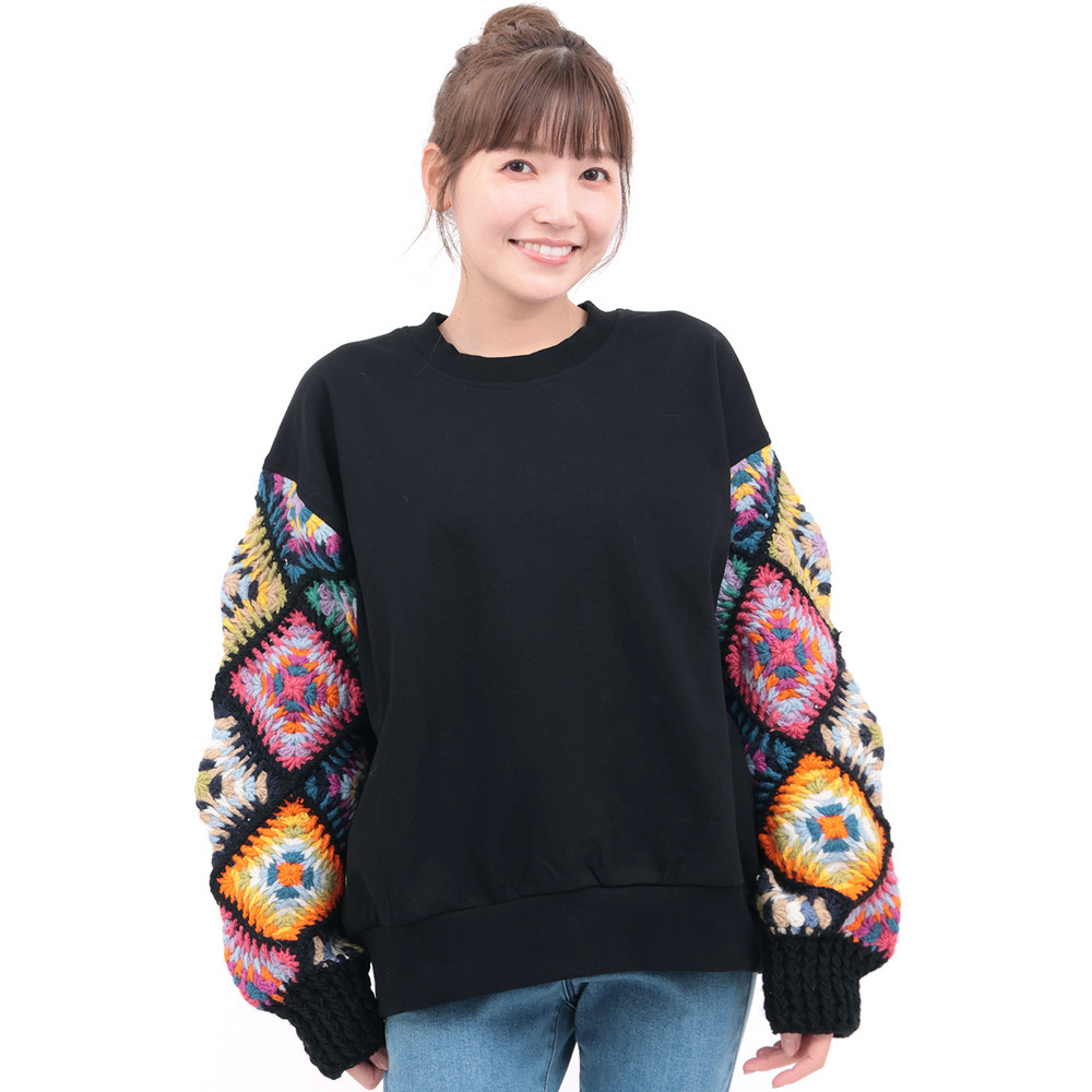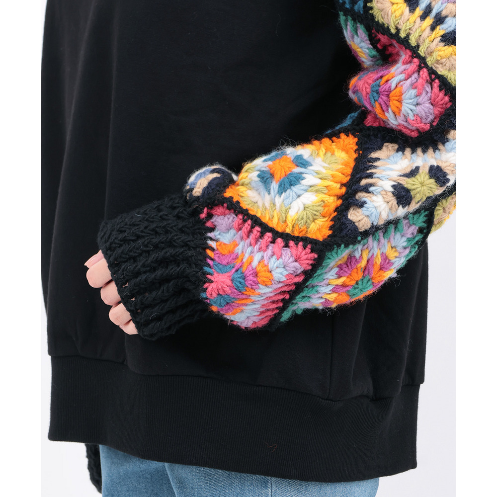 身頃は裏起毛スウェット、袖は毛素材を使用したニット。