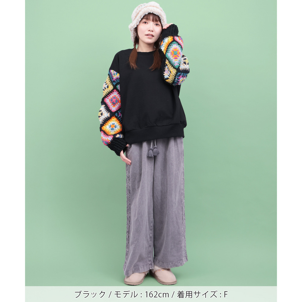 この製品のモチーフ部分は手編みのため1点1点の表情が異なります。