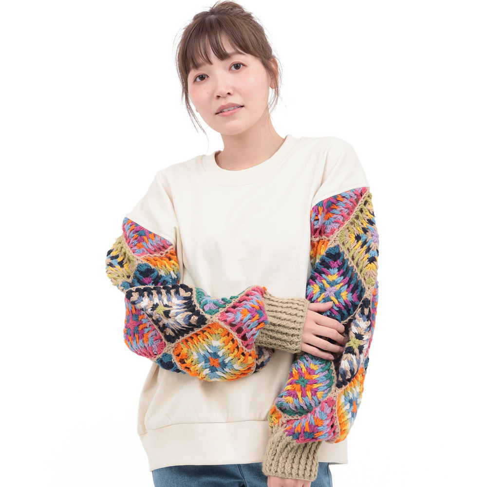 可愛らしいぽってりとしたハンドクロシェの袖が目を惹く贅沢なデザイン。