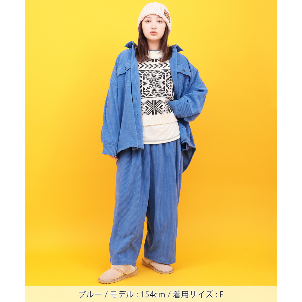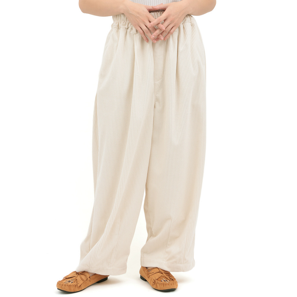 柔らかく風合いのある太畝コーデュロイ素材がほっこりあたたかみのある雰囲気に。