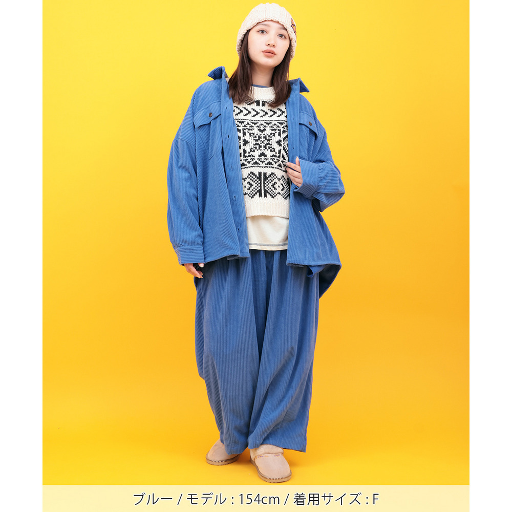 柔らかく風合いのある太畝コーデュロイ素材がほっこりあたたかみのある雰囲気に。