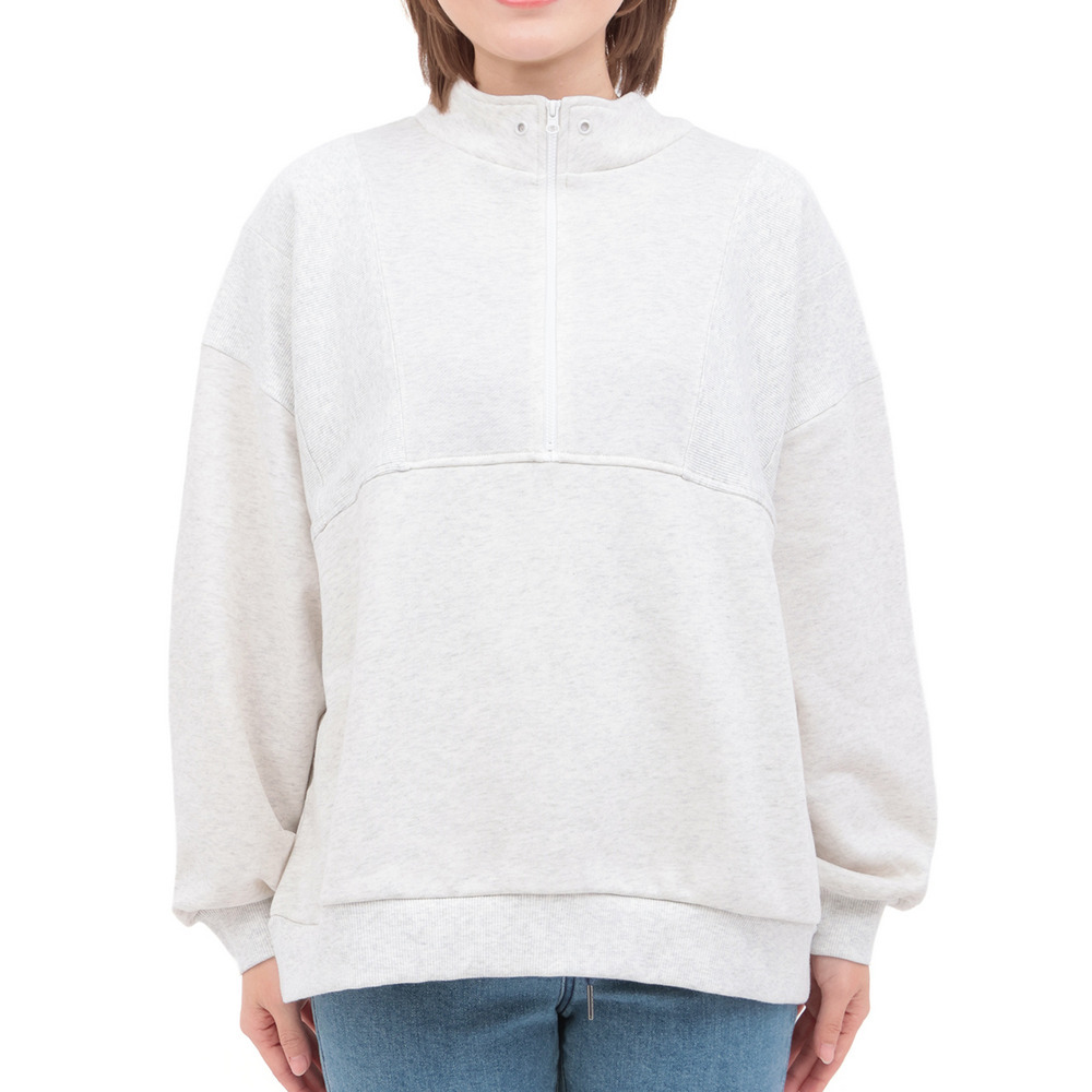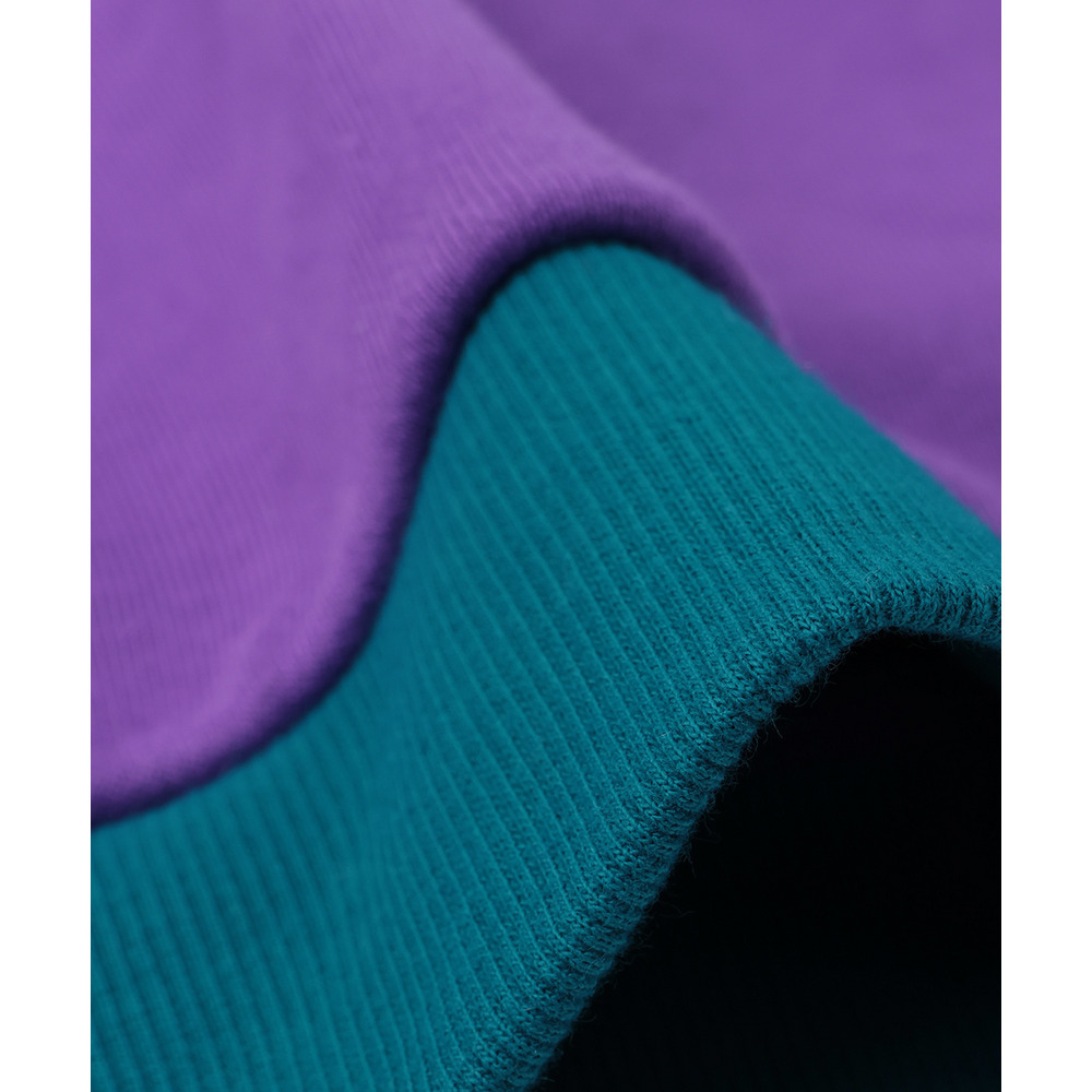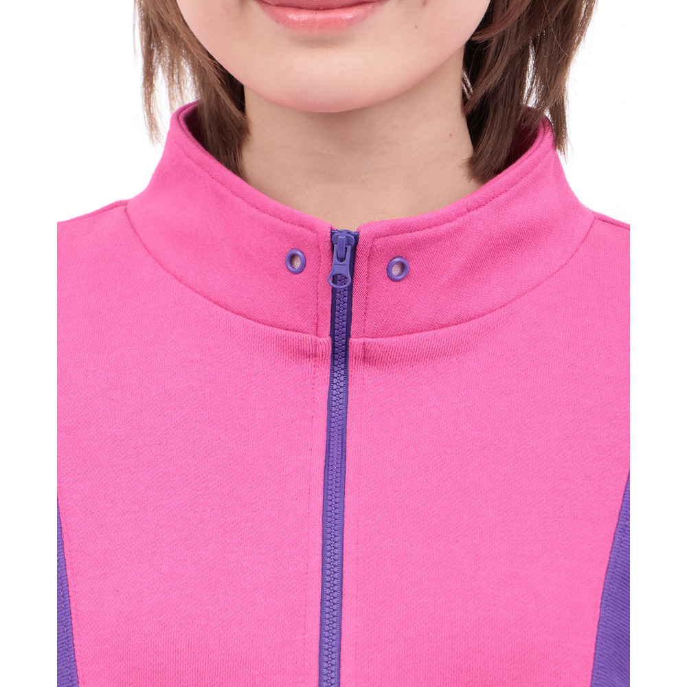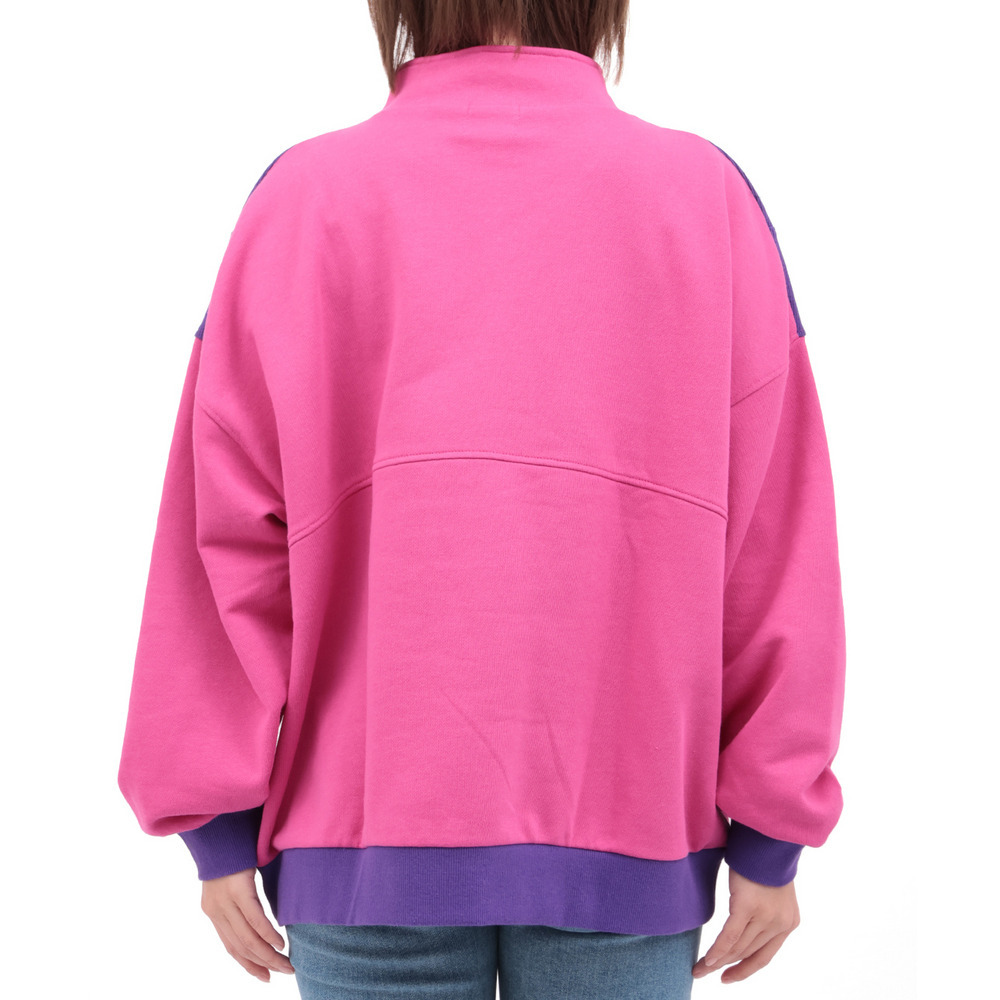 ファスナーとハトメのアクセント、そしてリブに効かせたPOPな配色が魅力のハーフジッププルオーバー。