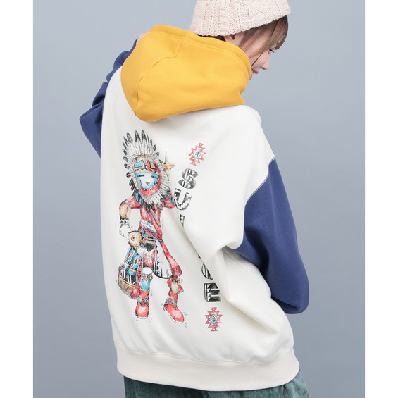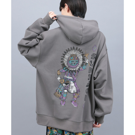 『カッチーナ』と呼ばれる、ネイティブアメリカンのホピ族が信仰する精霊を背中に大胆にプリント!
