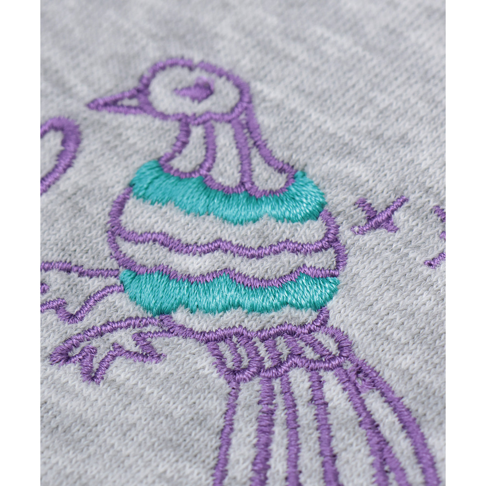 ベーシックなボディカラーに、カラフルな刺繍が映えるデザインです。