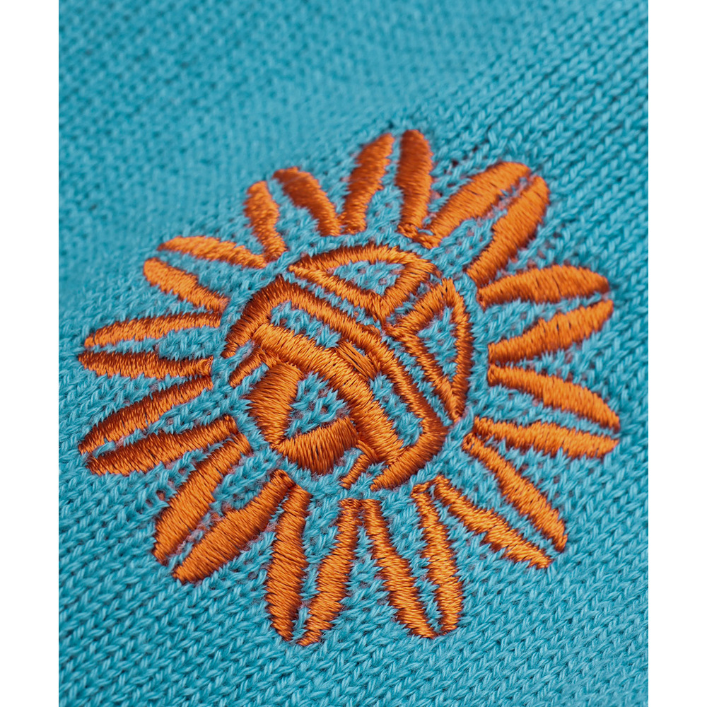 袖にはサンフェイスの刺しゅうを施し、遊び心のあるデザインに。