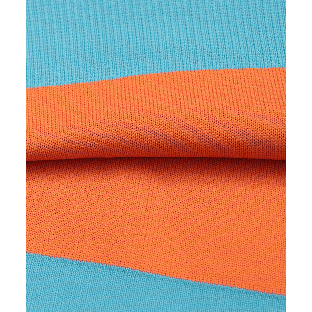 表裏で異なる配色が目を惹く、カラフルなニットトップス。