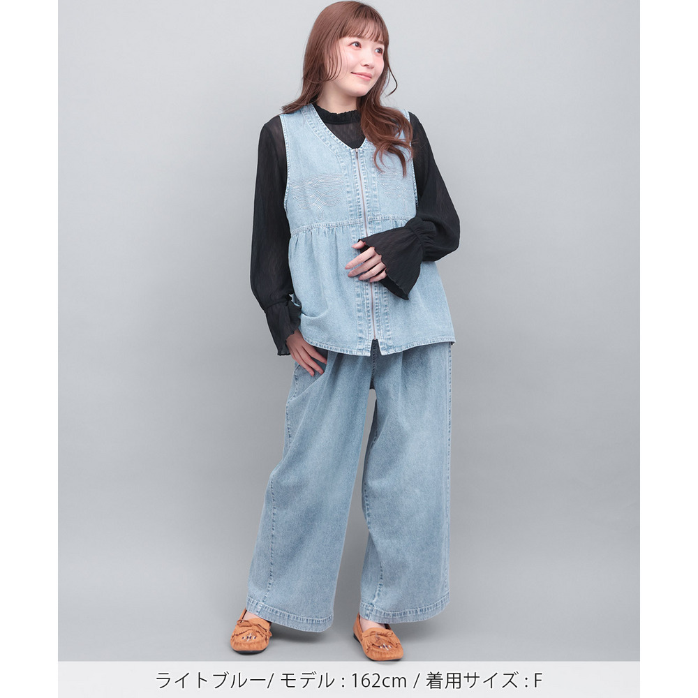 同素材のデニムジャケットやベストとセットアップ風に合わせるのもオススメ。