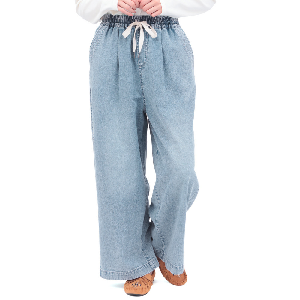 サラッと穿ける、軽い着心地のワイドデニムパンツ