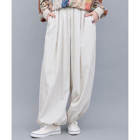ウエストにギャザーをたっぷり入れつつ、もたつきにくく穿きやすいシルエットです。