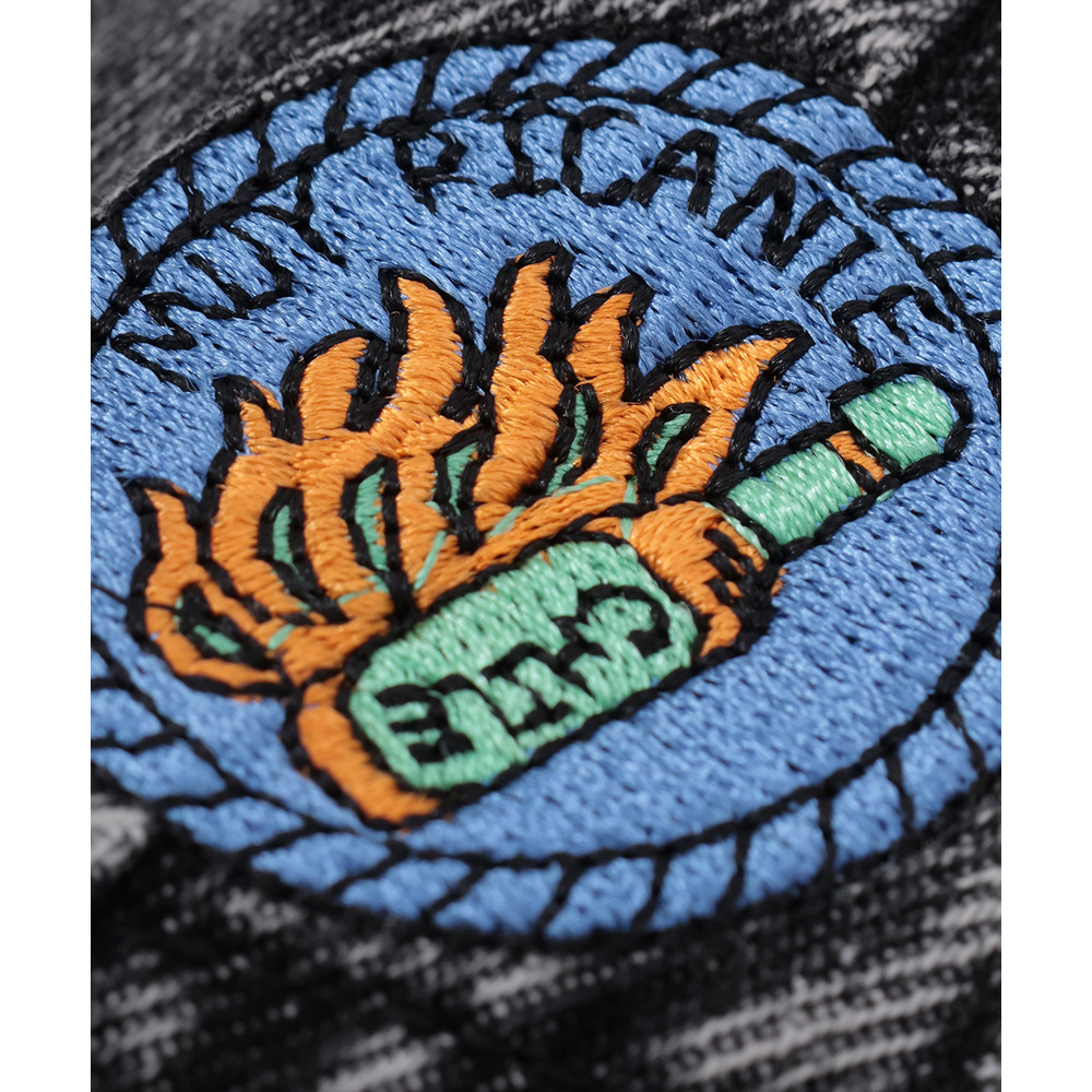 胸ポケットのワッペン風刺繍がさりげないポイントに。