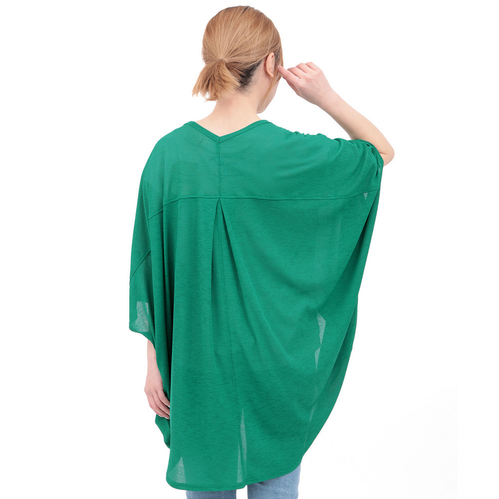 体と腕のラインを自然にカバーしてくれるドルマンスリーブで、華奢見えも◎