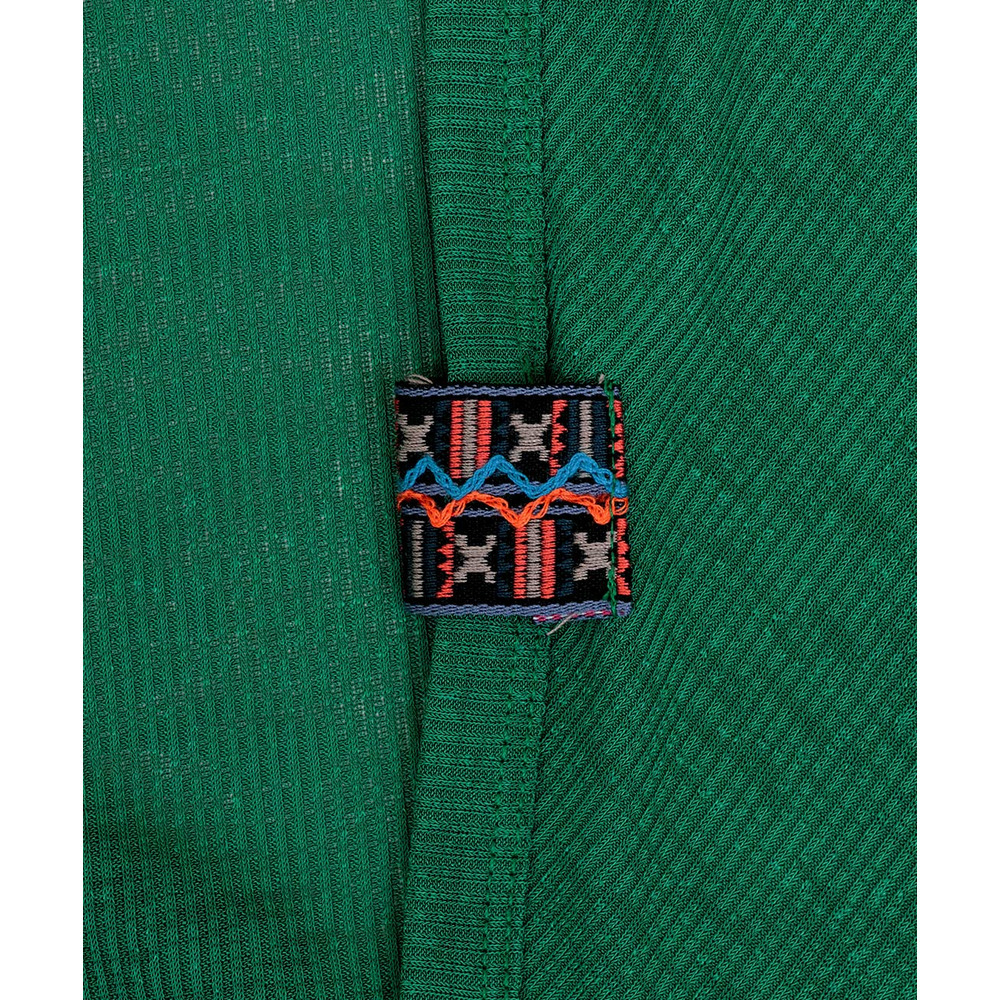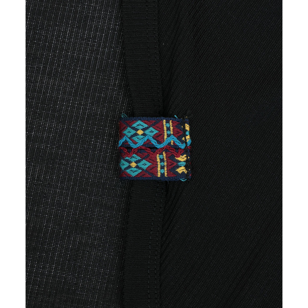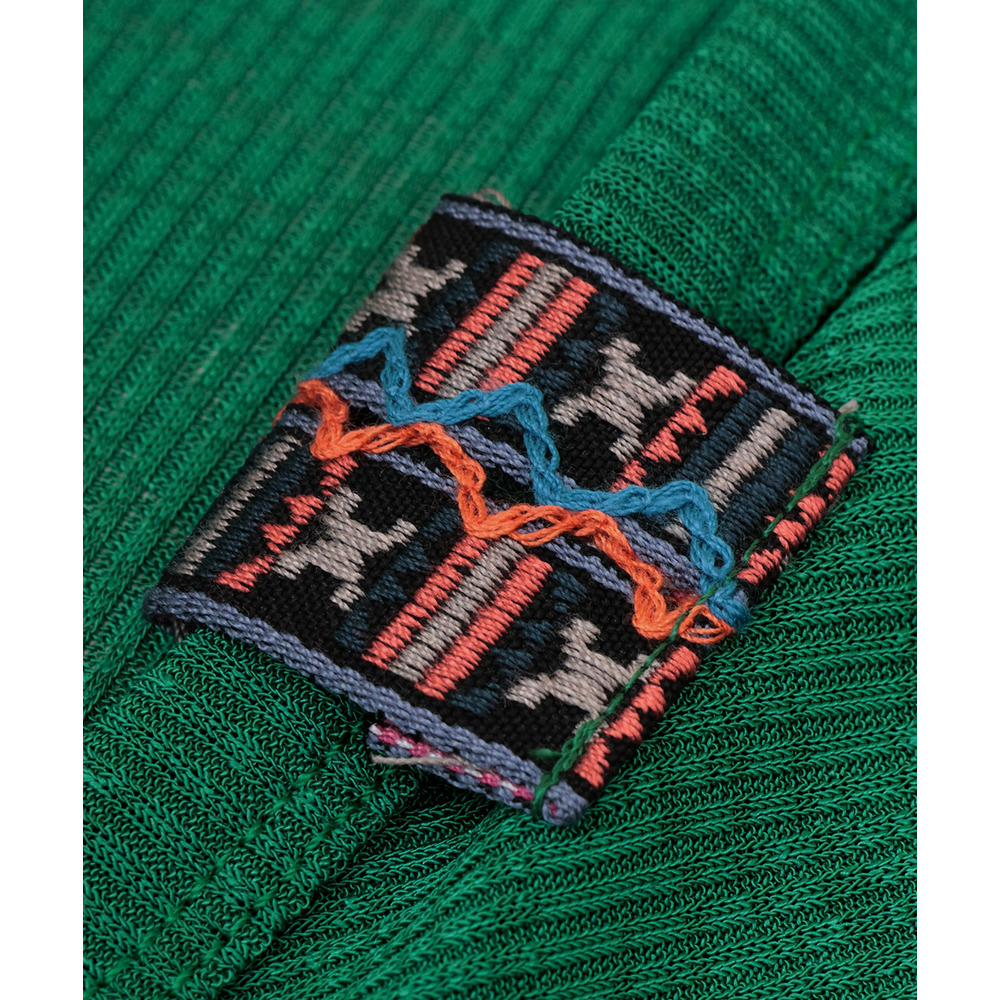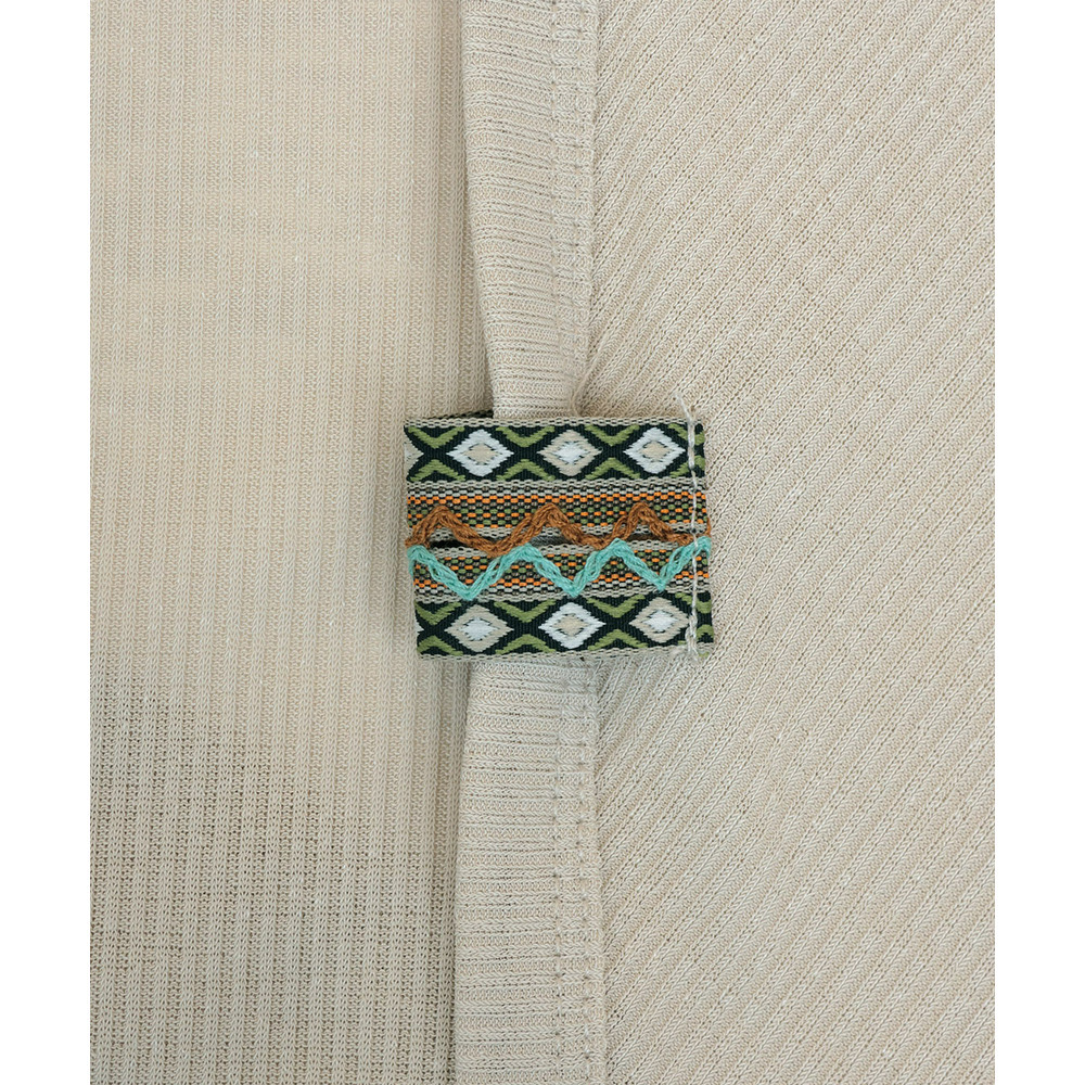 さりげなくあしらったエスニックテープが、コーデのアクセントに。