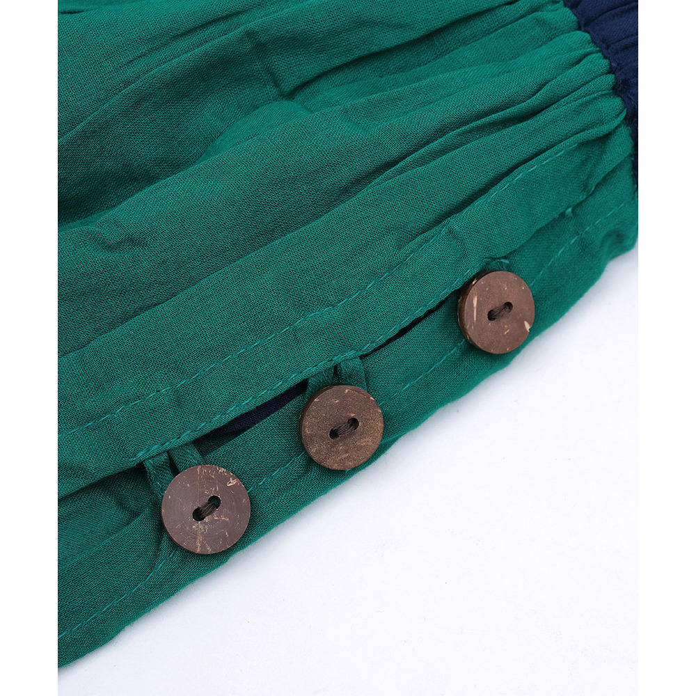 腰部分のウッド素材の三連ボタンがアクセントになっています。
