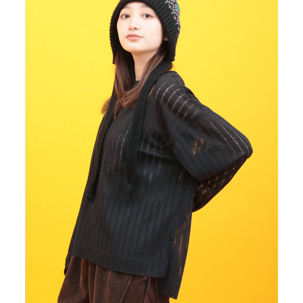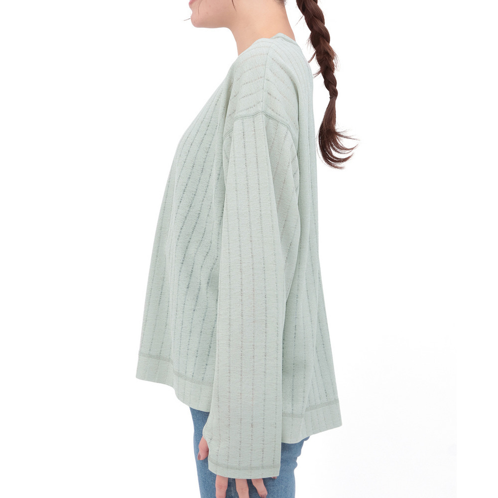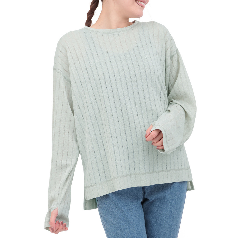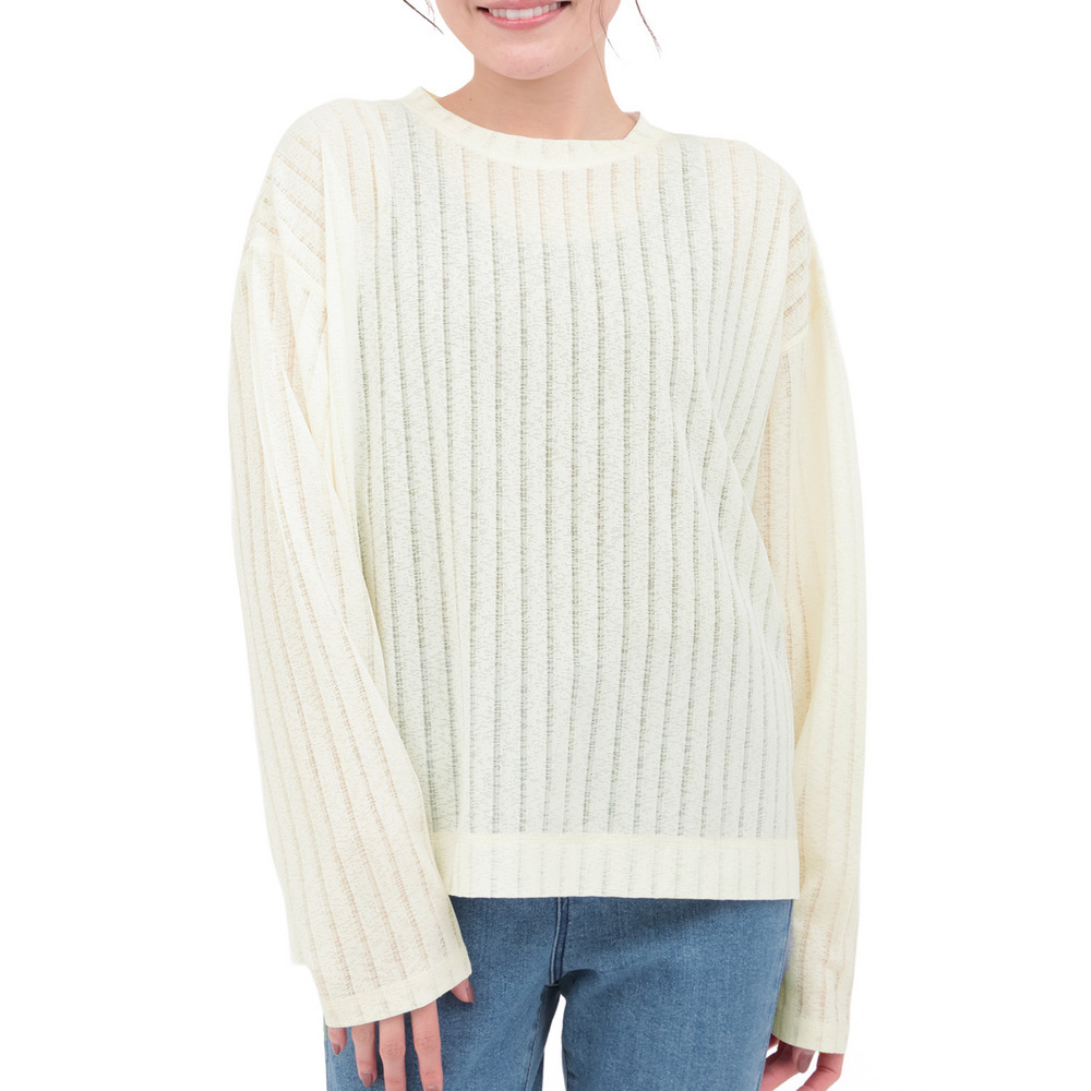 うっすらとストライプのように見える柄が特徴のシアーロングスリーブTシャツ。