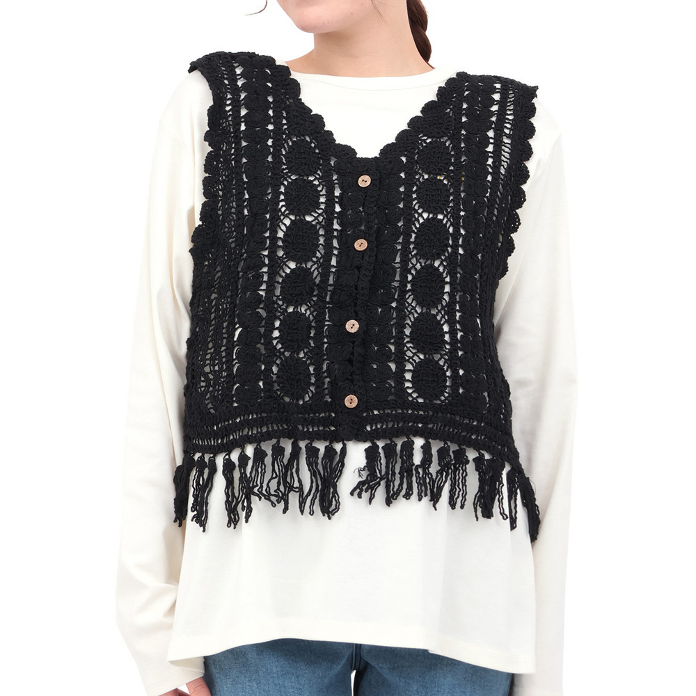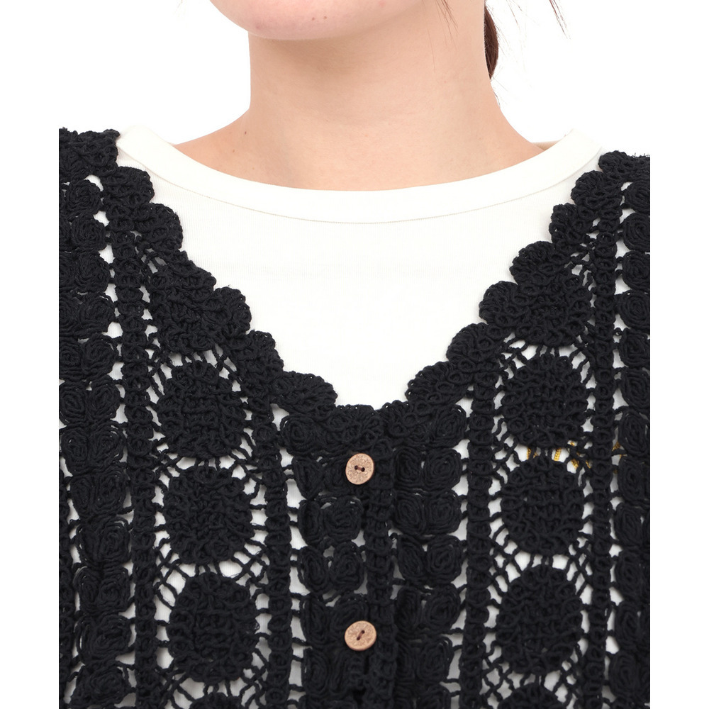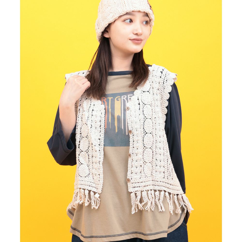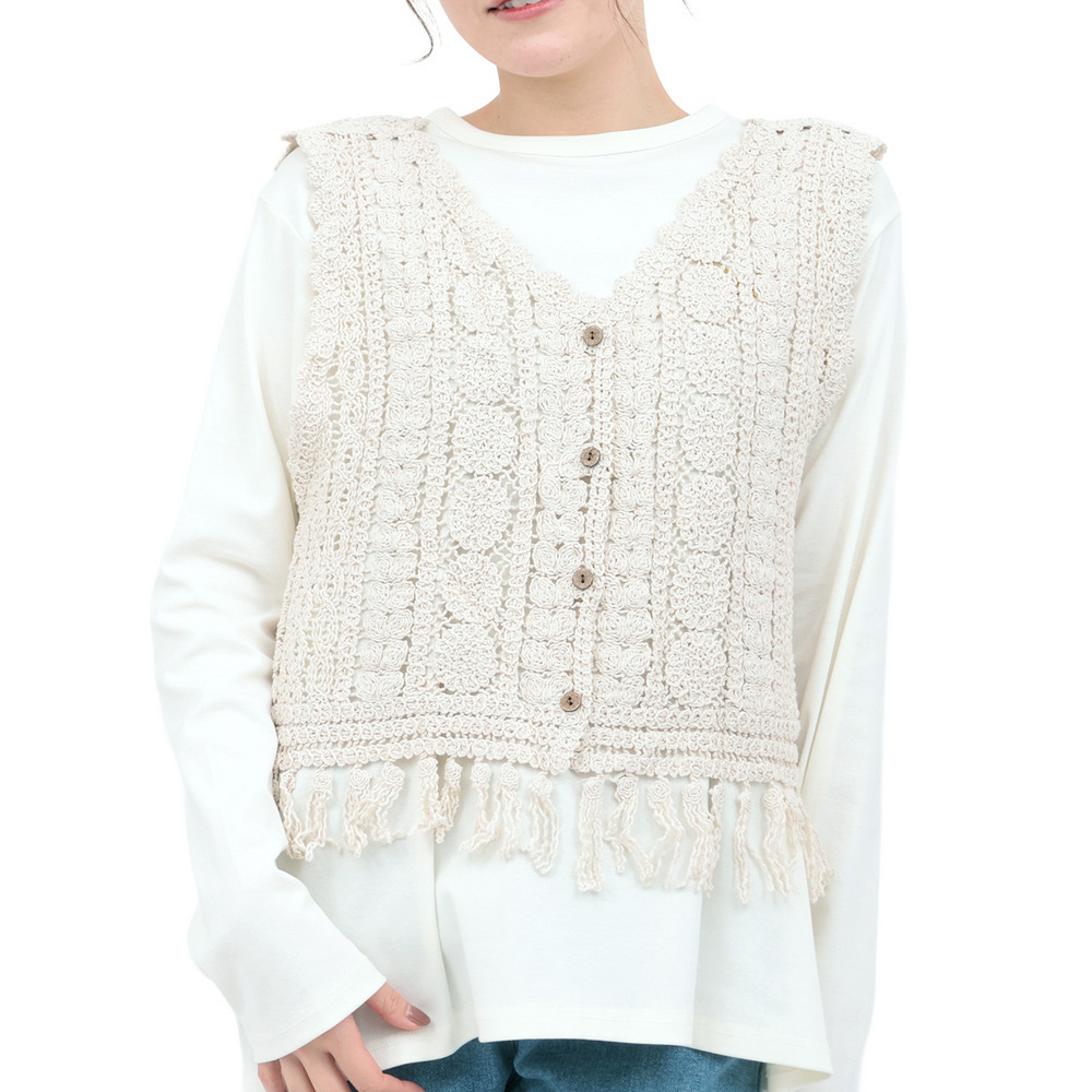 表情豊かな編み地が目を引く、かぎ針編みのベスト。