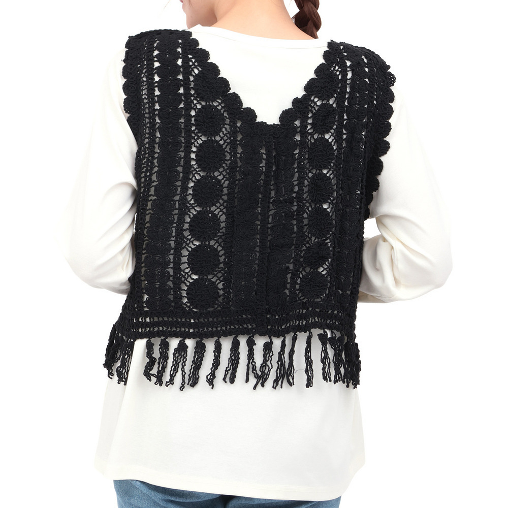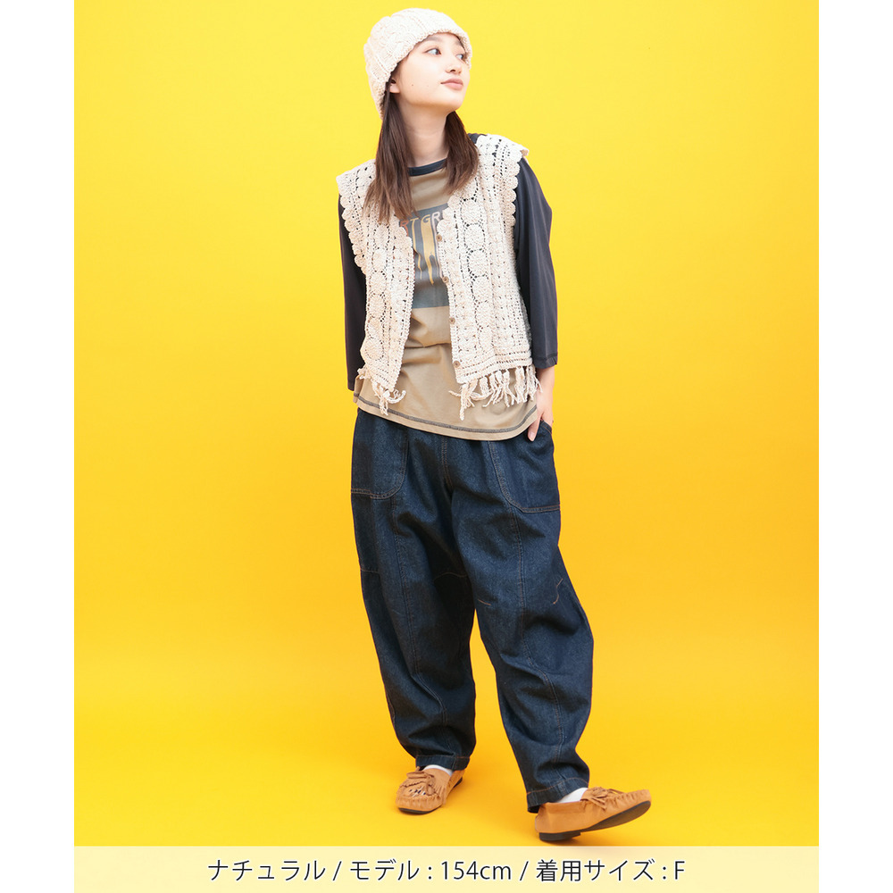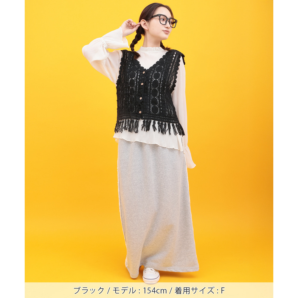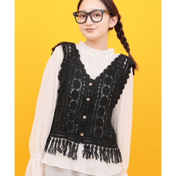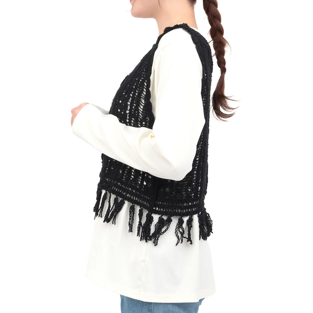 表情豊かな編み地が目を引く、かぎ針編みのベスト。