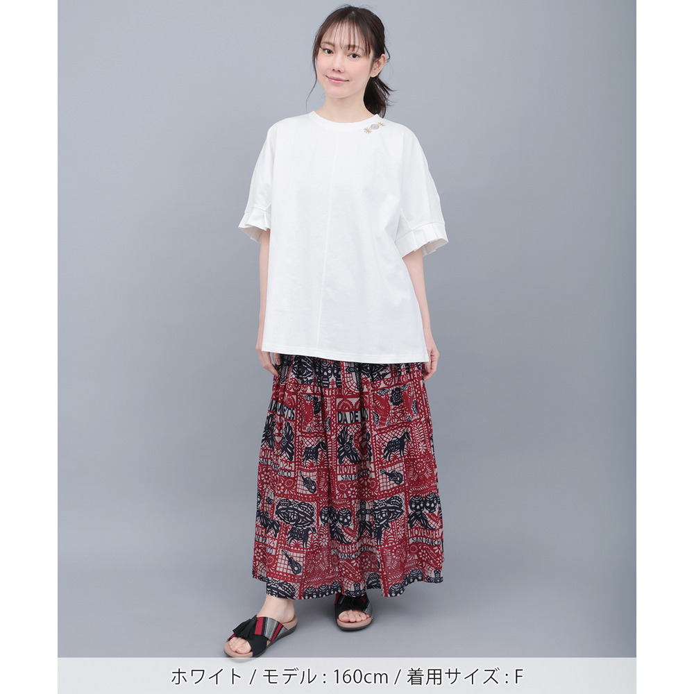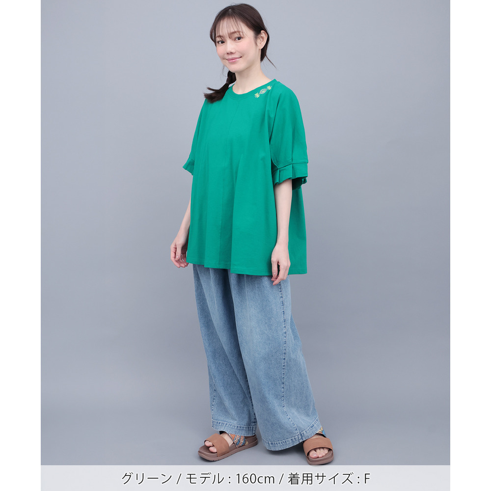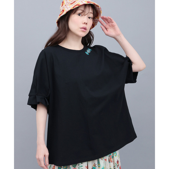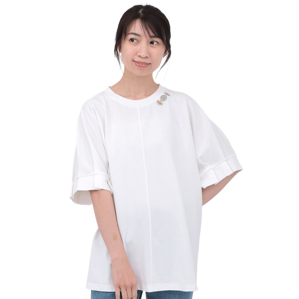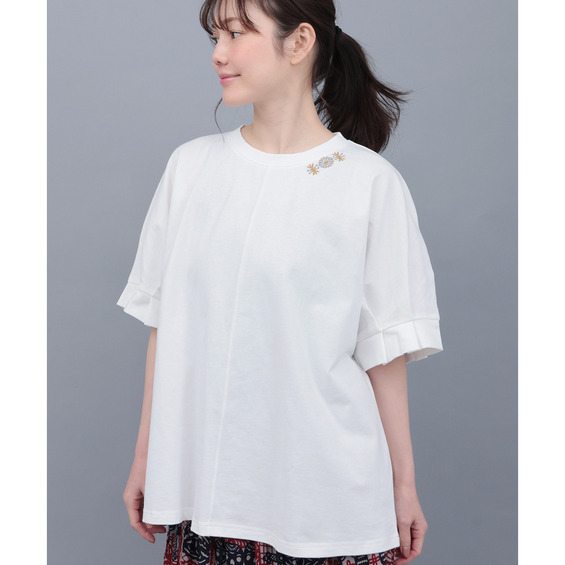 袖に大きく入れたタックが、立体感のあるぽわんスリーブを演出するデザインTシャツ。