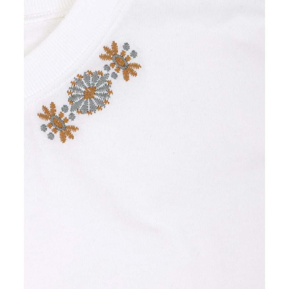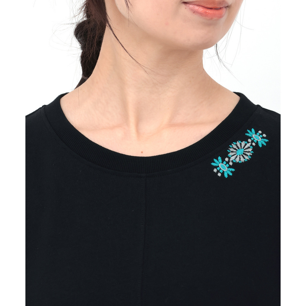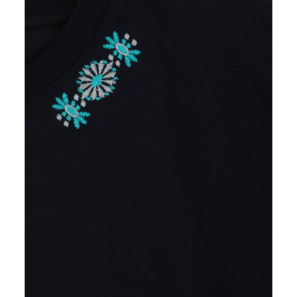 衿元にはネイティブアメリカンのコンチョモチーフの刺繍を施し、大人のアクセントをプラス。