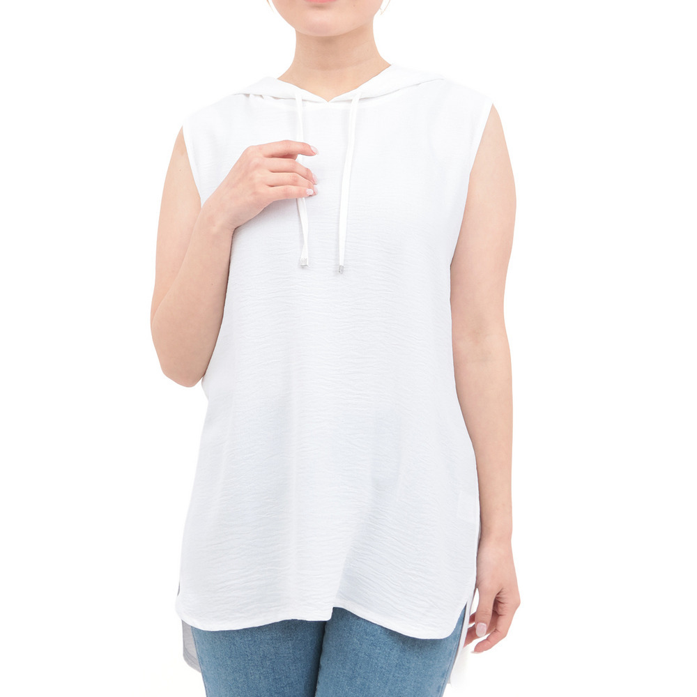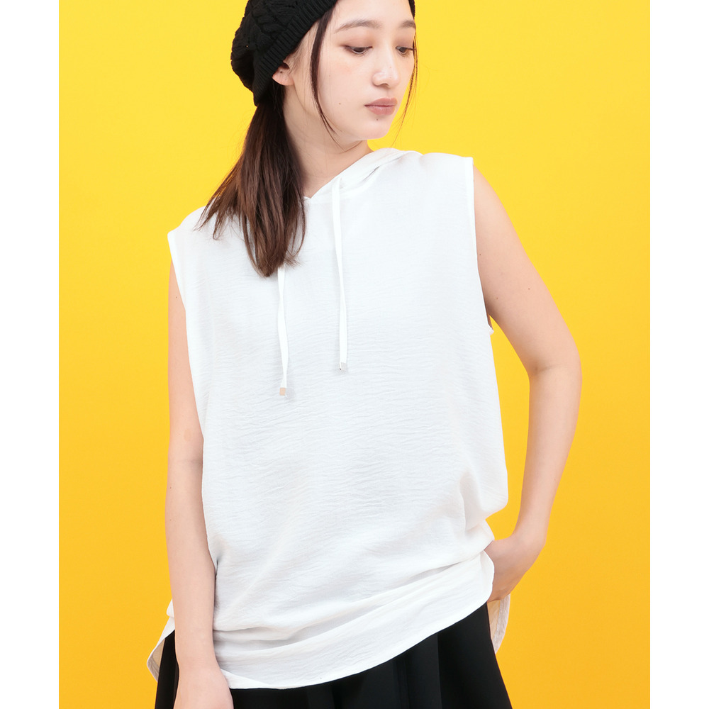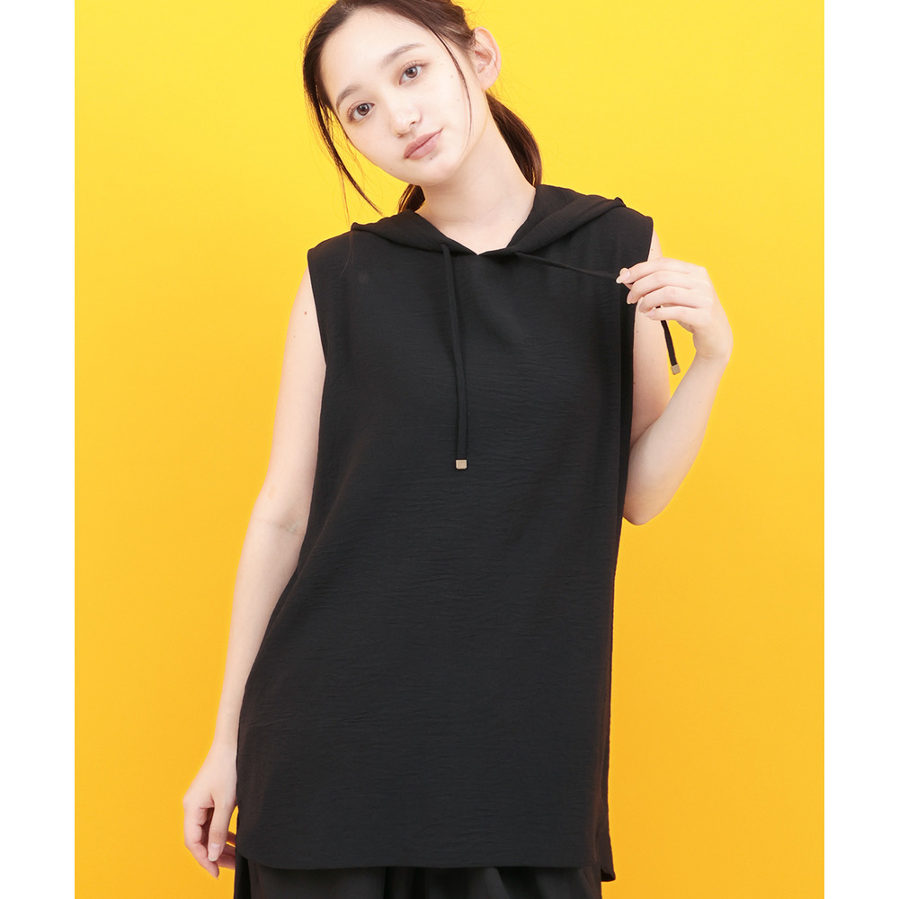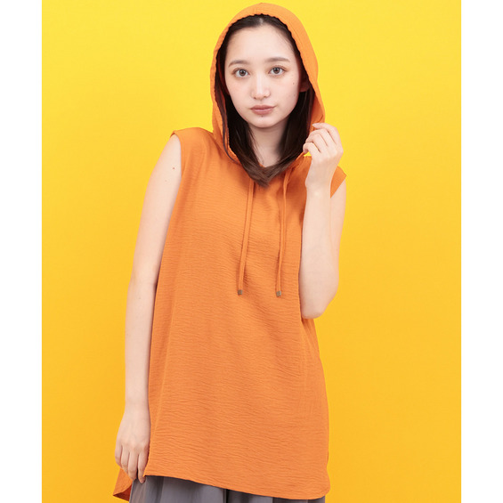 さらっとカジュアルに着こなすフード付きタンクトップ