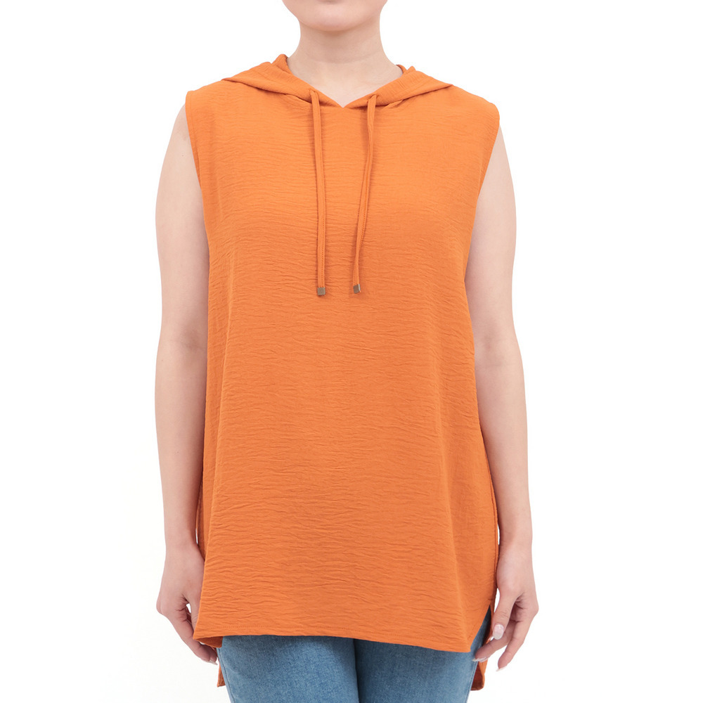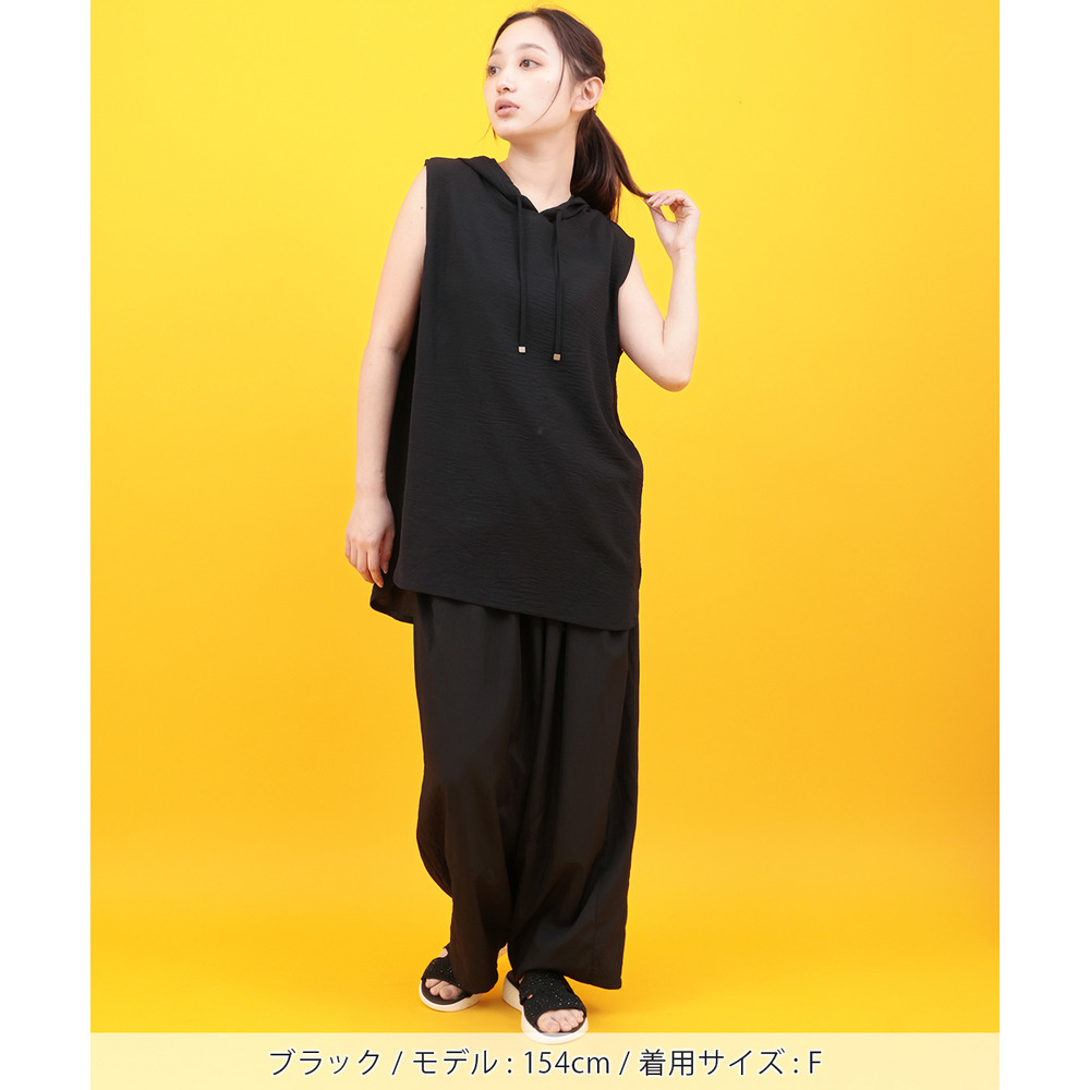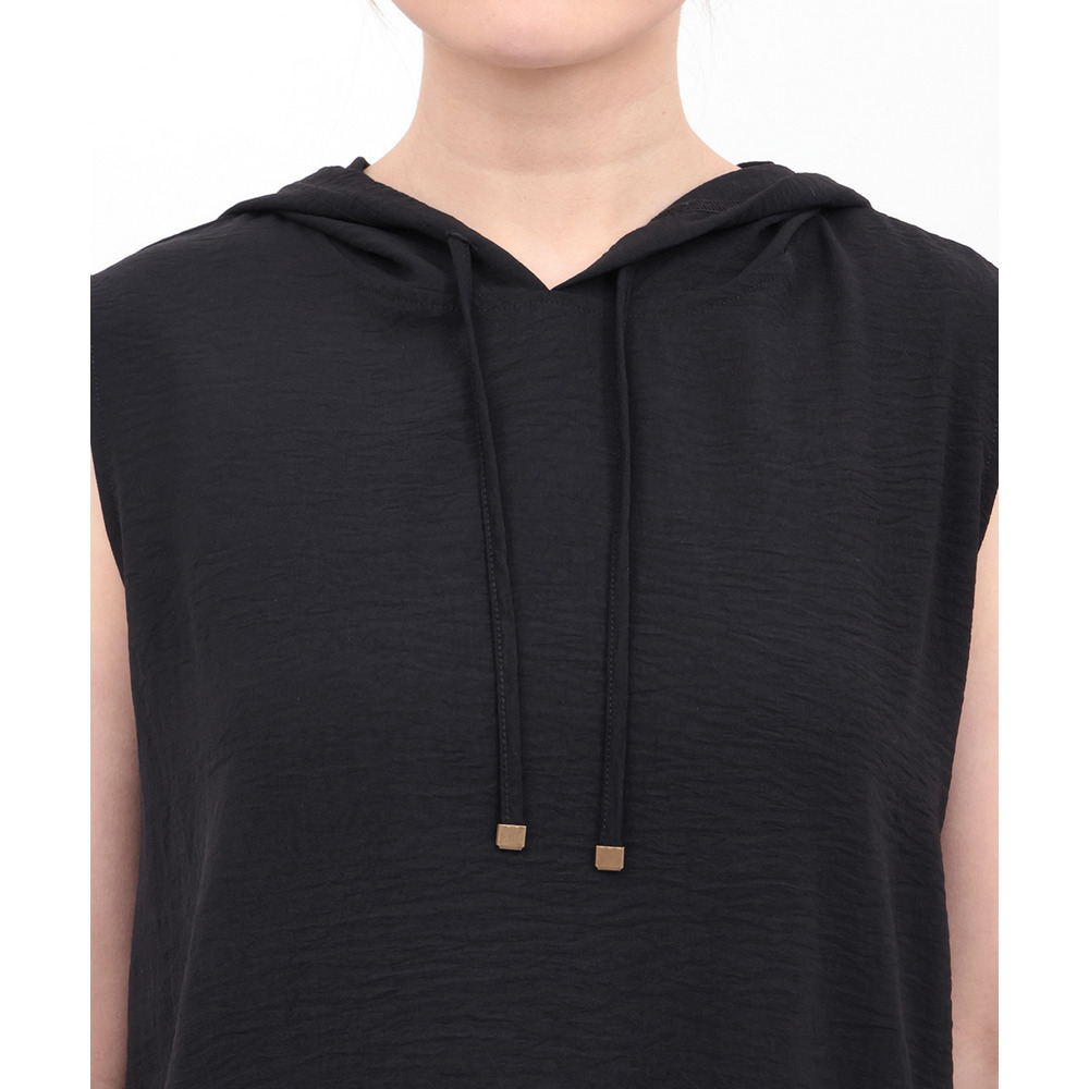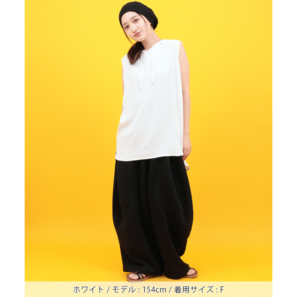 さらっとカジュアルに着こなすフード付きタンクトップ