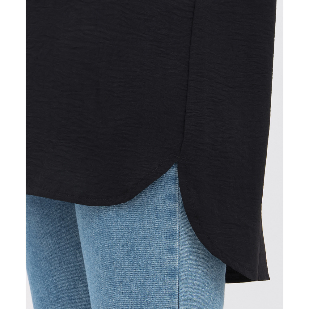 バックロングのラウンド裾は、レイヤードスタイルのアクセントに。