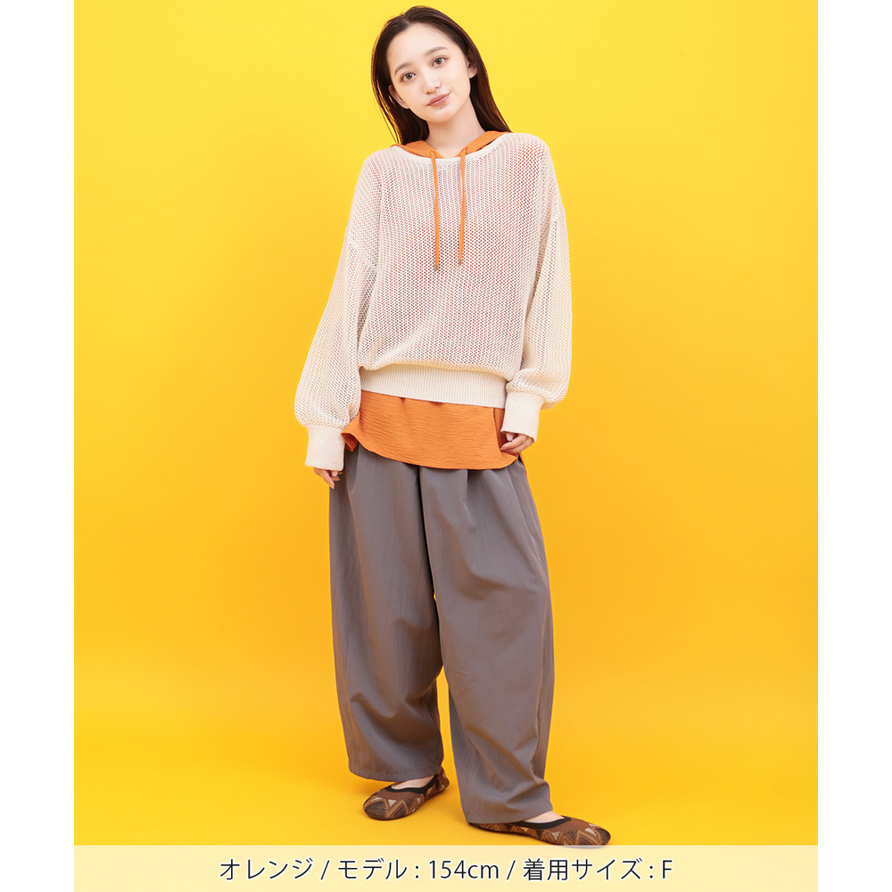 透け感のあるメッシュニットなどに合わせたレイヤードスタイルがおすすめ。