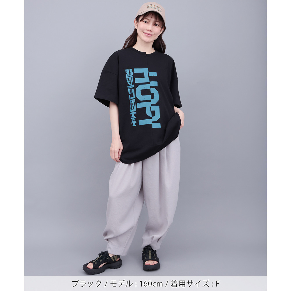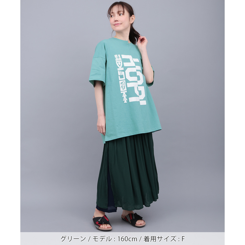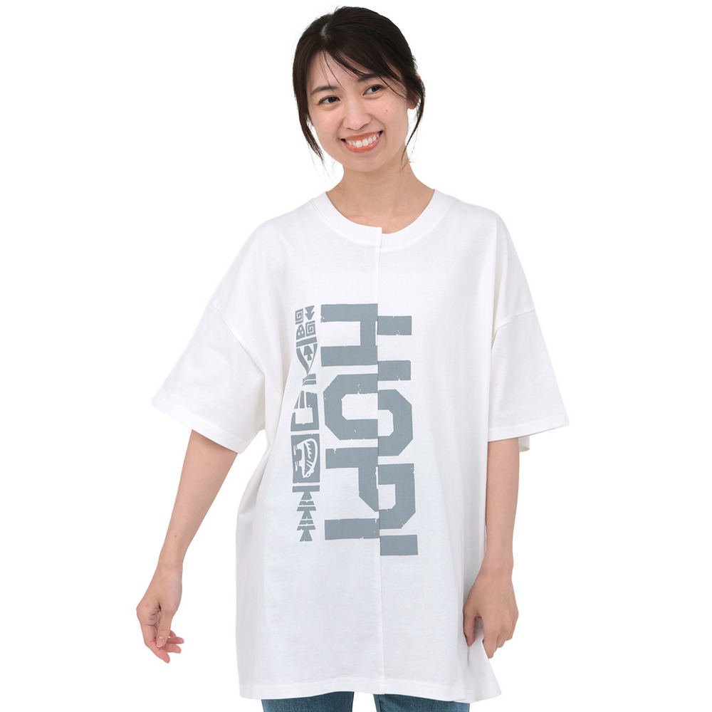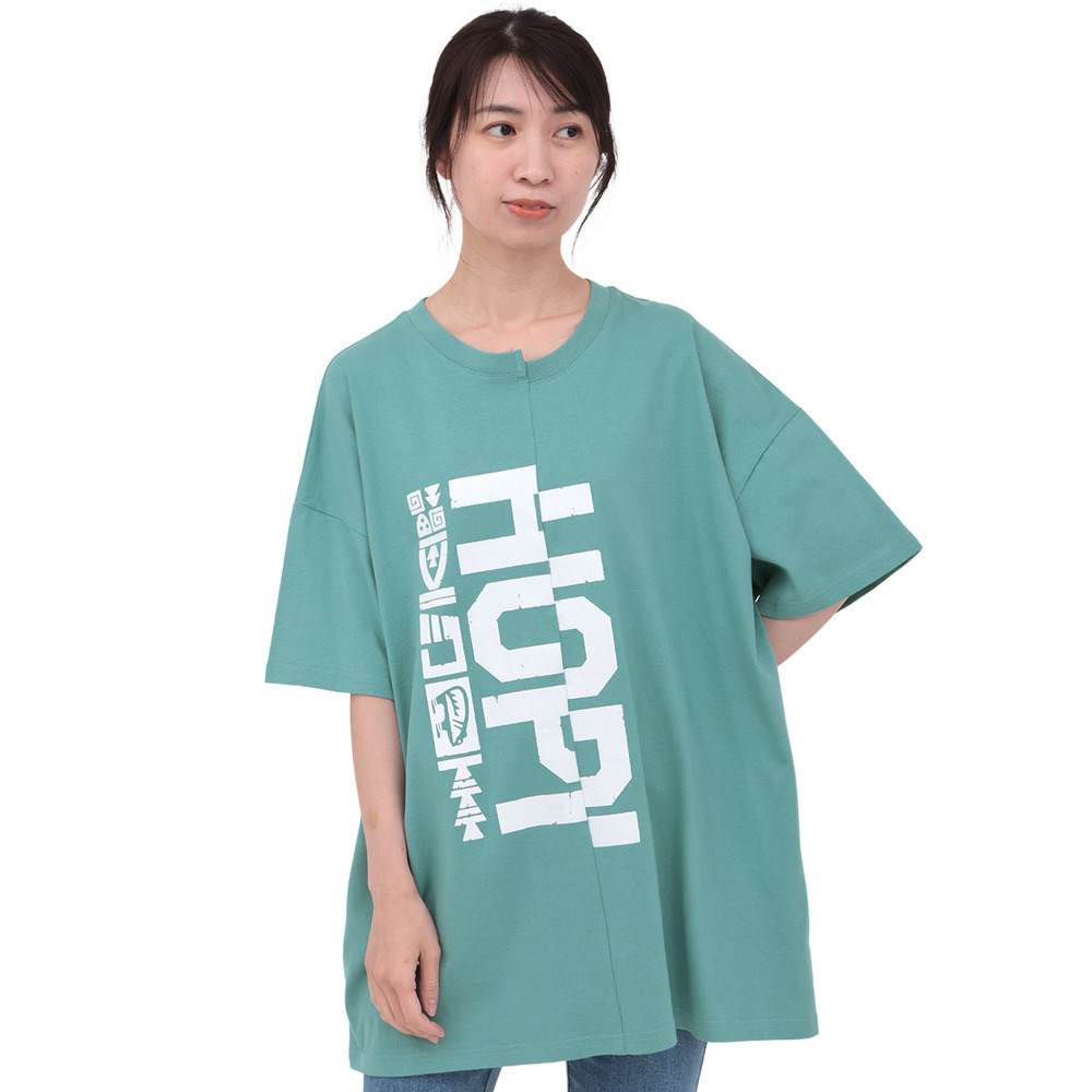 アシンメトリーに切り替えたデザインが目を惹くビッグTシャツ。