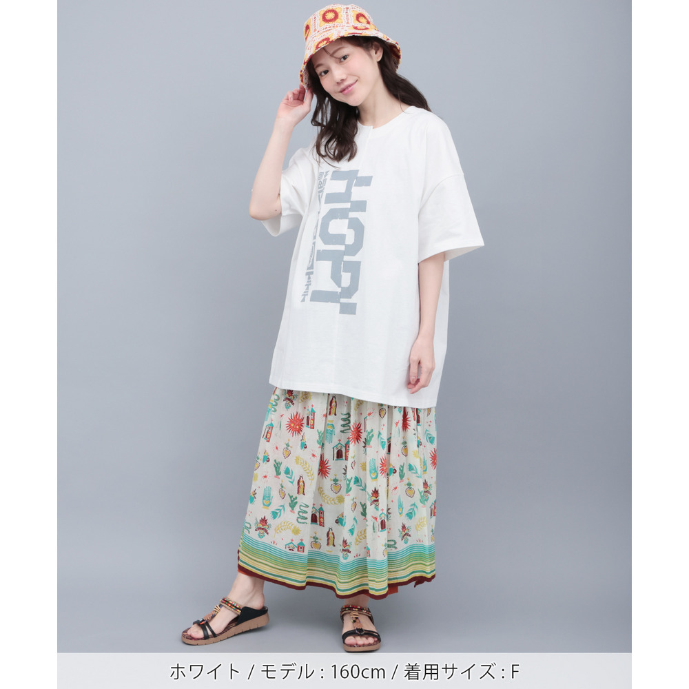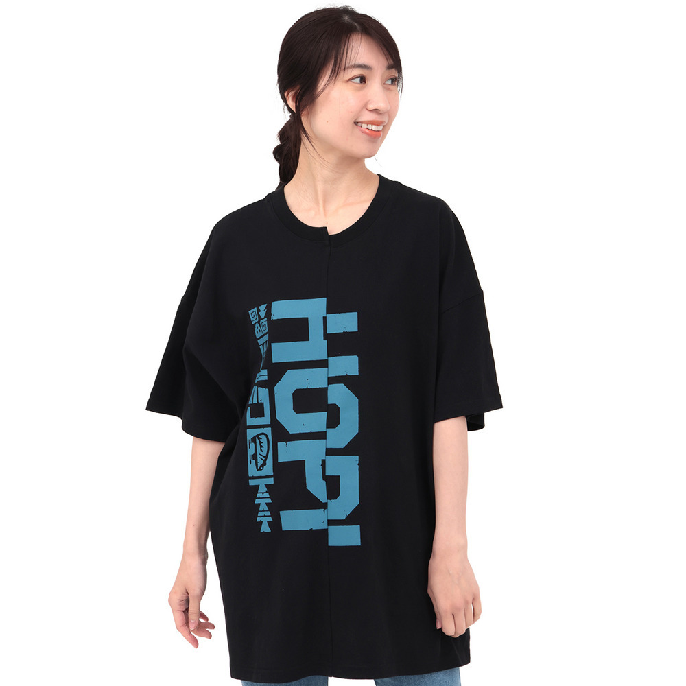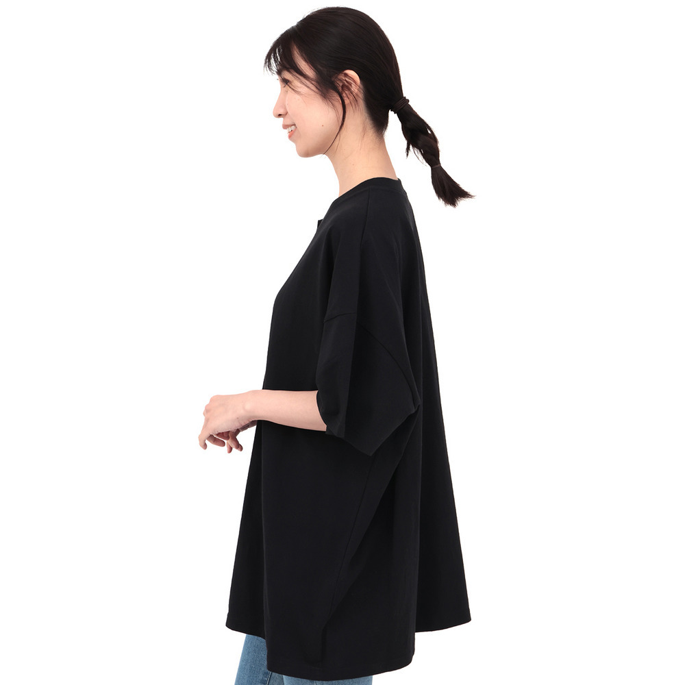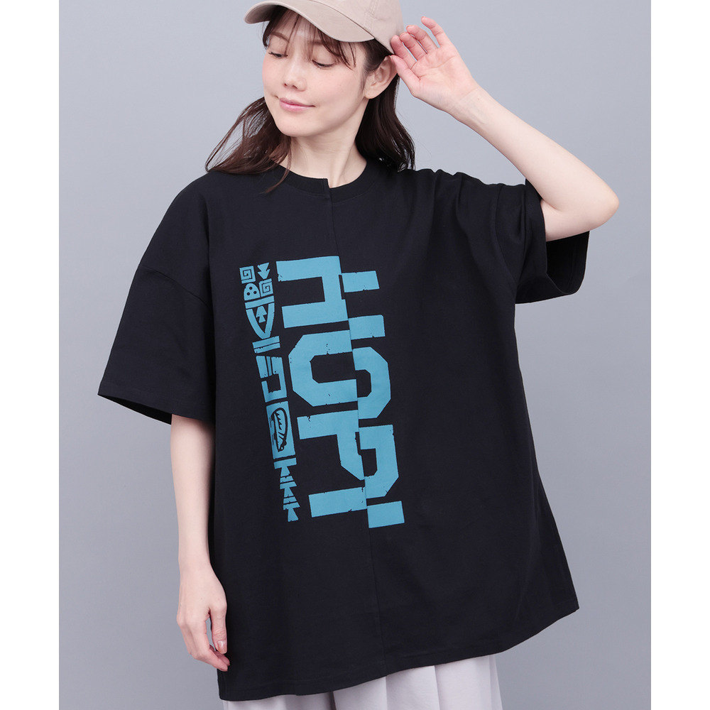 アシンメトリーに切り替えたデザインが目を惹くビッグTシャツ。