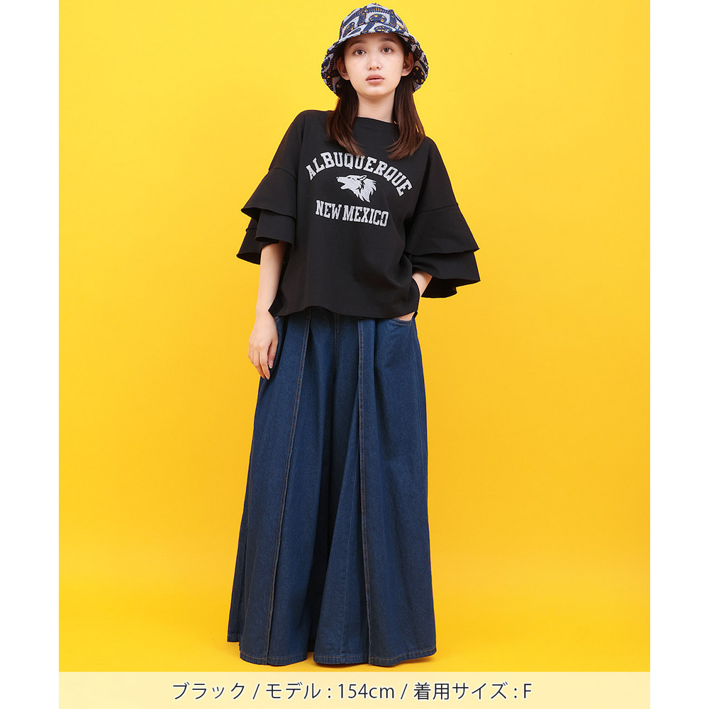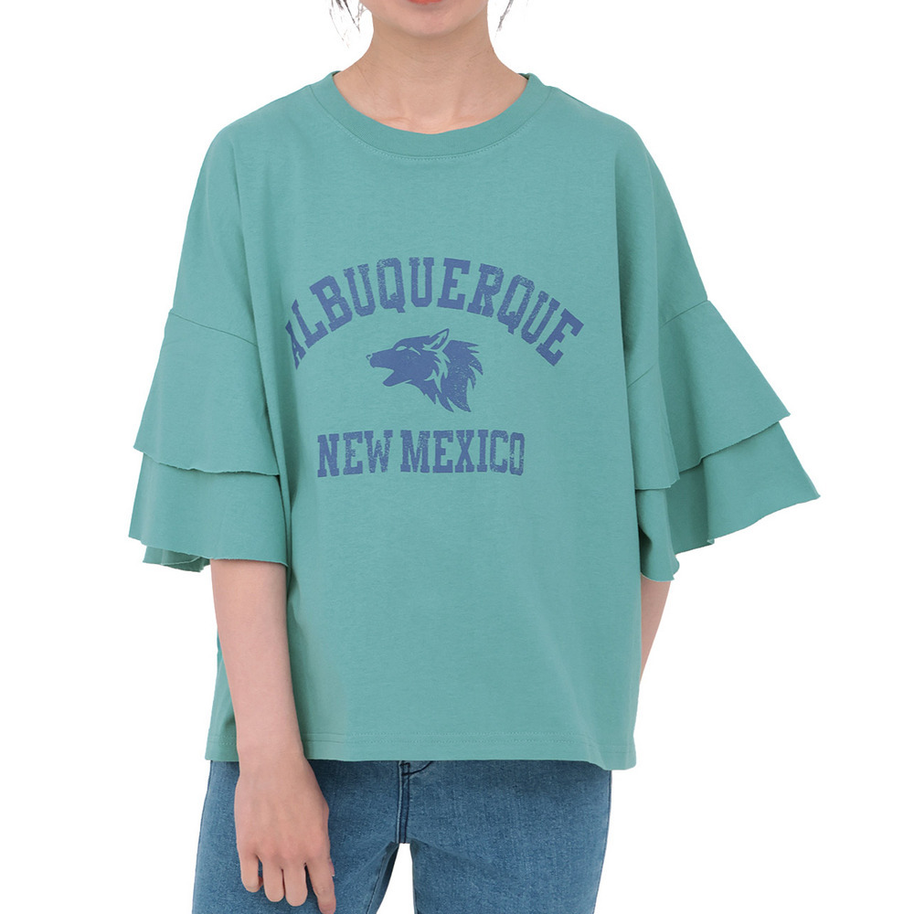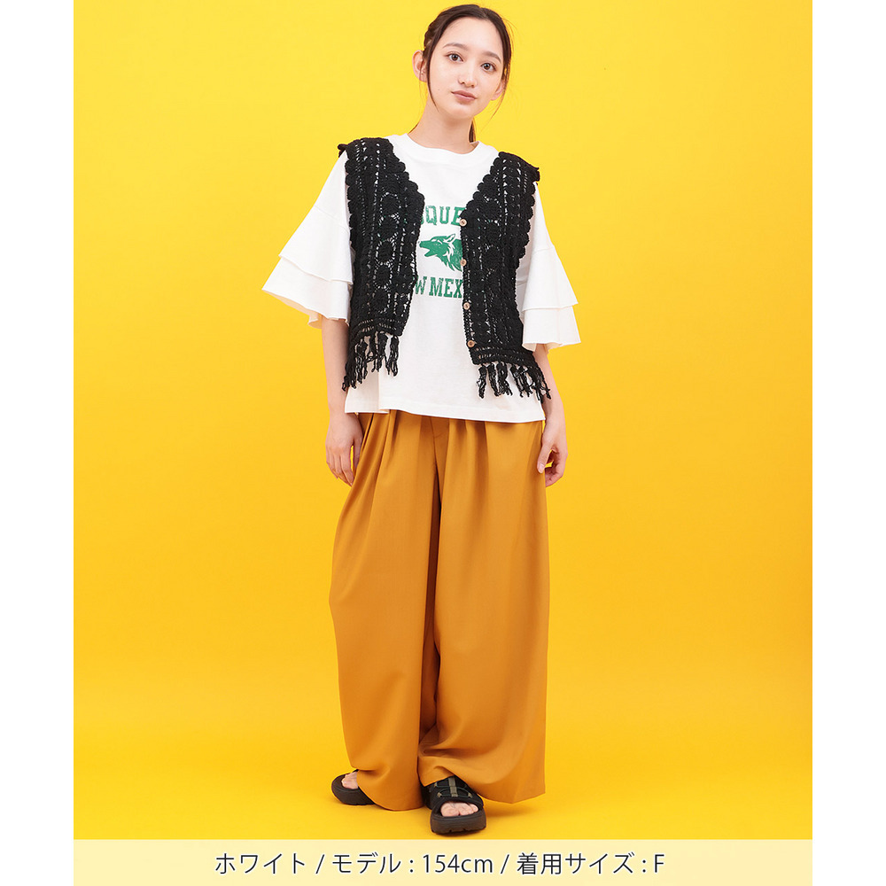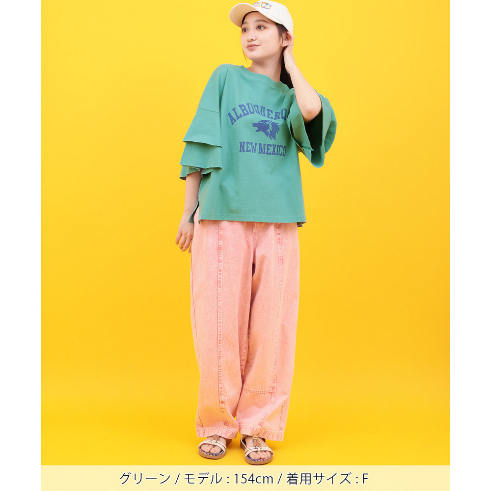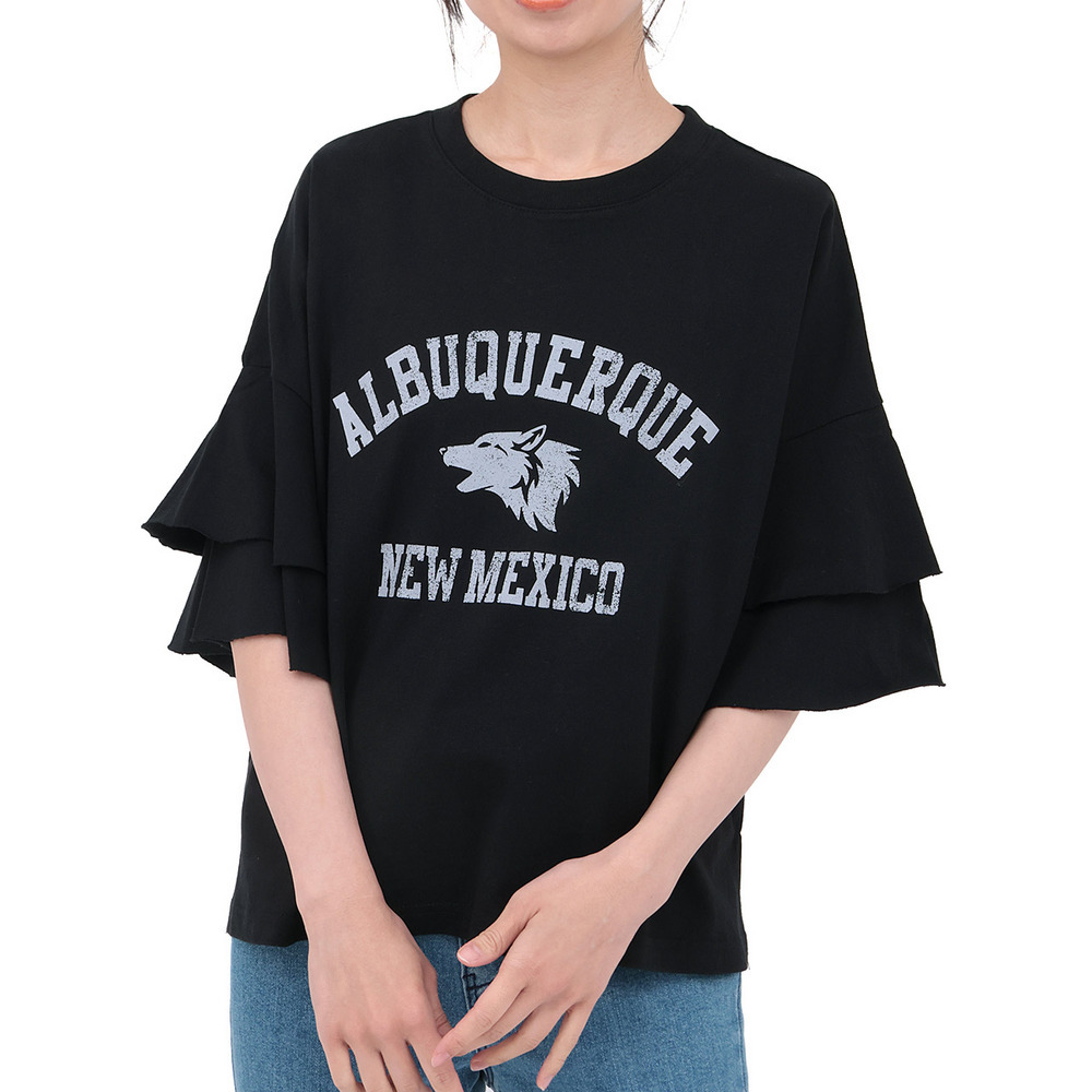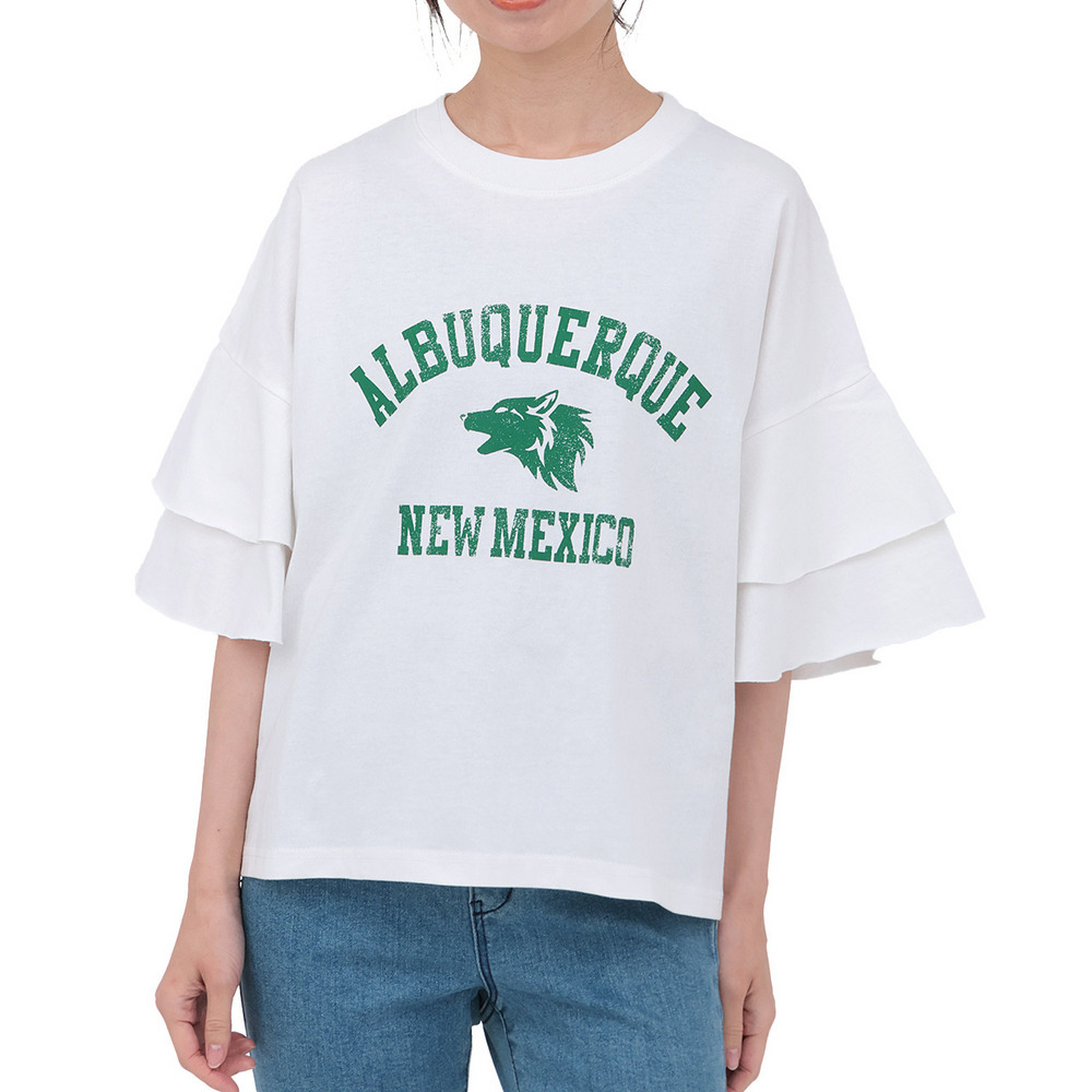 ふんわりとボリュームのある袖ラッフルがポイントのロゴTシャツ。