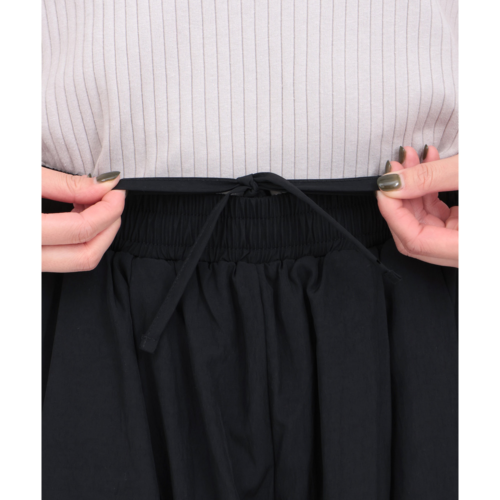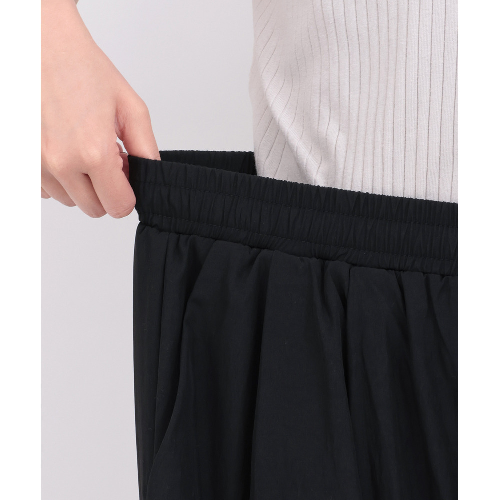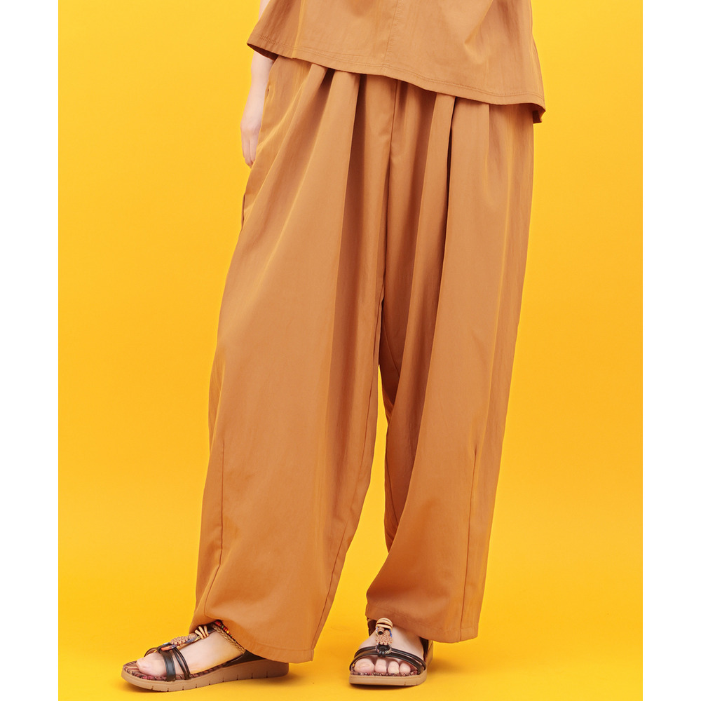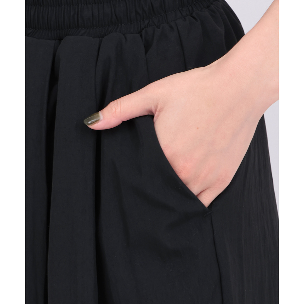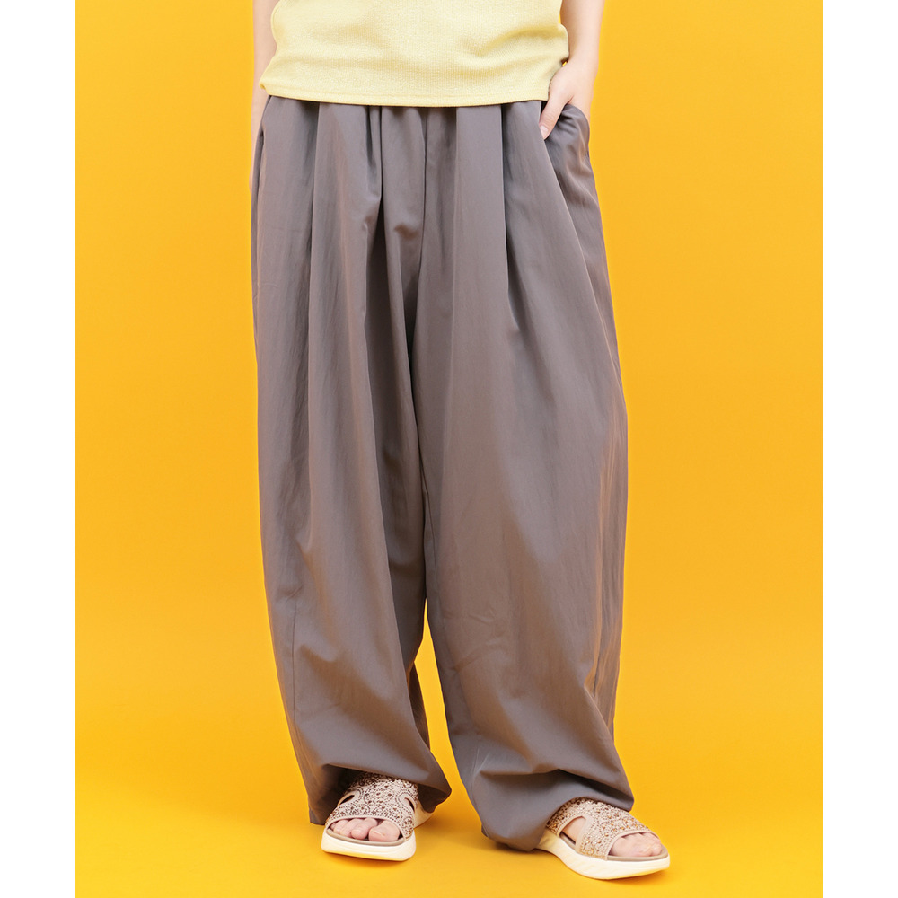 シャカシャカっとしたナイロン素材が特徴のコクーンパンツ。