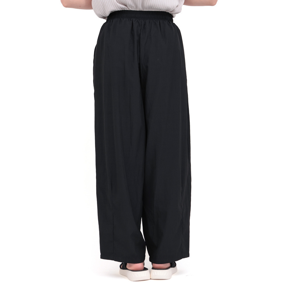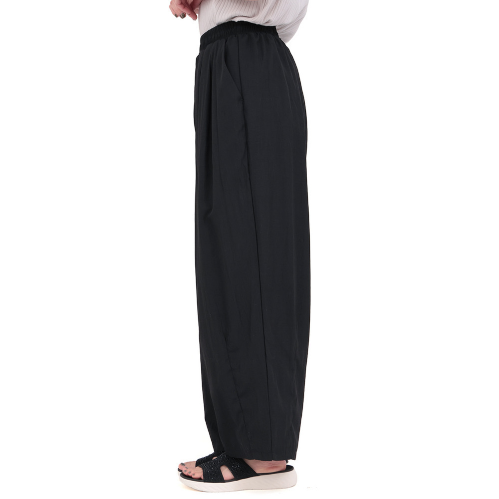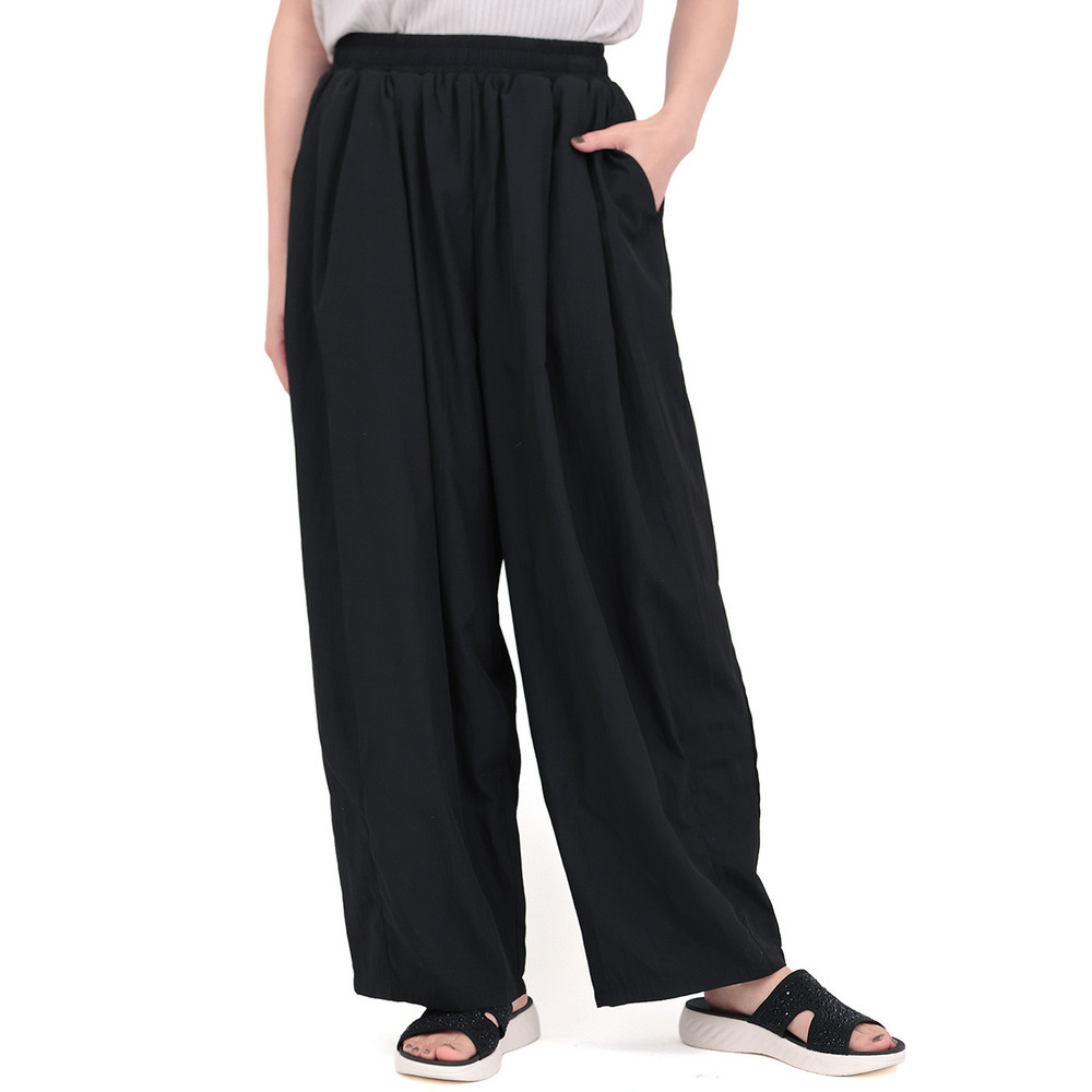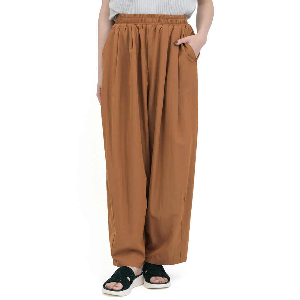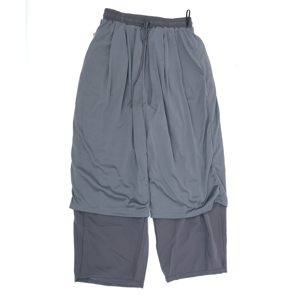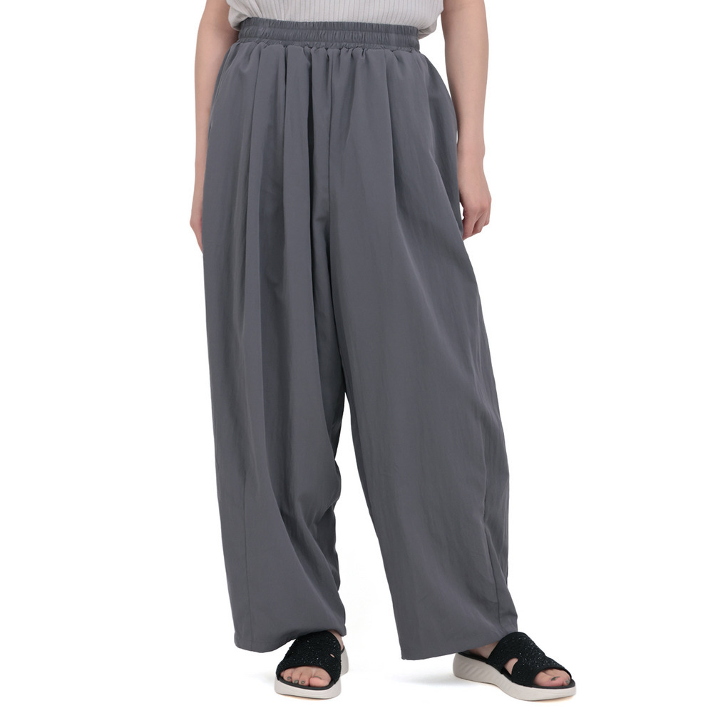 シャカシャカっとしたナイロン素材が特徴のコクーンパンツ。