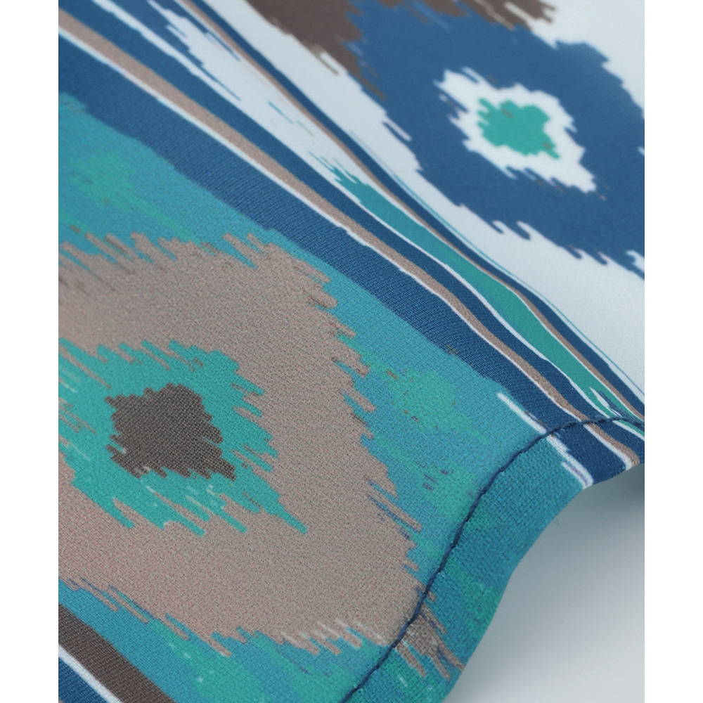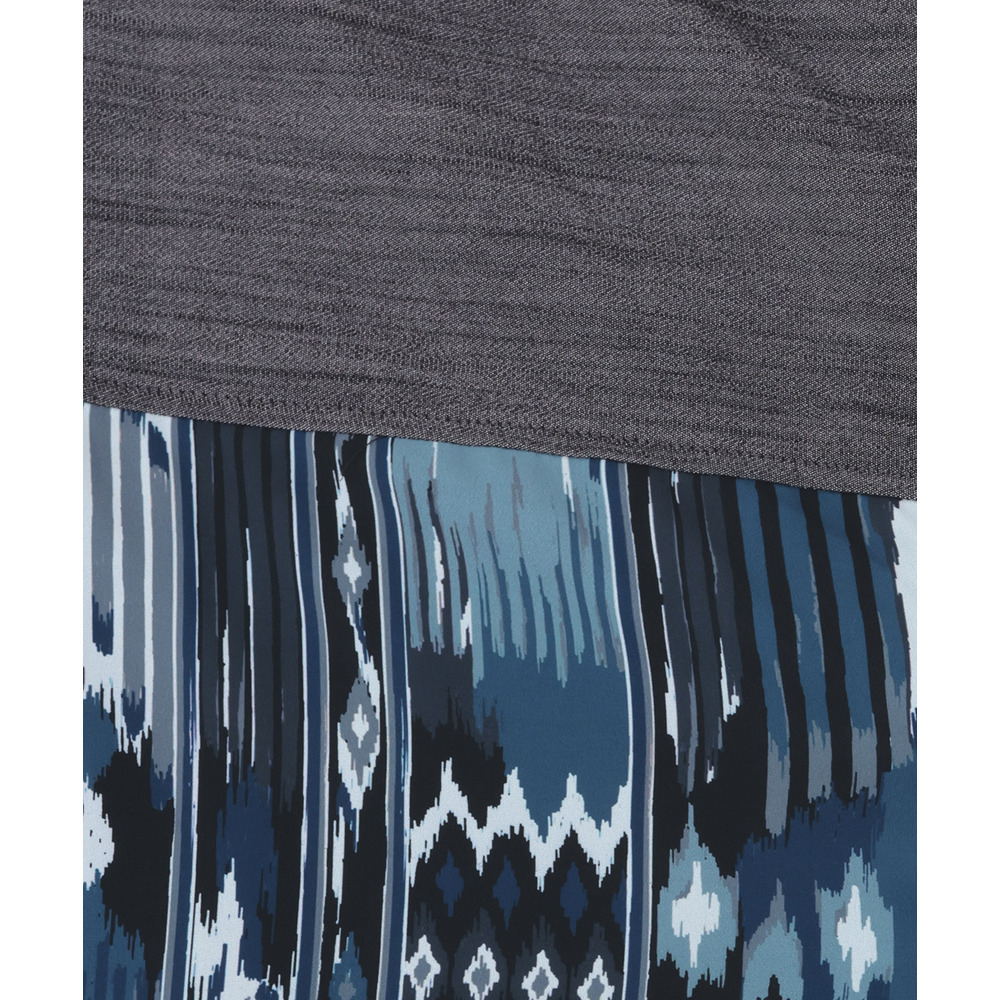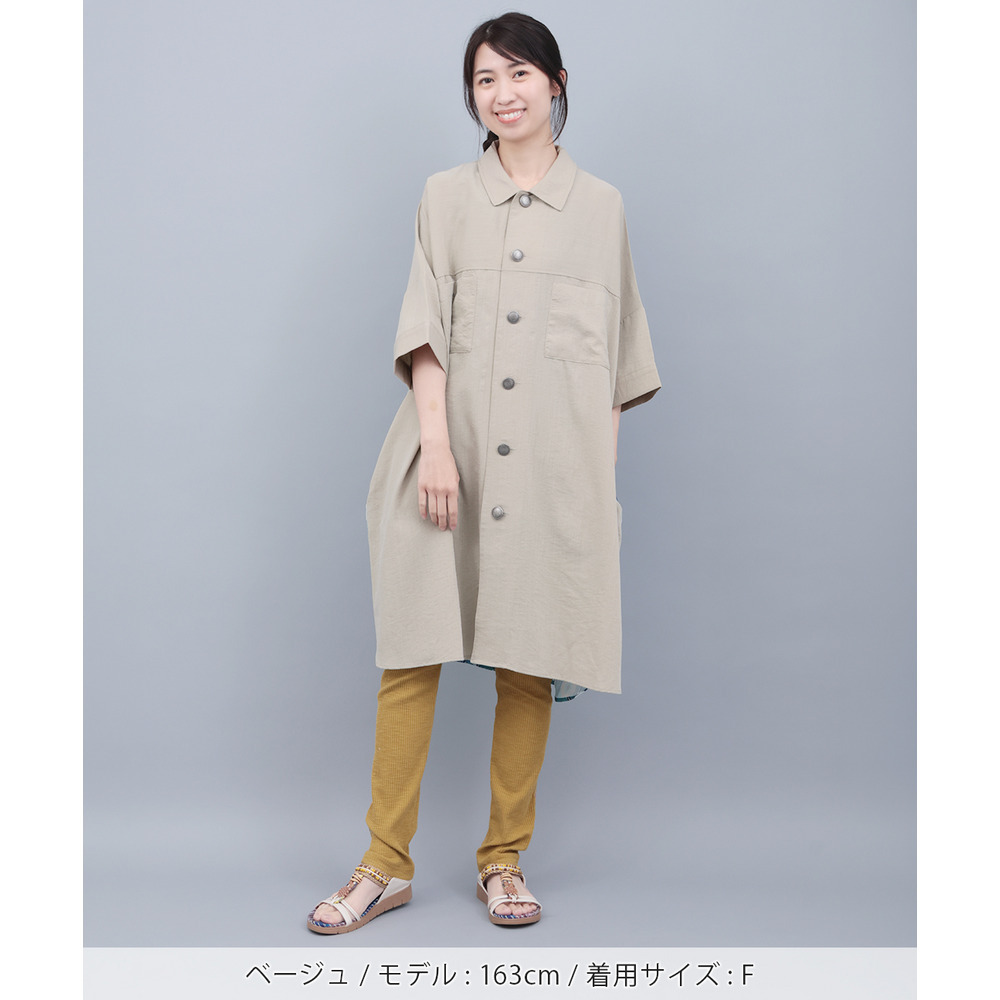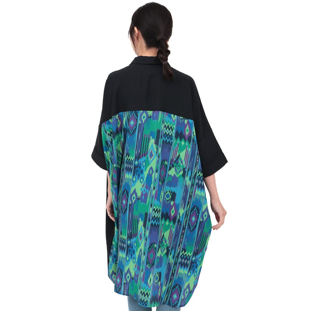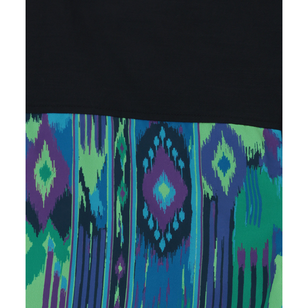 ゆったりとしたシャツワンピースに、イカット柄の切り替えをプラスしたドッキングデザイン。