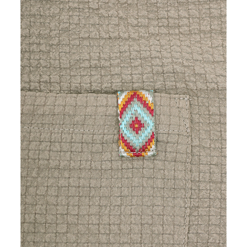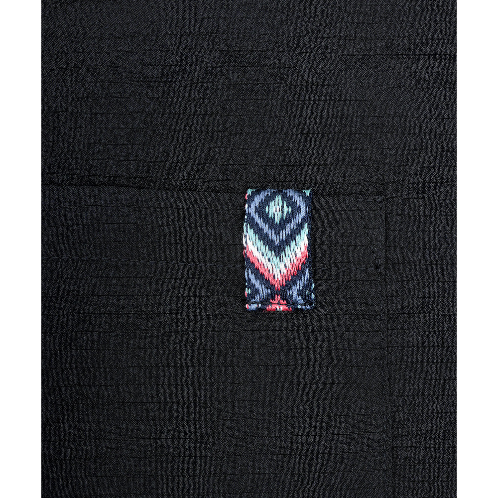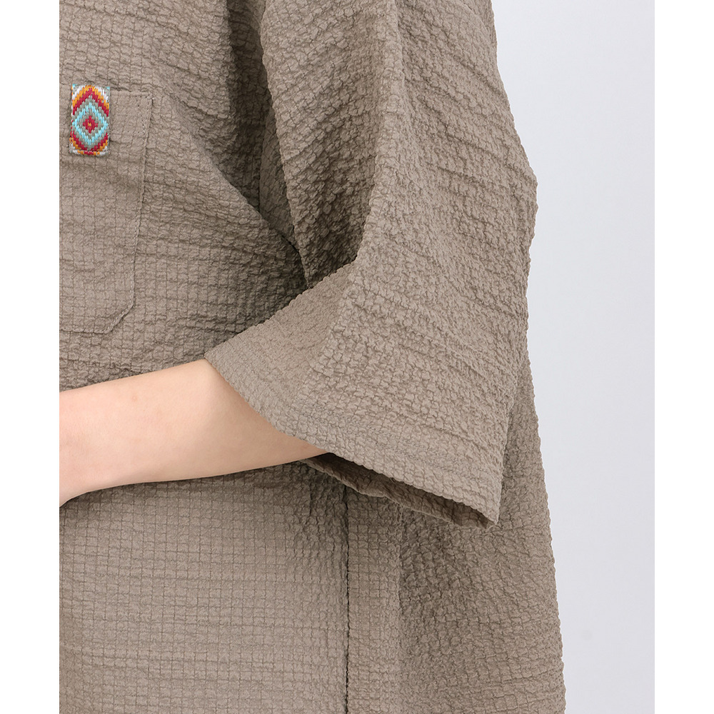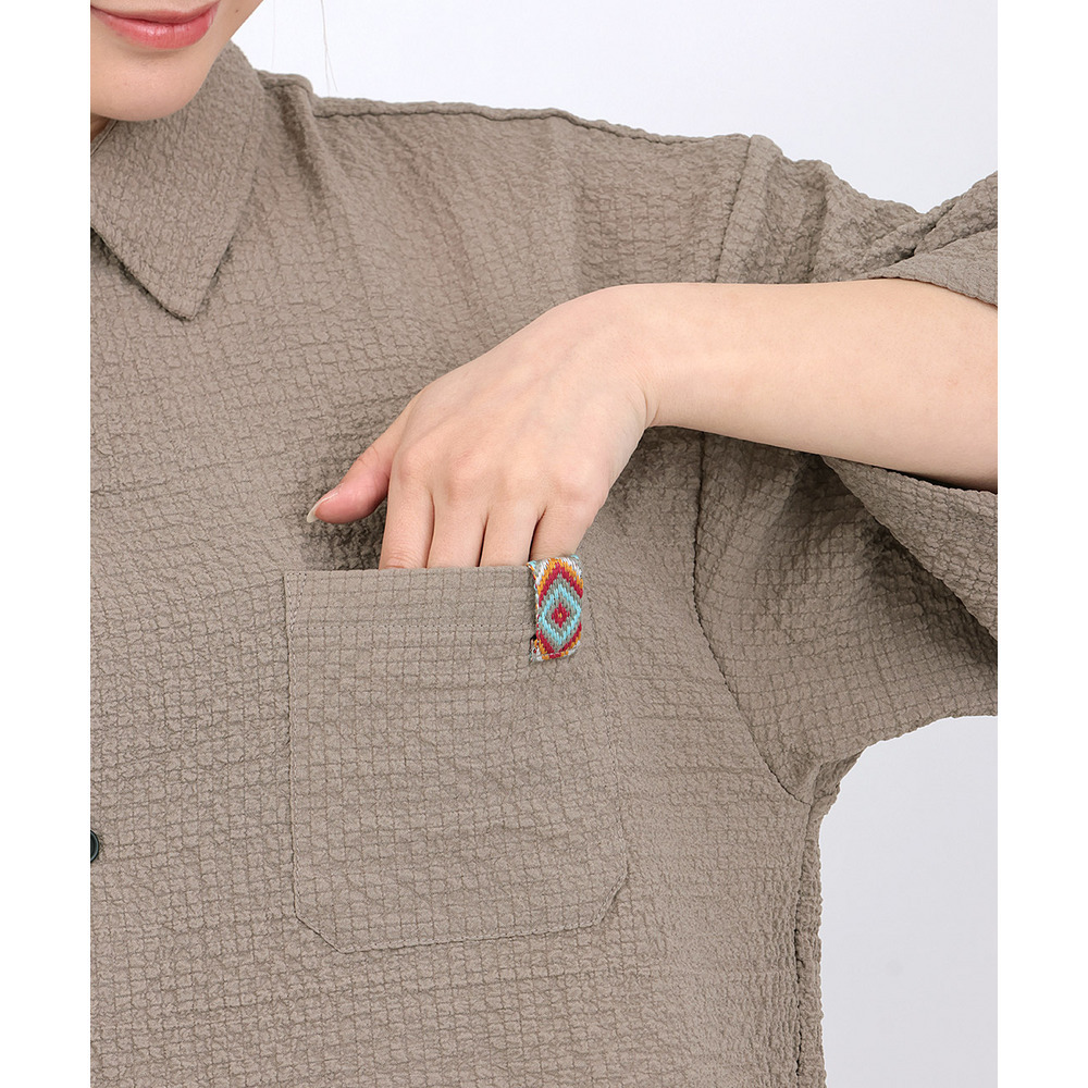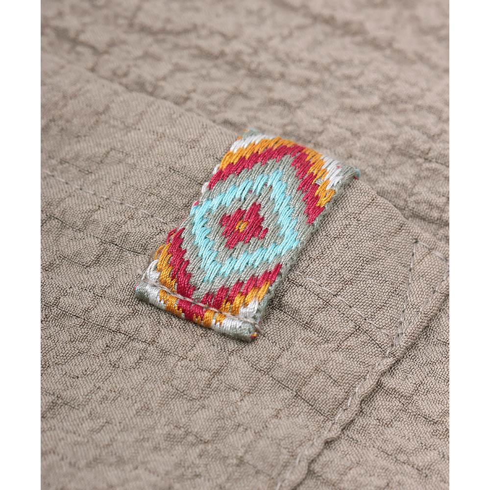 胸ポケットにはエスニックテープをあしらい、さりげないアクセントに。