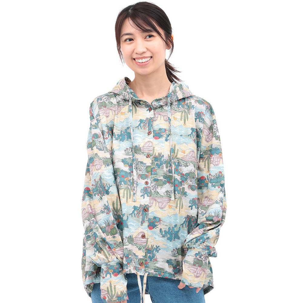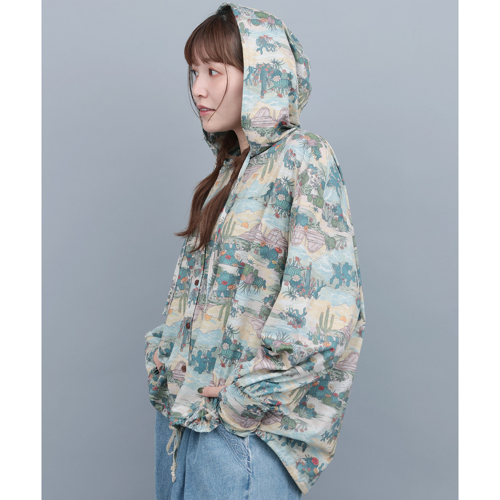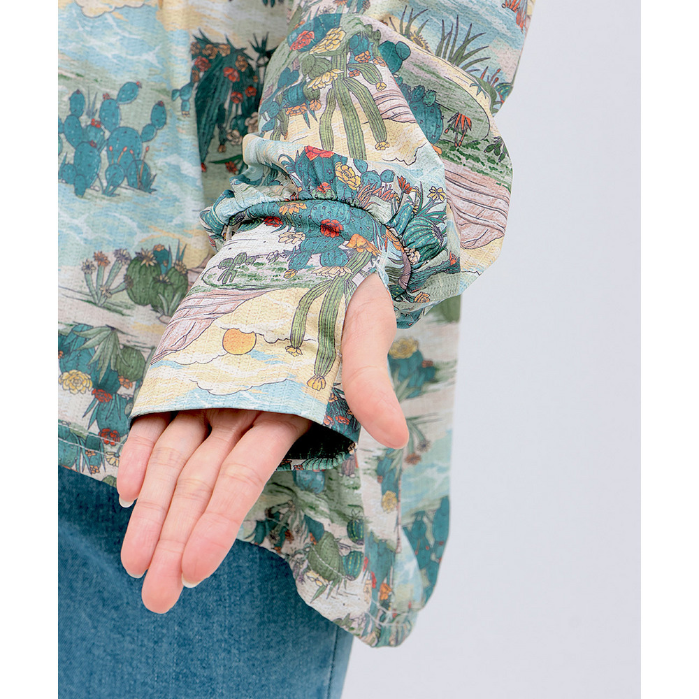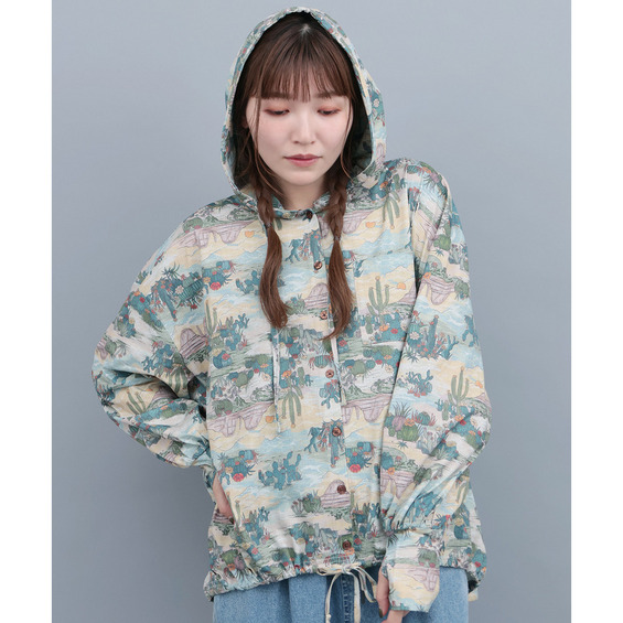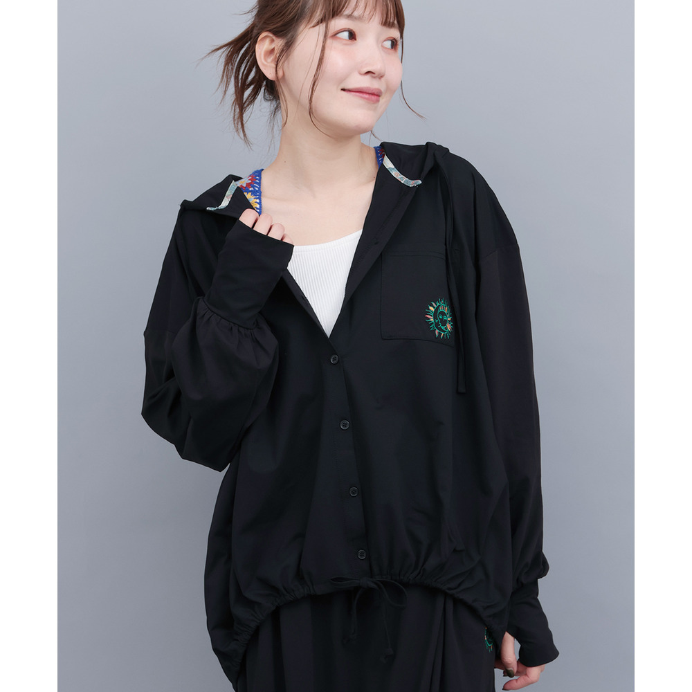 パーカー感覚でさっと羽織れて、サムホール付きなのでお出掛け時の紫外線対策にも◎