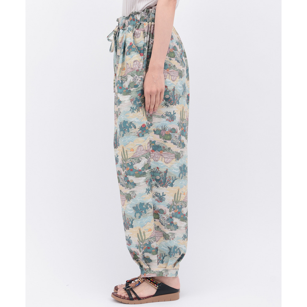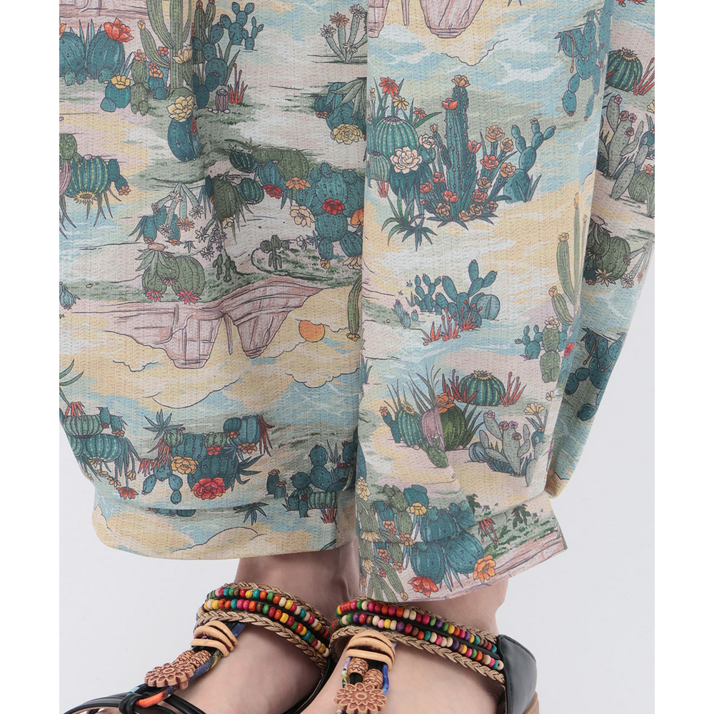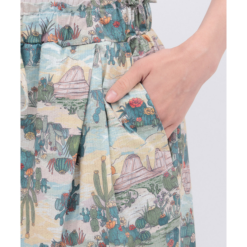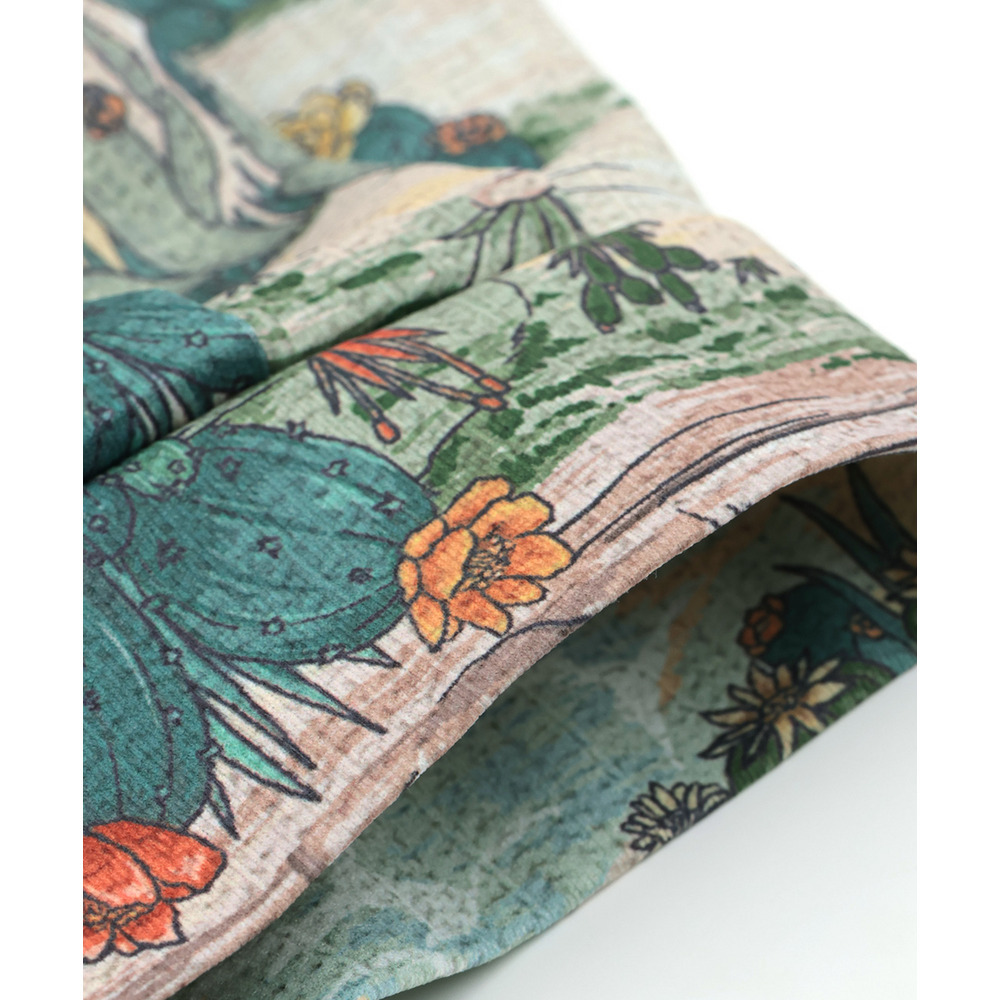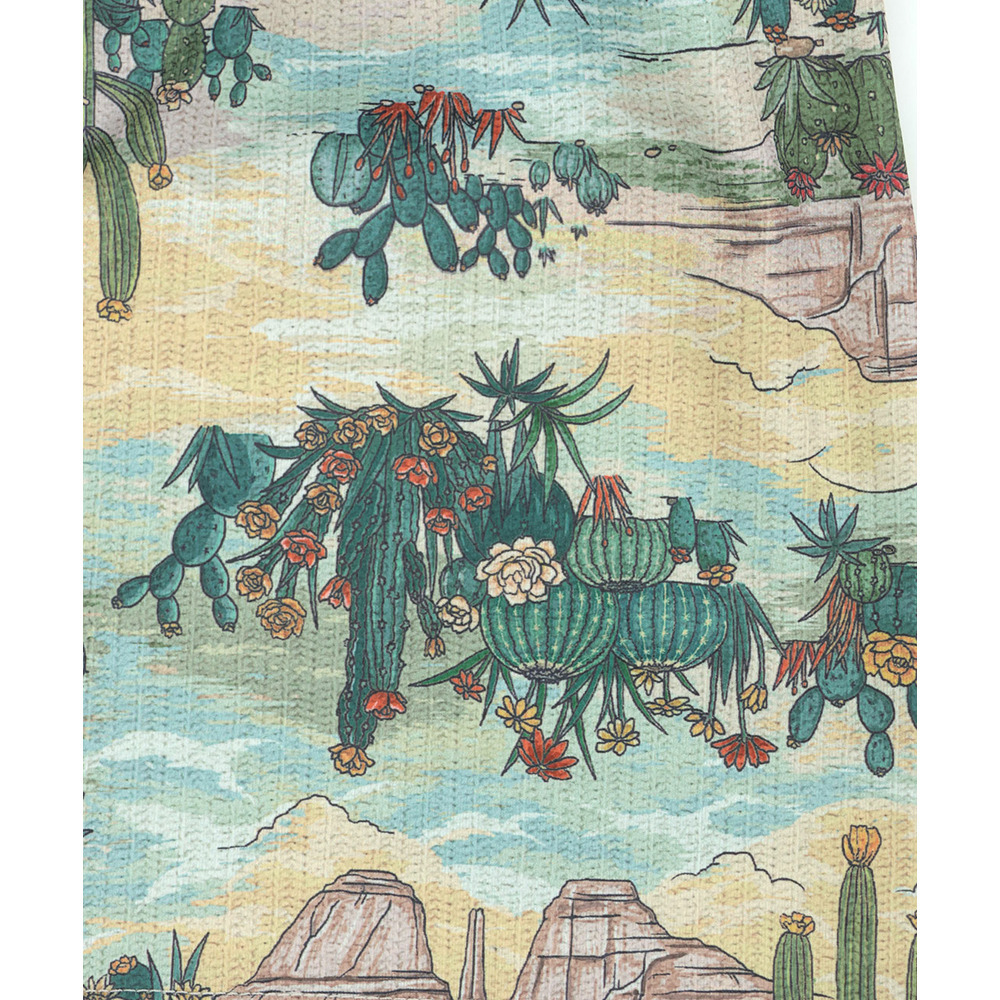 アースカラーでまとめた、落ち着きのあるサボテン柄は山や自然の風景を一緒に描いたデザインで、どこかノスタルジックな雰囲気が魅力です。