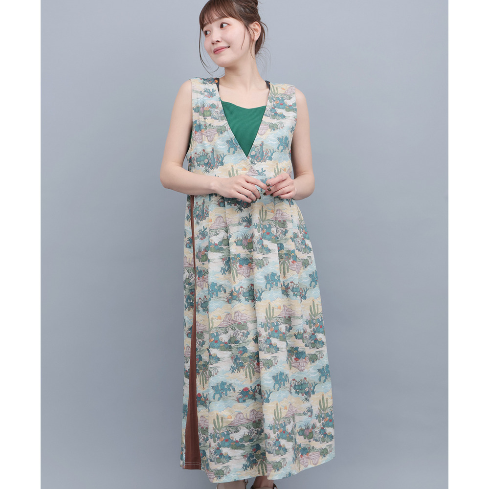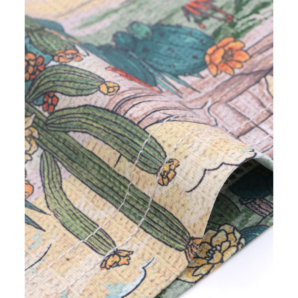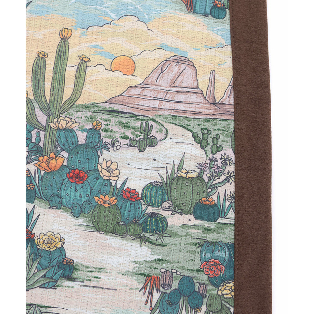 アースカラーでまとめたサボテン柄は、山や自然の風景を描いたデザインで、どこかノスタルジックな雰囲気が魅力です。