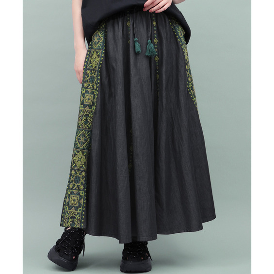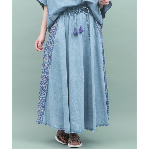 • Rico ライトデニムメヒコタイル刺繍フレアスカート21