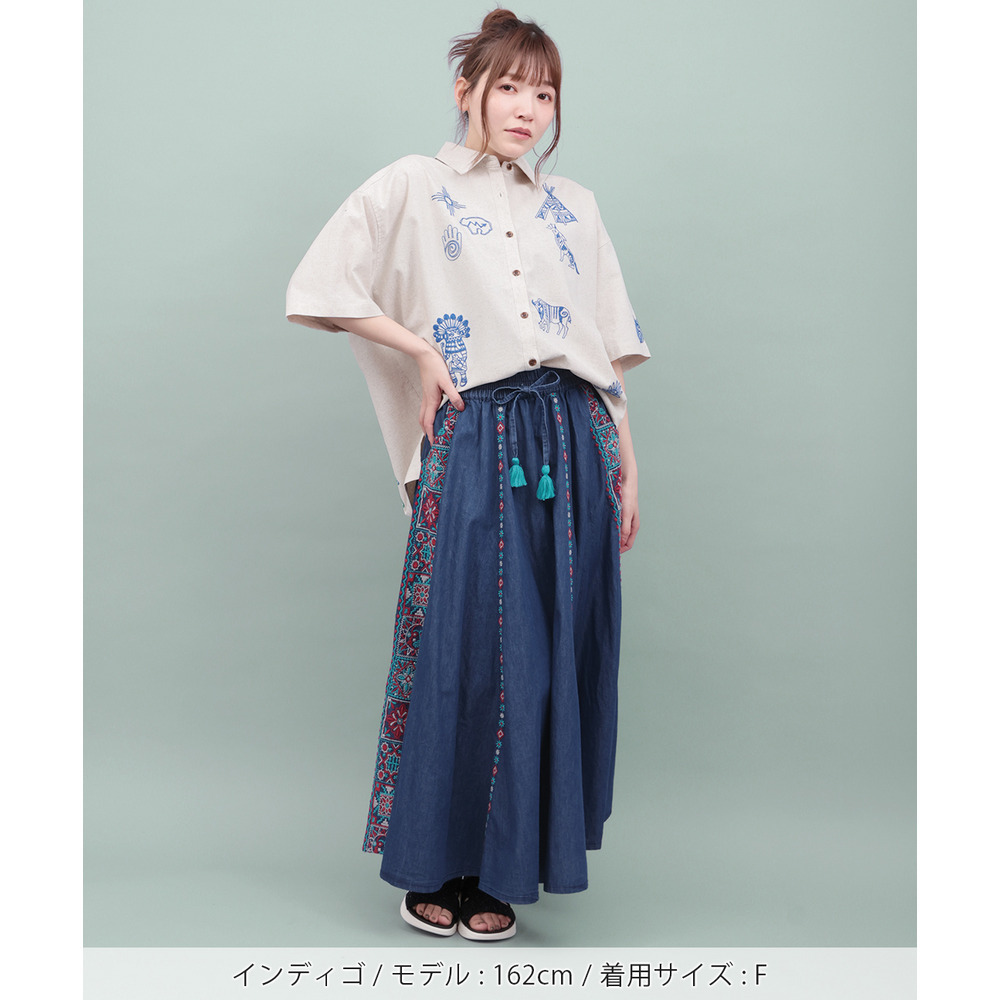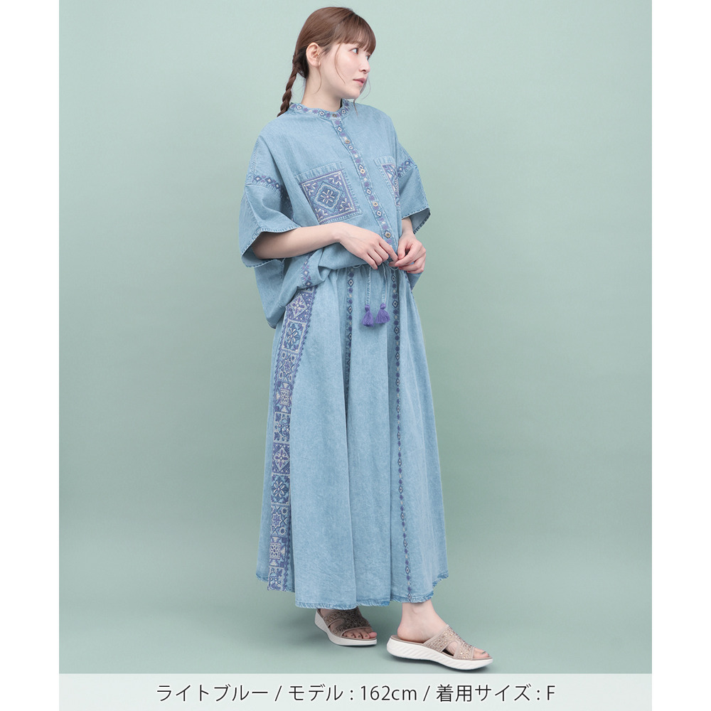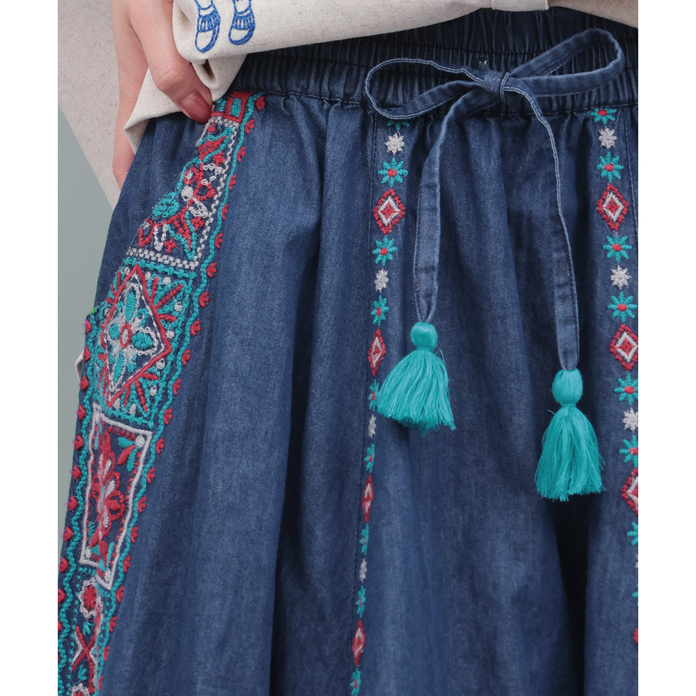 • Rico ライトデニムメヒコタイル刺繍フレアスカート19