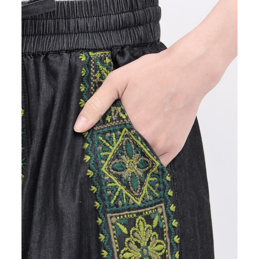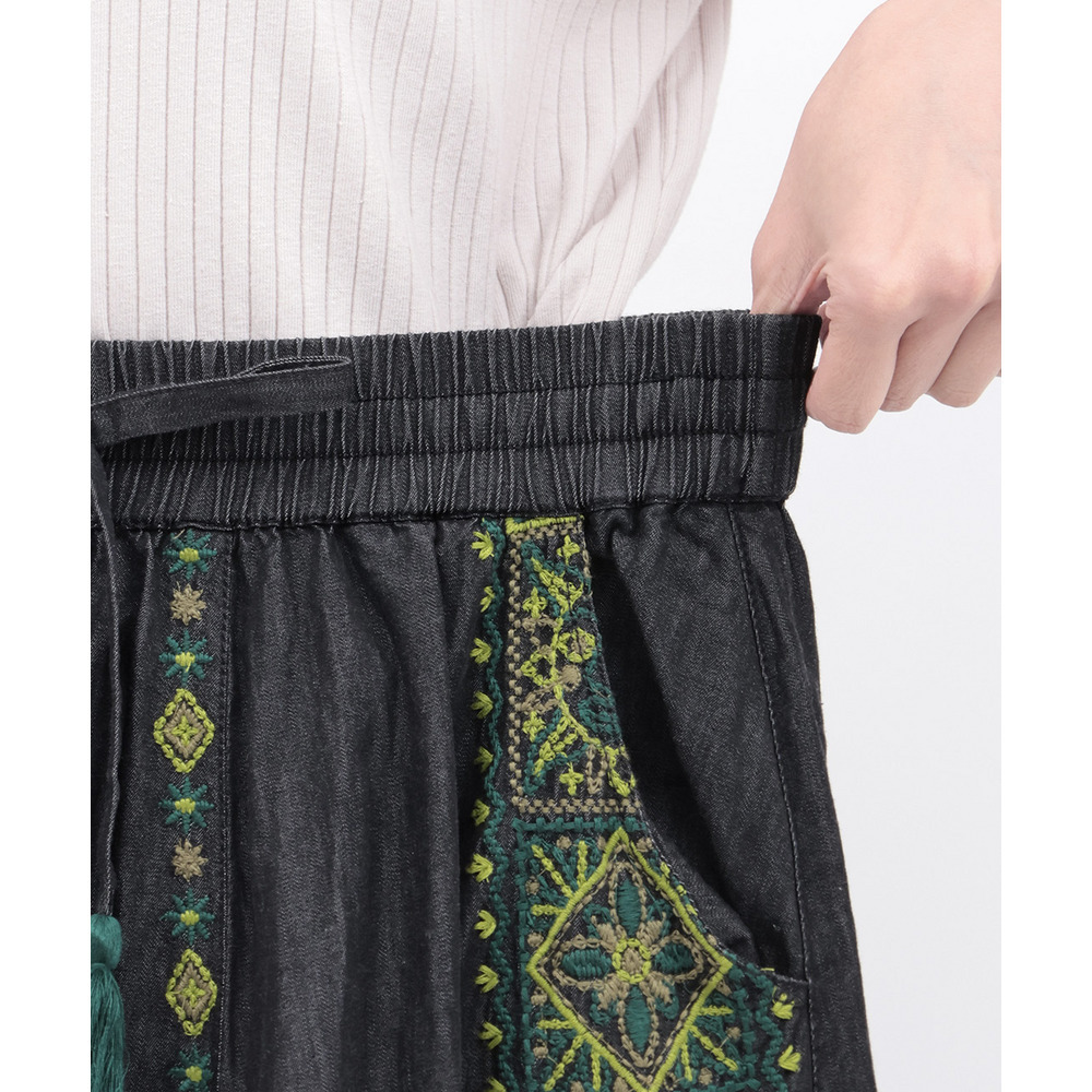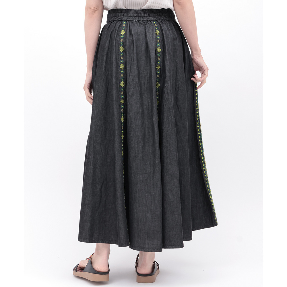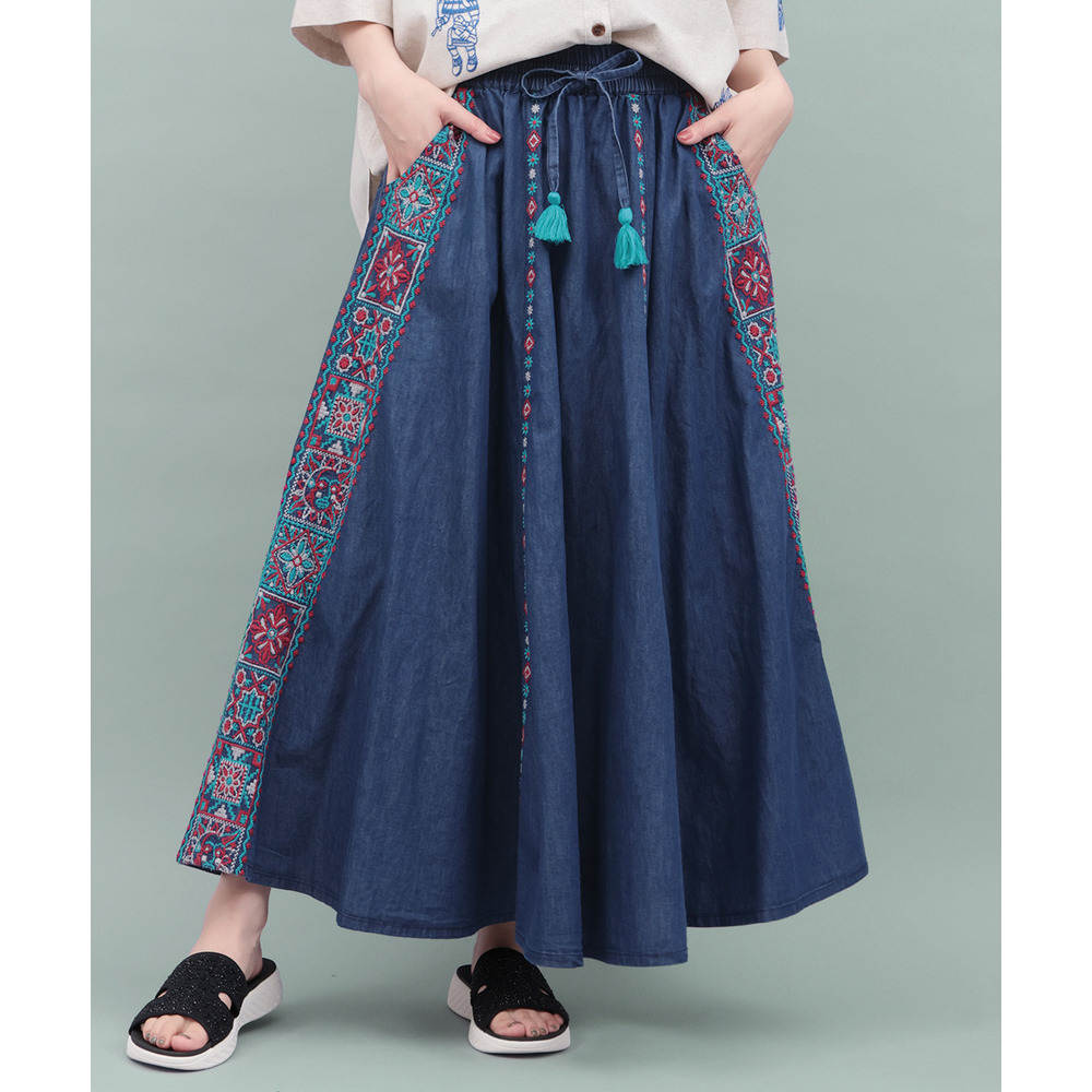 贅沢に刺繍をあしらった大人なデニムフレアスカート